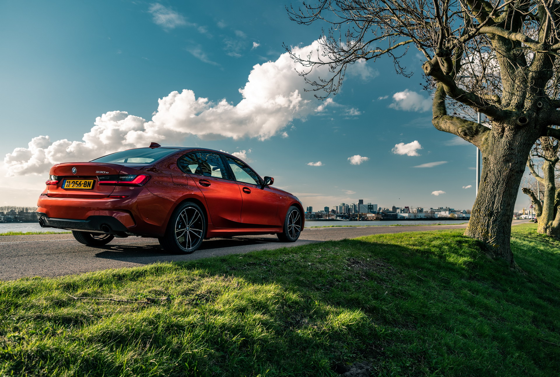 Now let’s see more photos of the BMW 330e M Sport plug-in hybrid sedan featured in the striking Sunset Orange running in the G4. Enjoy!