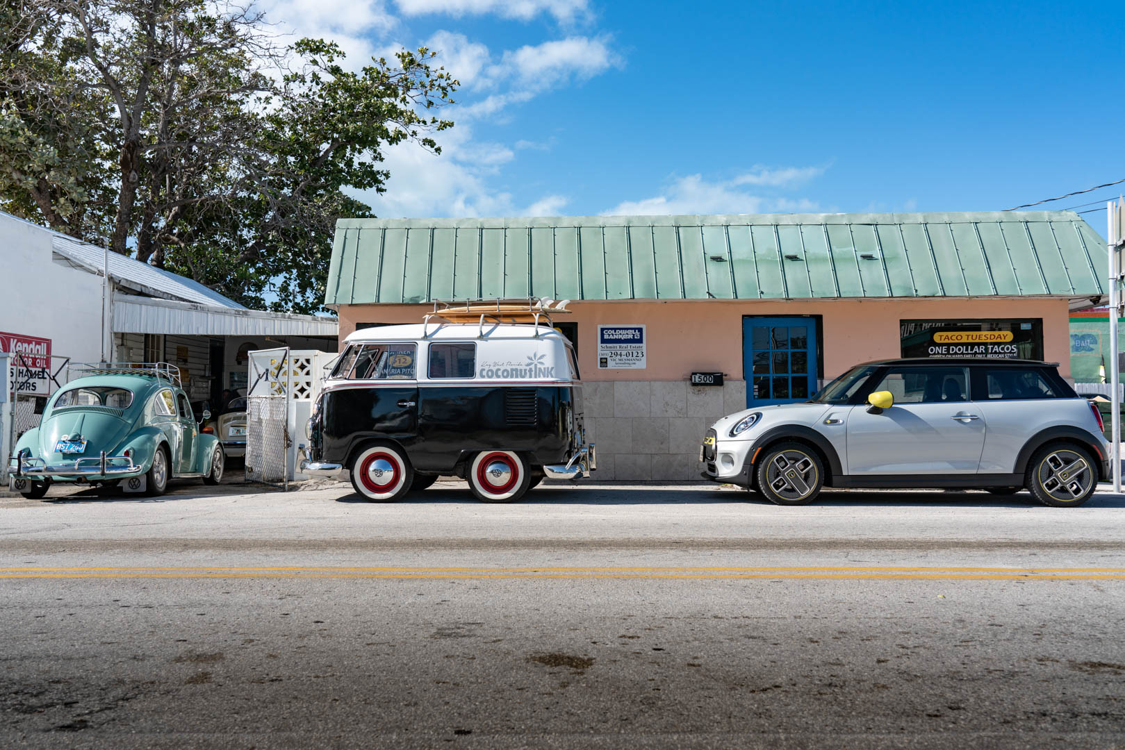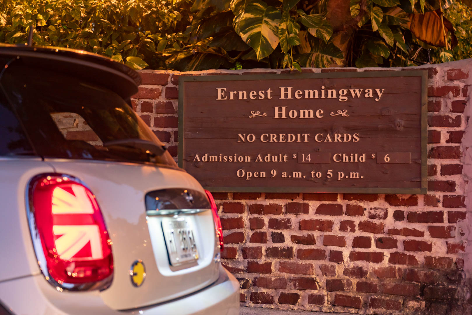 From South Beach, the little electric Cooper SE headed through southern Florida to Key Largo, its first island stop. Highway 1 is the road that connects all of the islands through 42 different bridges and the little MINI Cooper SE crossed each and every one of them to get to Key West, the home of Ernest Hemingway. In fact, the little MINI even stopped off at Hemingway’s favorite bar — Sloppy Joe’s — which has become a massive tourist attraction.