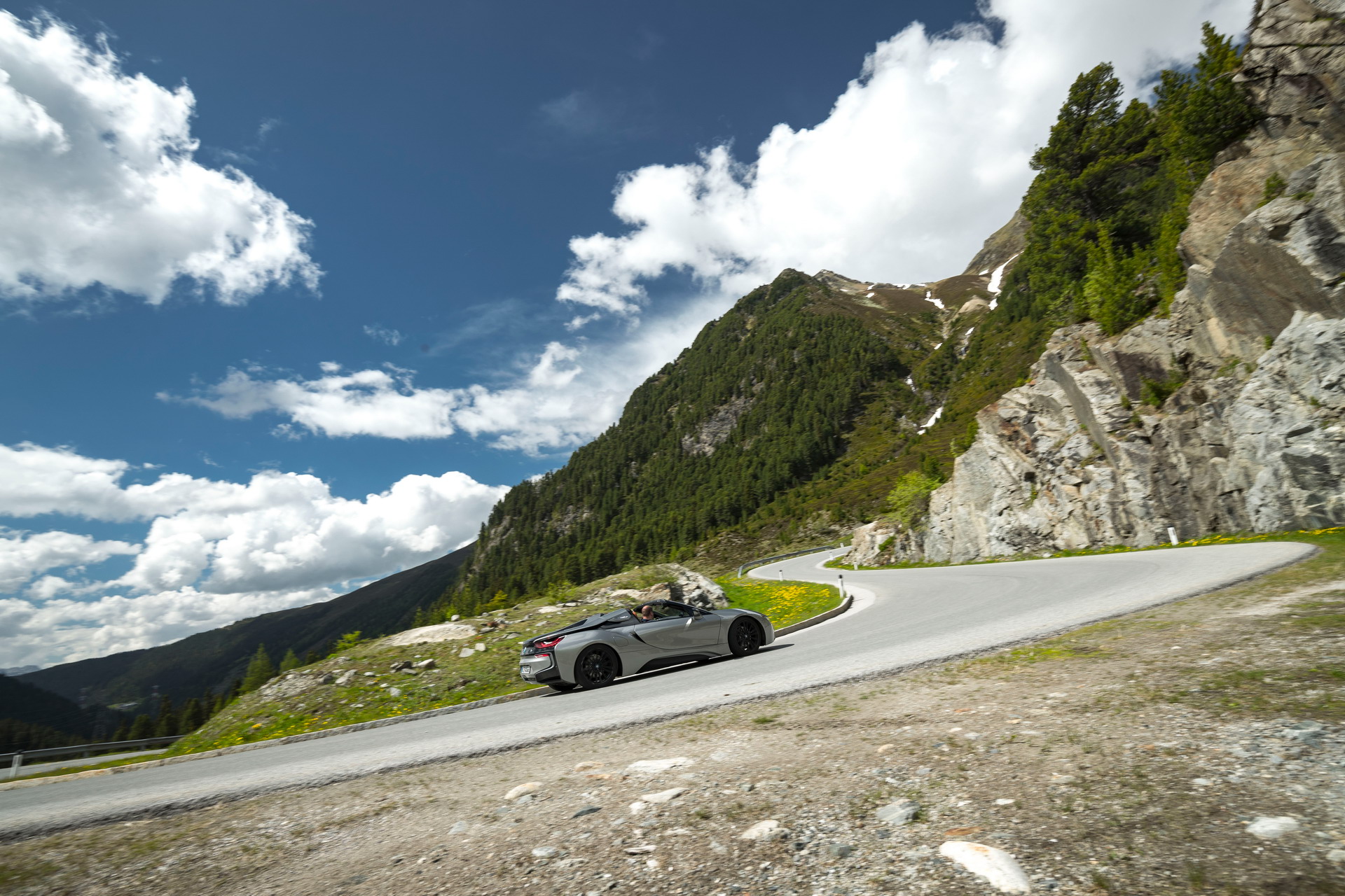 To sweeten things up a bit, after the hurting i8 demise, we prepared a sensational gallery of images with the BMW i8 Roadster featured in Doningon Grey metallic, shining during the Media Scenic Drives event in summer of 2018.