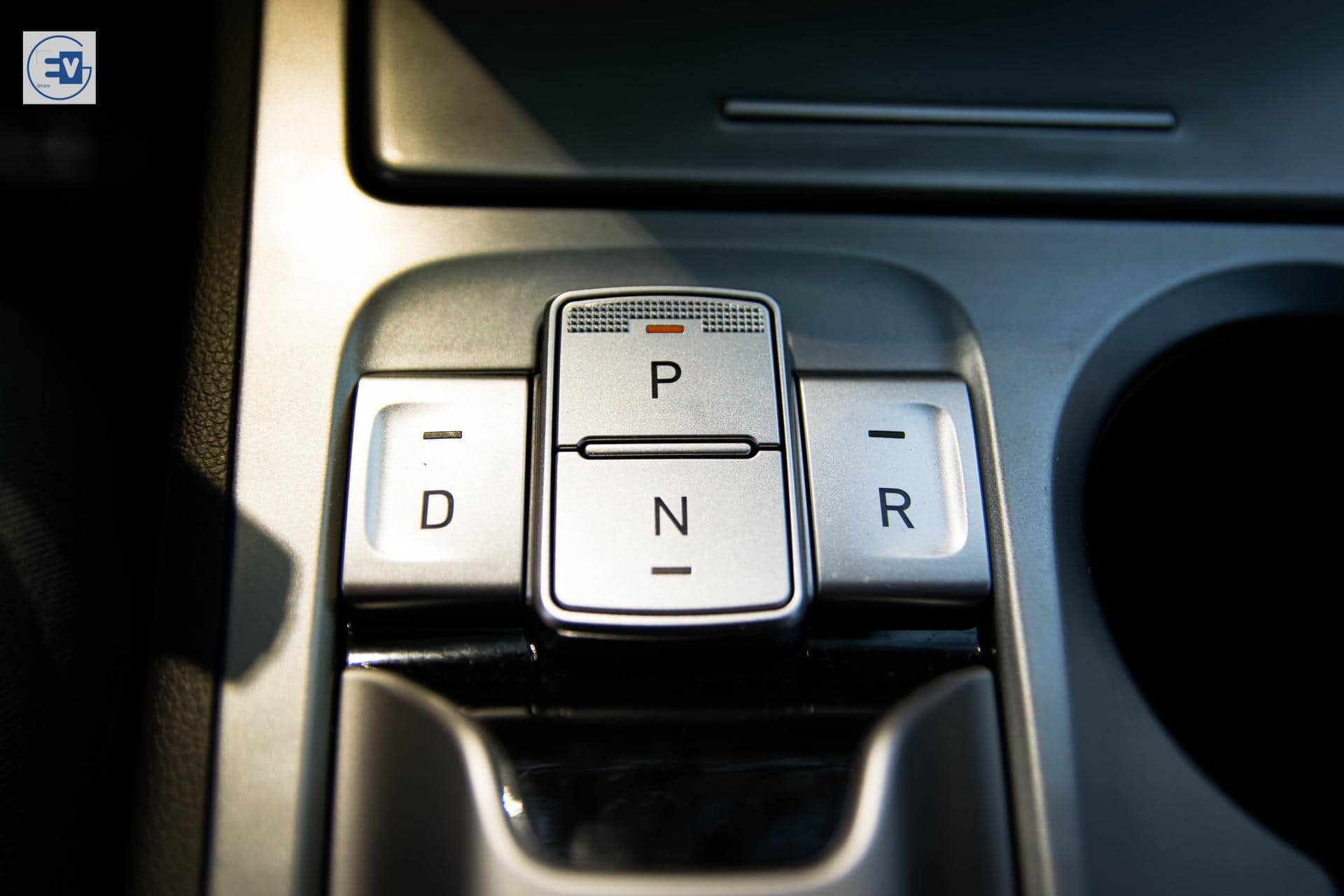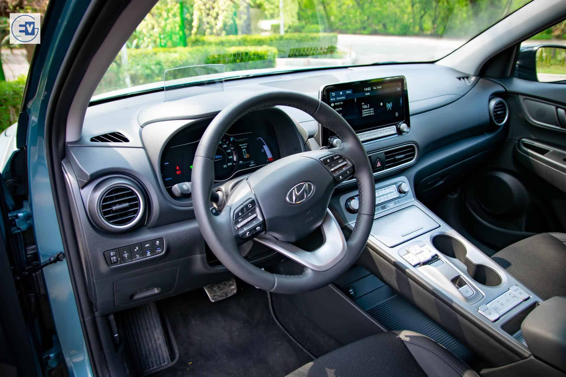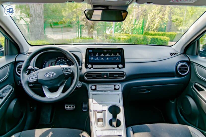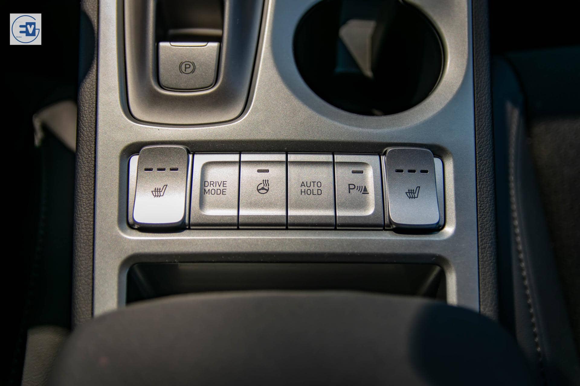 Inside the cabin the same theme continues. The overall layout is similar as to what you would find in a normal Kona with only one exception: the center console. Here, since the need of a mechanical gear selector is gone, the people over in Seoul could improvise.