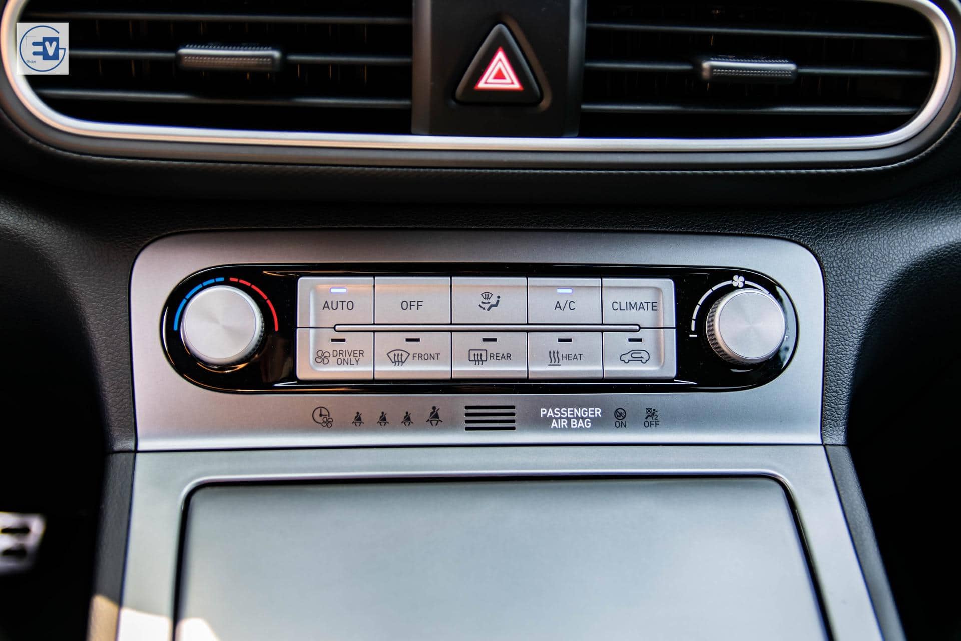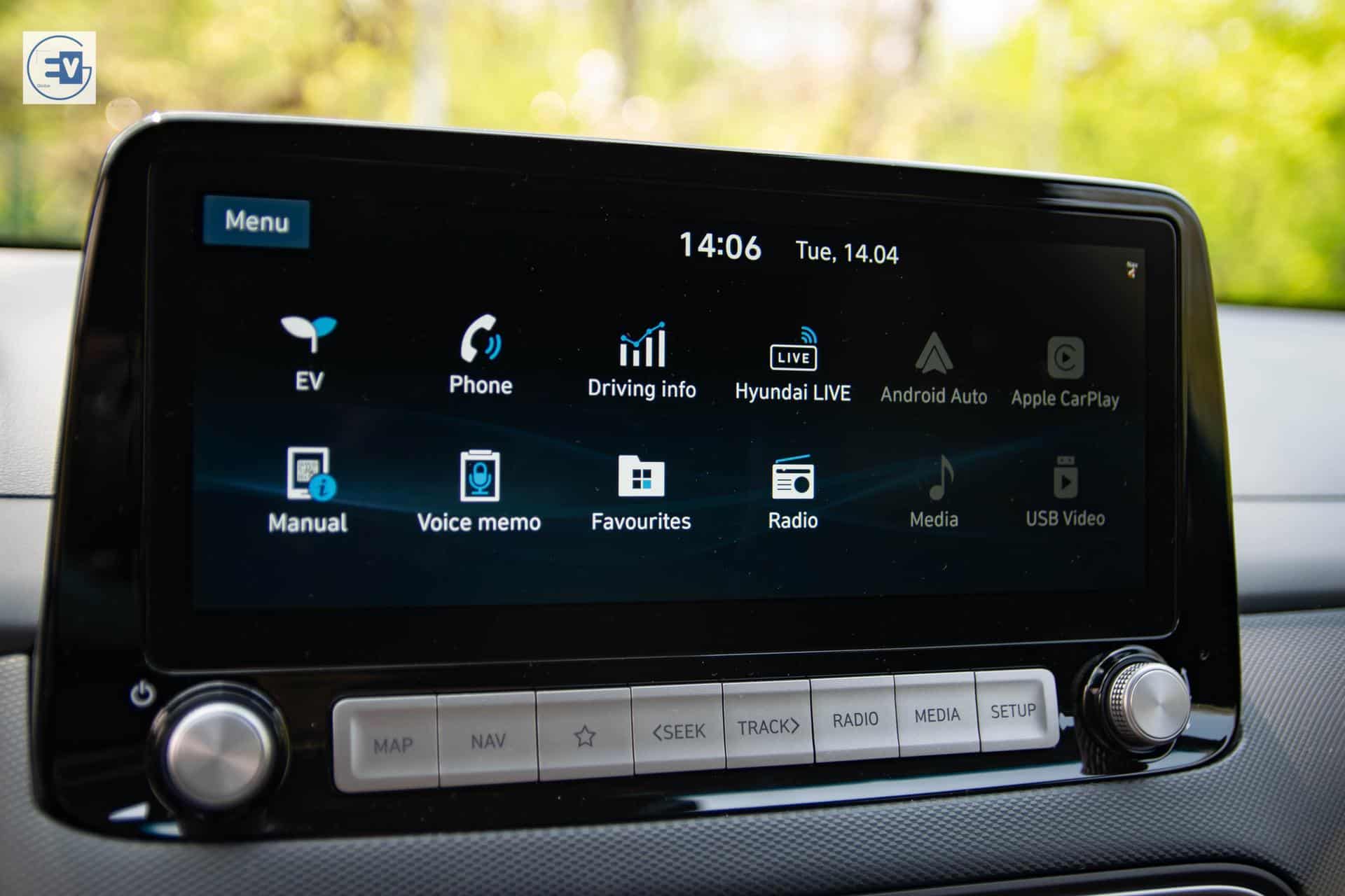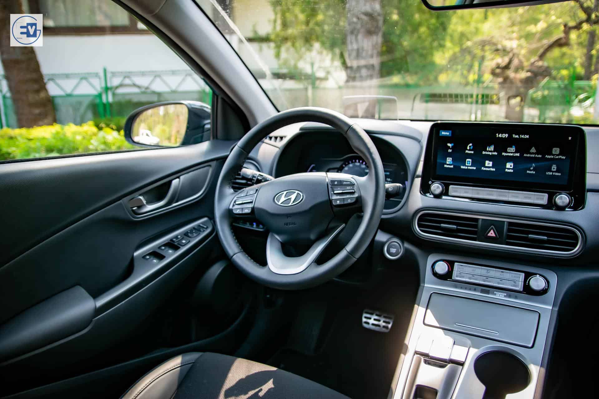 Inside the cabin the same theme continues. The overall layout is similar as to what you would find in a normal Kona with only one exception: the center console. Here, since the need of a mechanical gear selector is gone, the people over in Seoul could improvise.