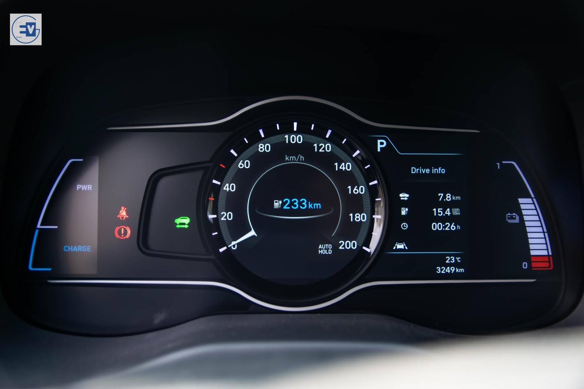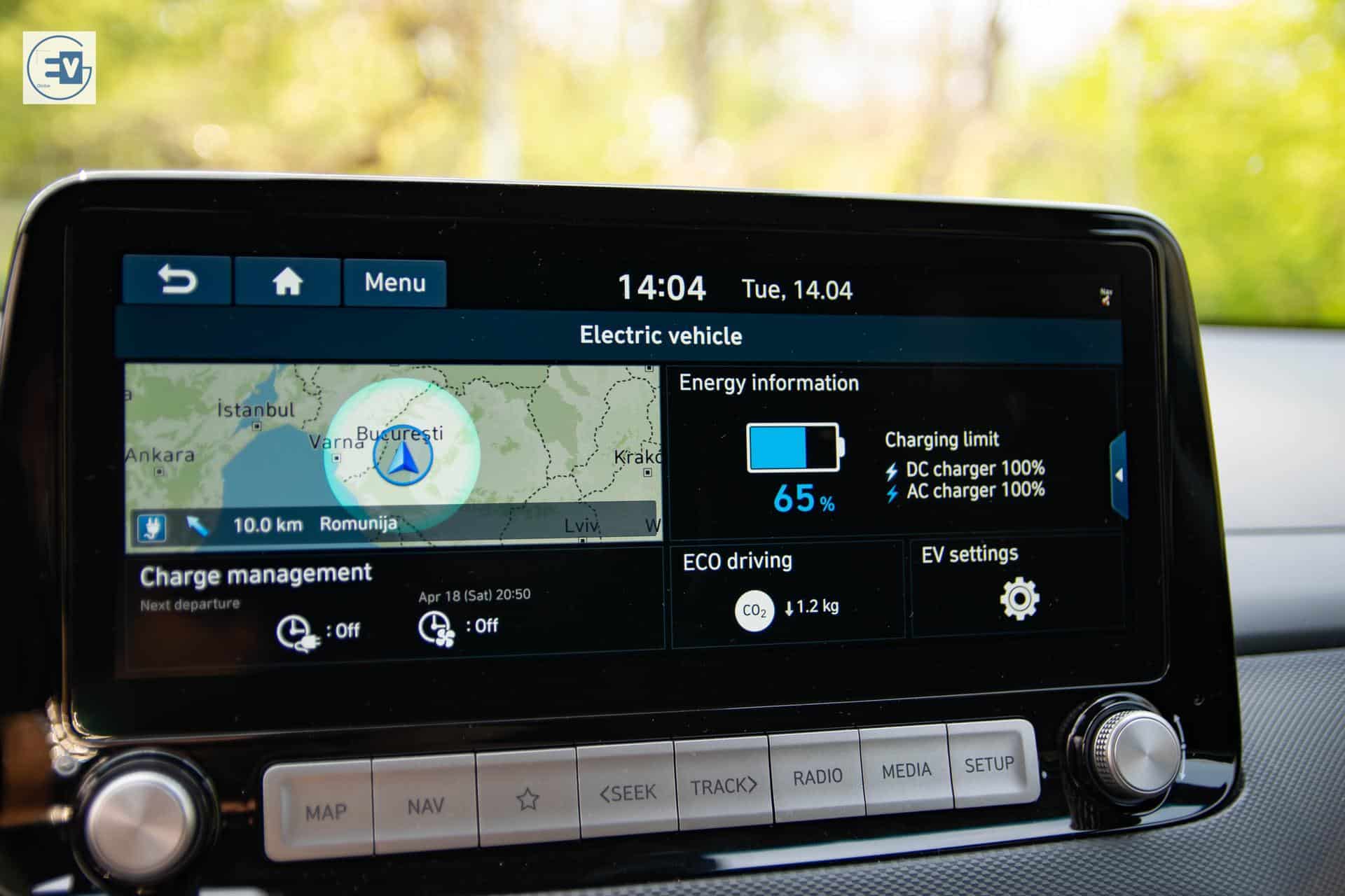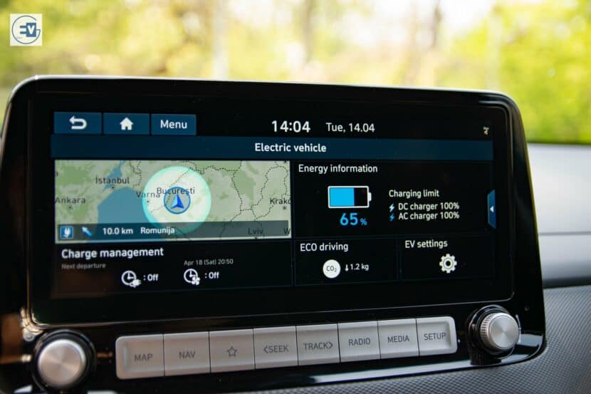 During our tests we saw an average energy consumption of 14 kWh/100 km. That’s basically dead on with what Hyundai claims, offering you a range of about 450 kilometers (280 miles). Mind you, that energy consumption figure was recorded both around town and outside, on B-roads, with an average speed of around 75 km/h (46.5 mph).