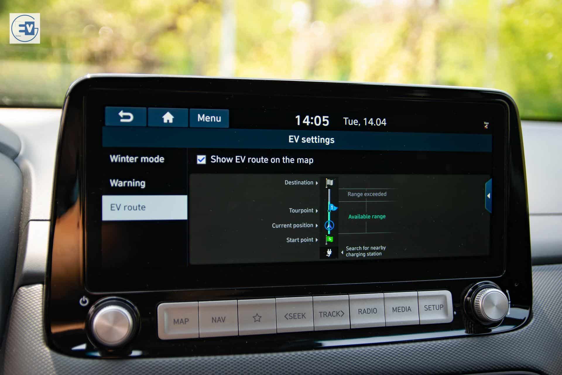The navigation system shows you how far you are from the nearest charging station at all times. It also shows you how long it would take you to fully recharge the battery from the current state, using different types of charging stations which is, once again, pretty useful.