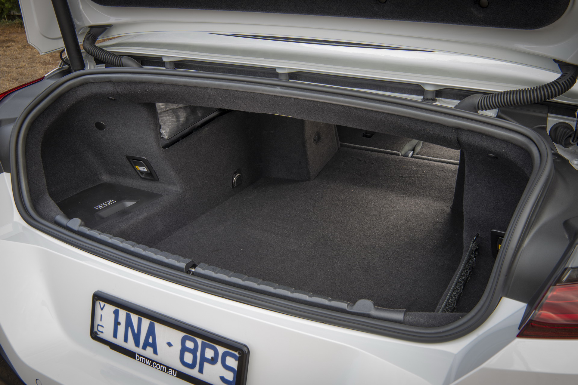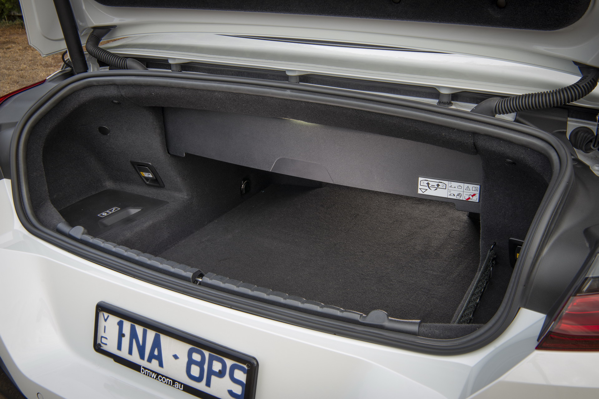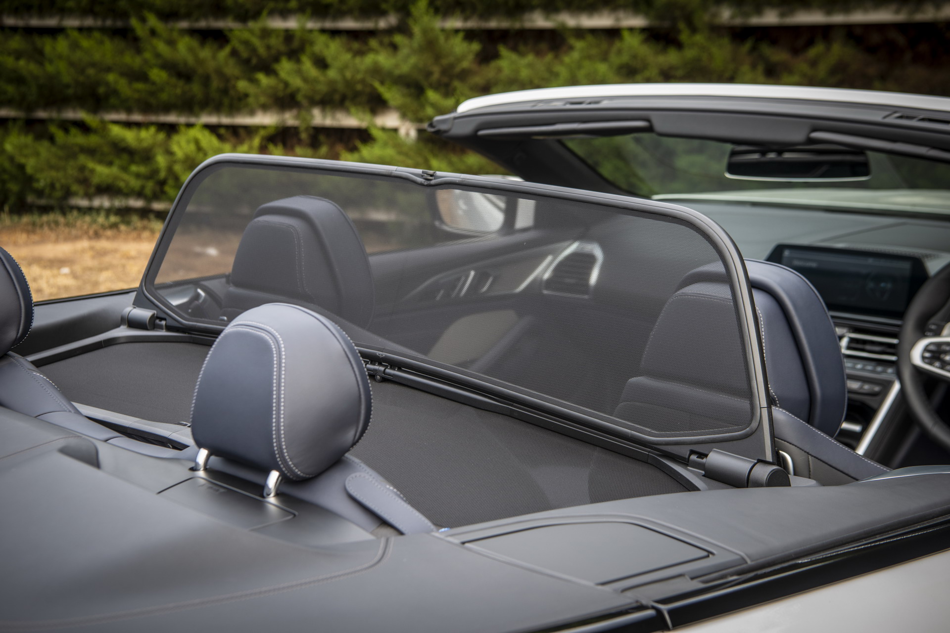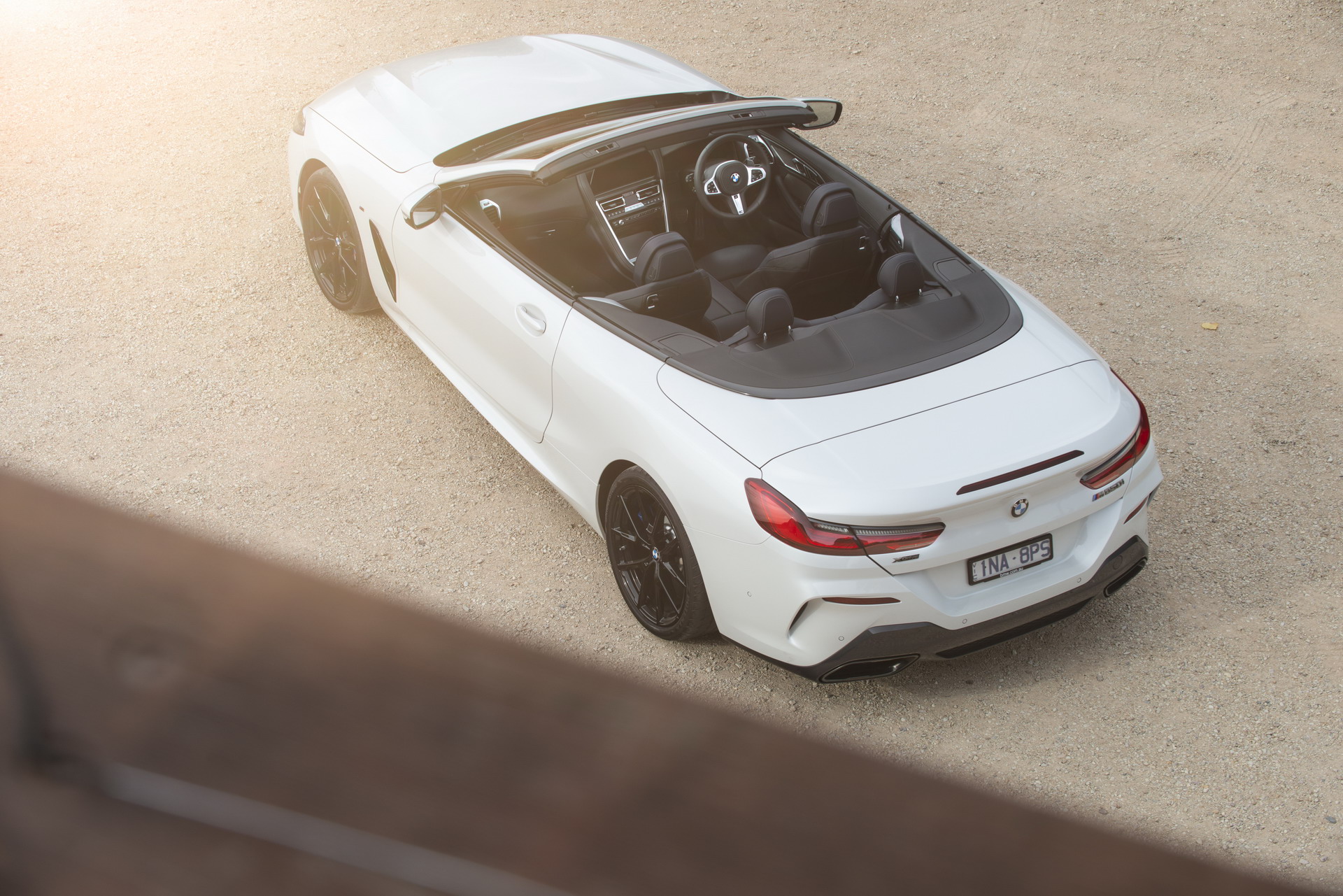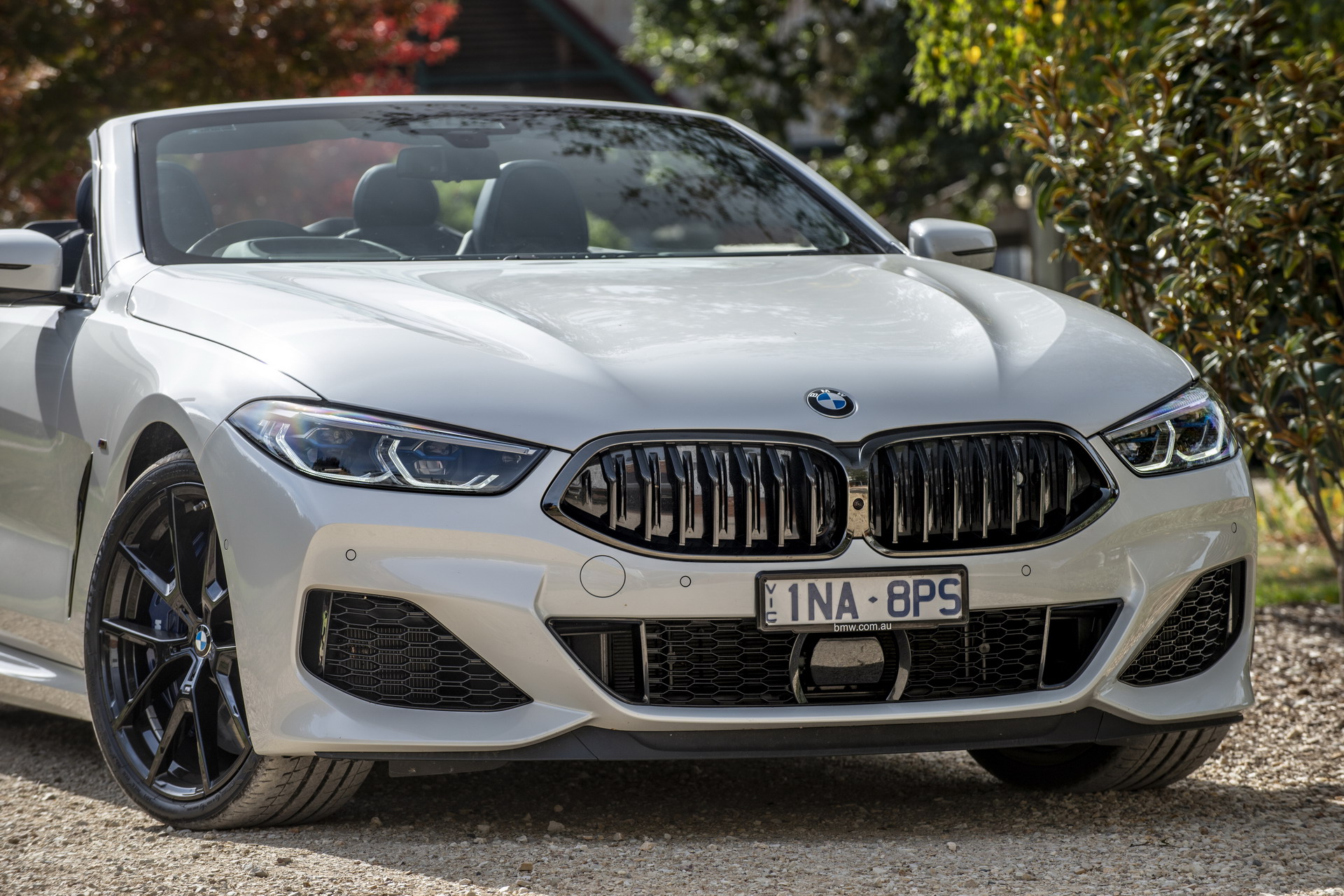 Back to the M850i xDrive Convertible and the imagery from the Australian press launch of the G14 generation. The luxury vert is exposed in the Alpine White uni paintwork, which is at opposites with the high-sheen Jetblack, 20-inch M Sport Y-spoke alloys and the all-black kidney grille.