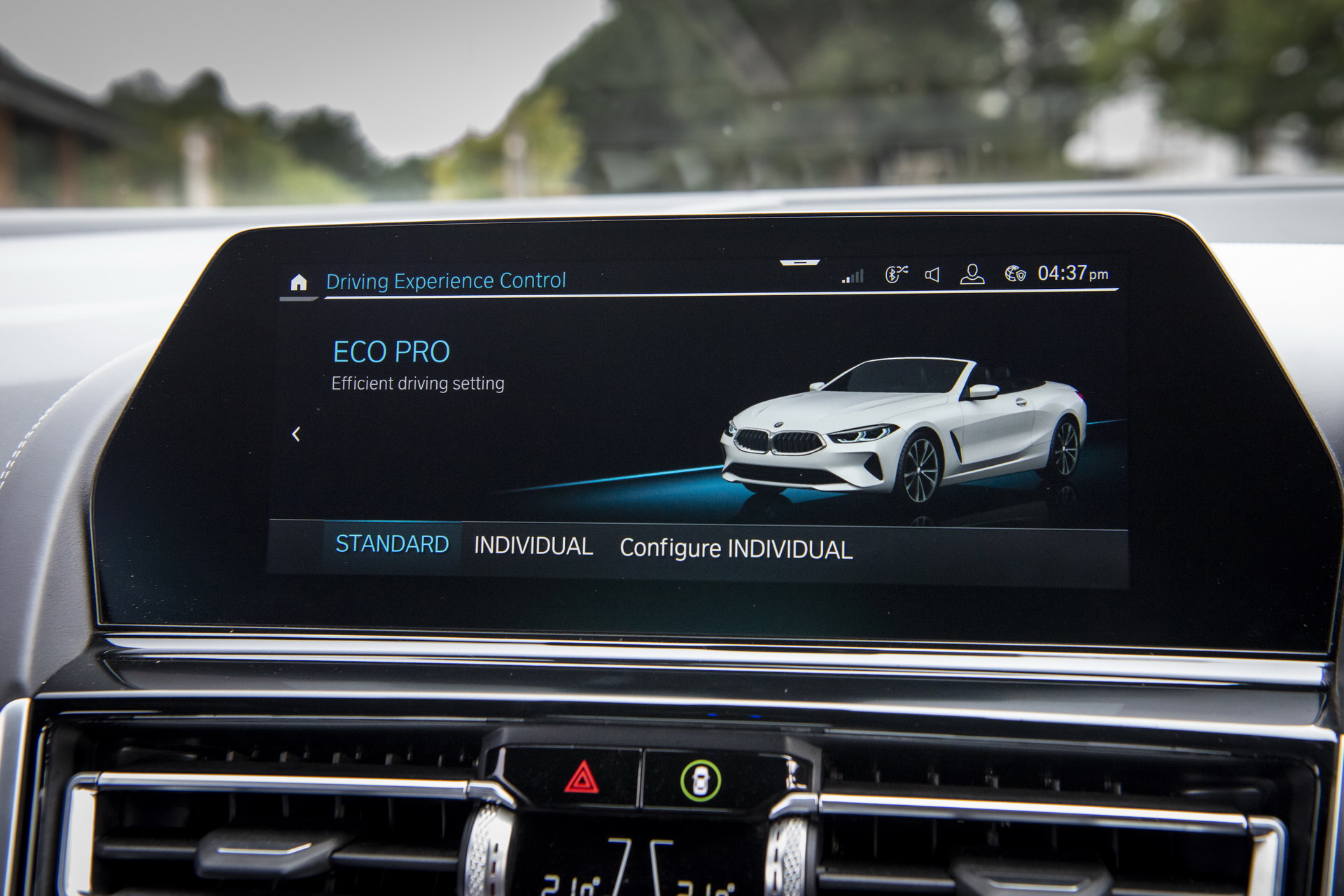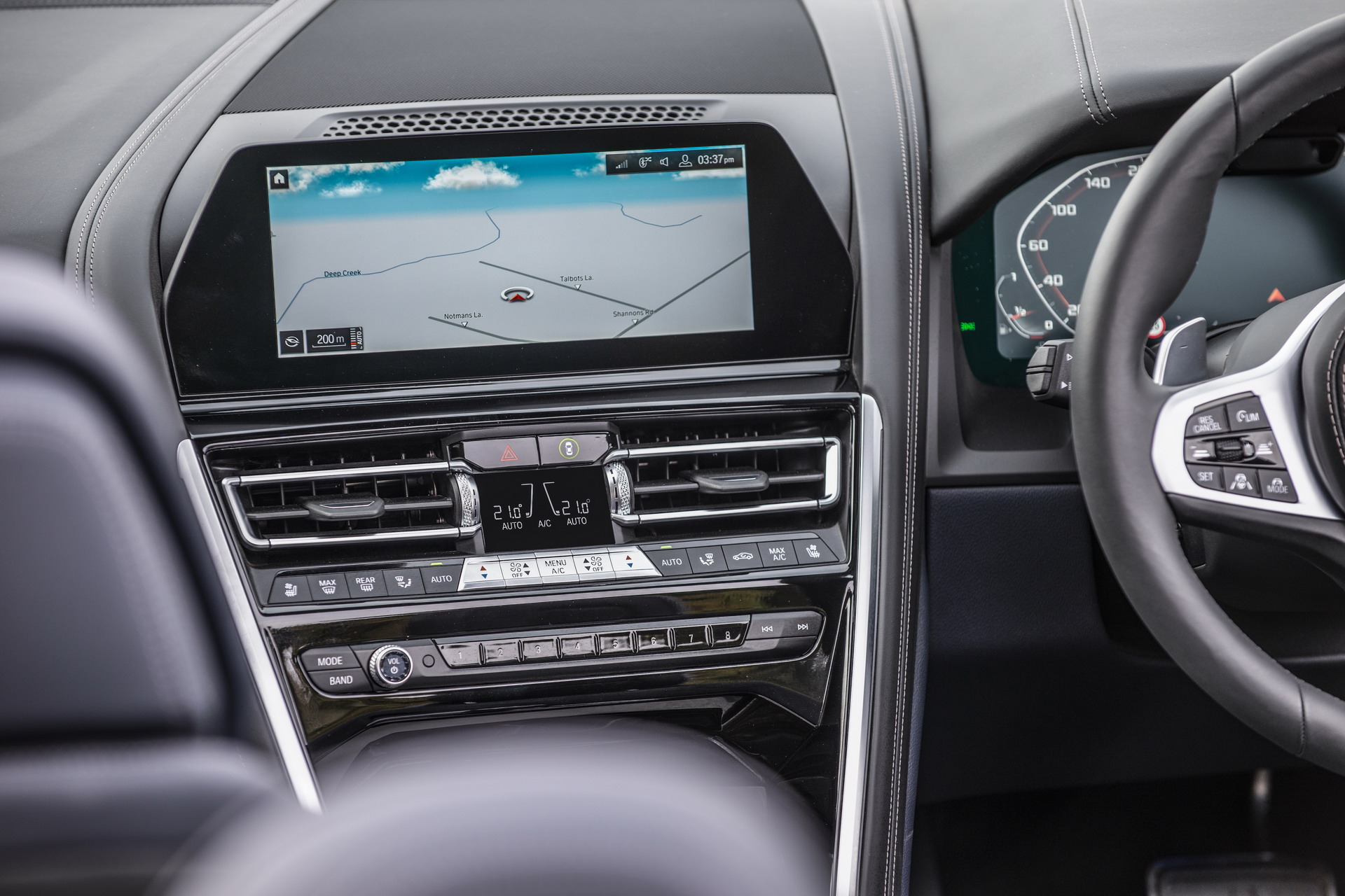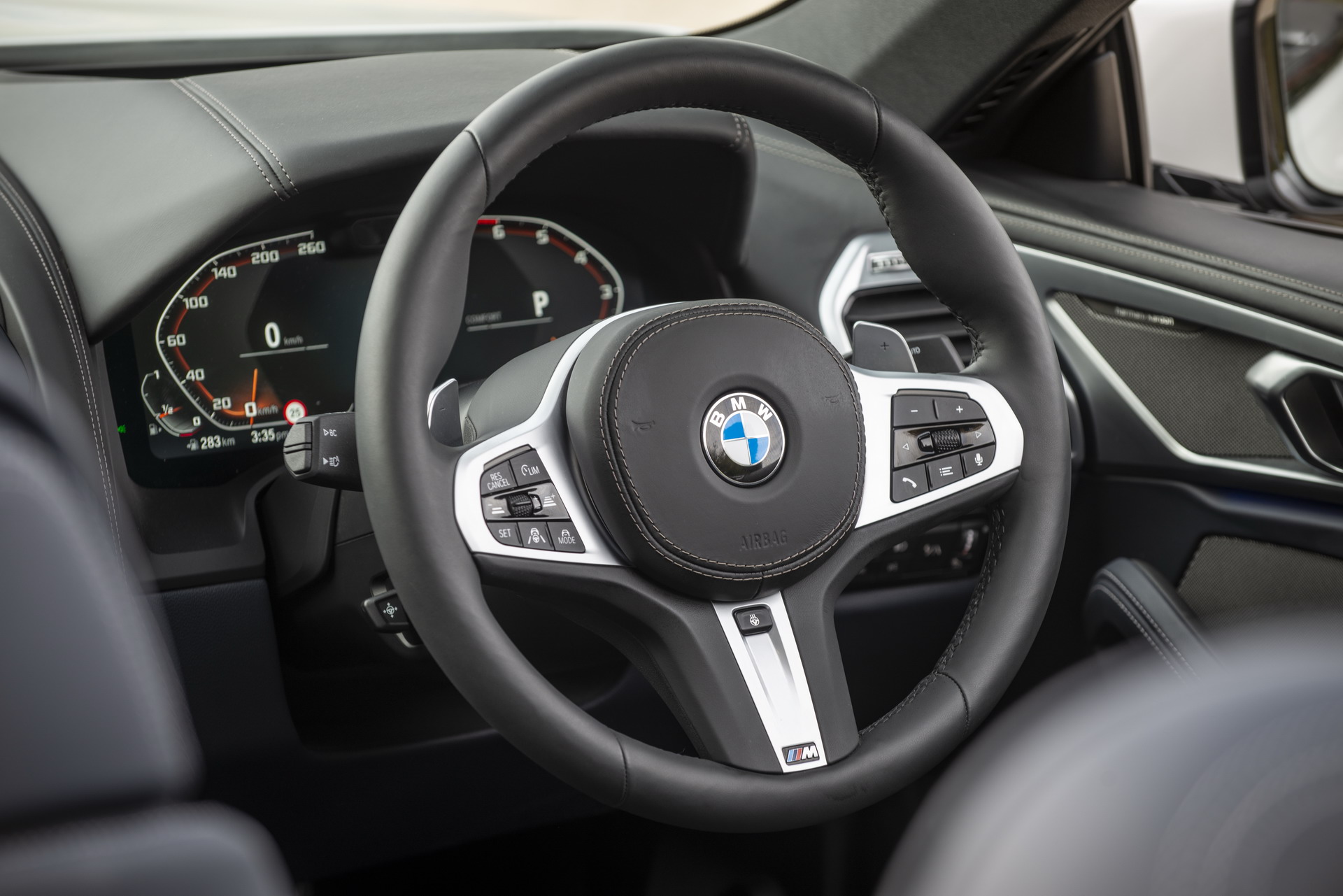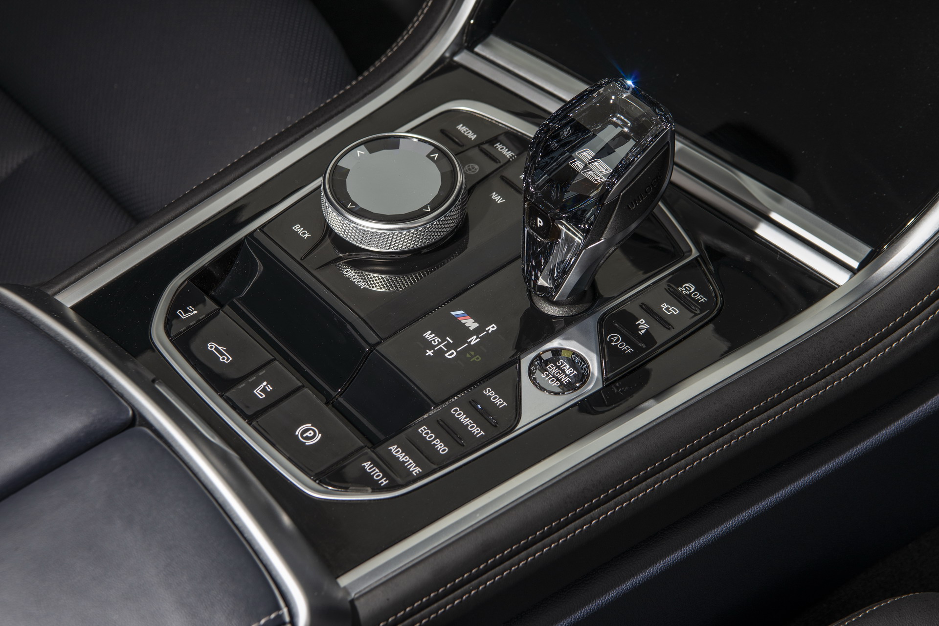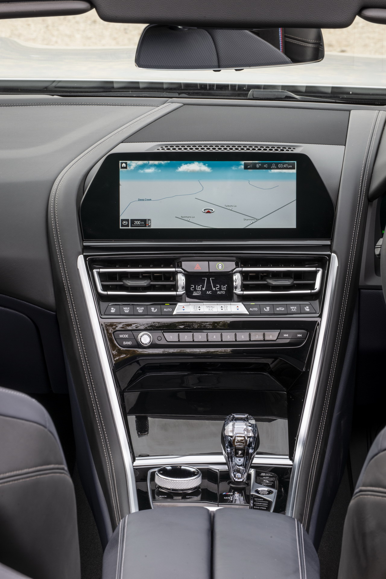 This soft-top 8 Series had its cabin adorned in the BMW Individual Merino Black leather upholstery, complete with M seat belts, the BMW Individual Pianolack dashboard trim and the CraftedClarity glass applications for the electronic gear shifter, volume knob, iDrive rotary controller and engine start/stop button.