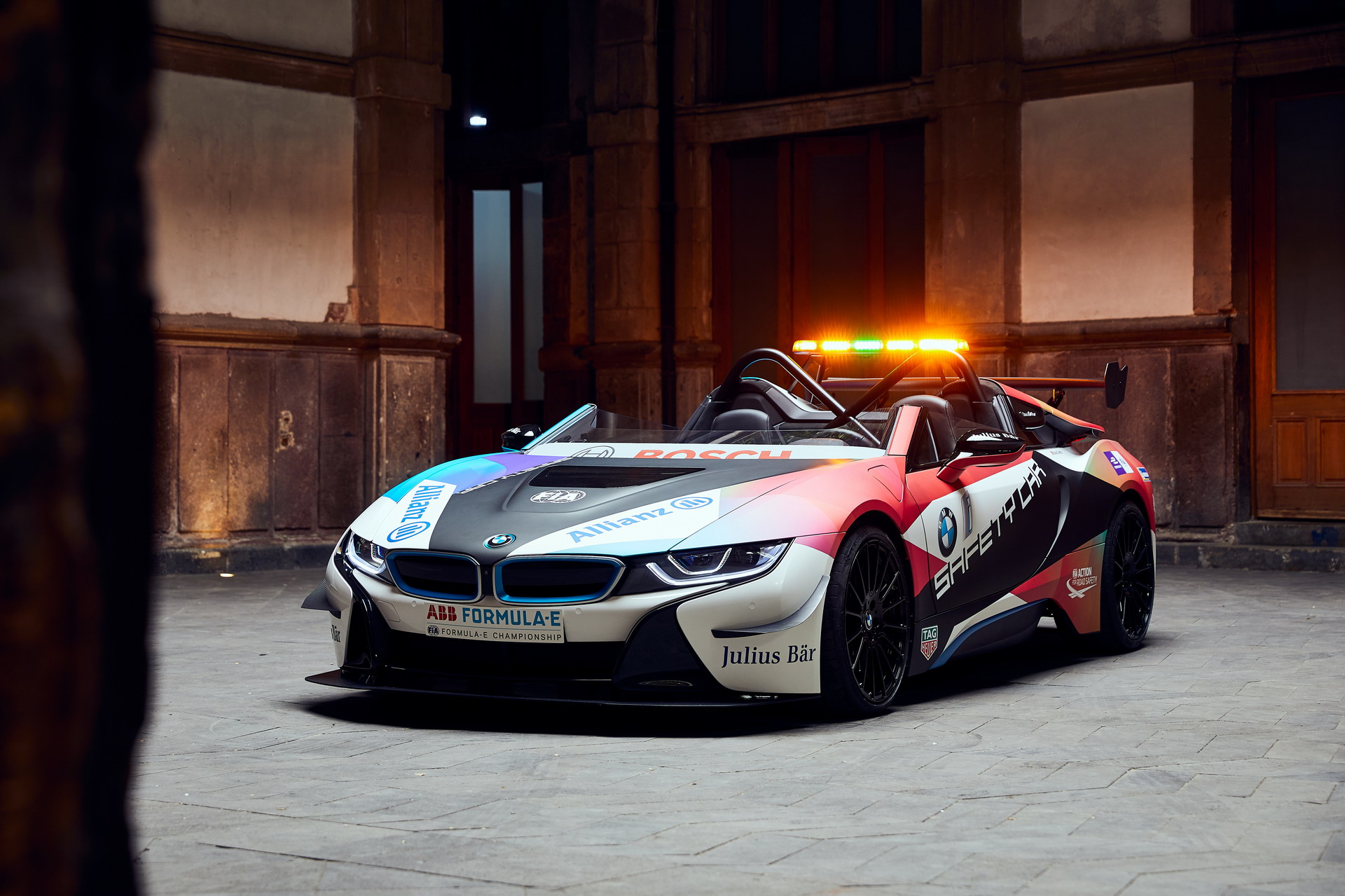 From 2019, BMW i marked another premiere in the field of safety car. The new BMW i8 Roadster (I15) joined the Formula E fleet of BMW Safety Cars, making it the first open-top model of its kind.