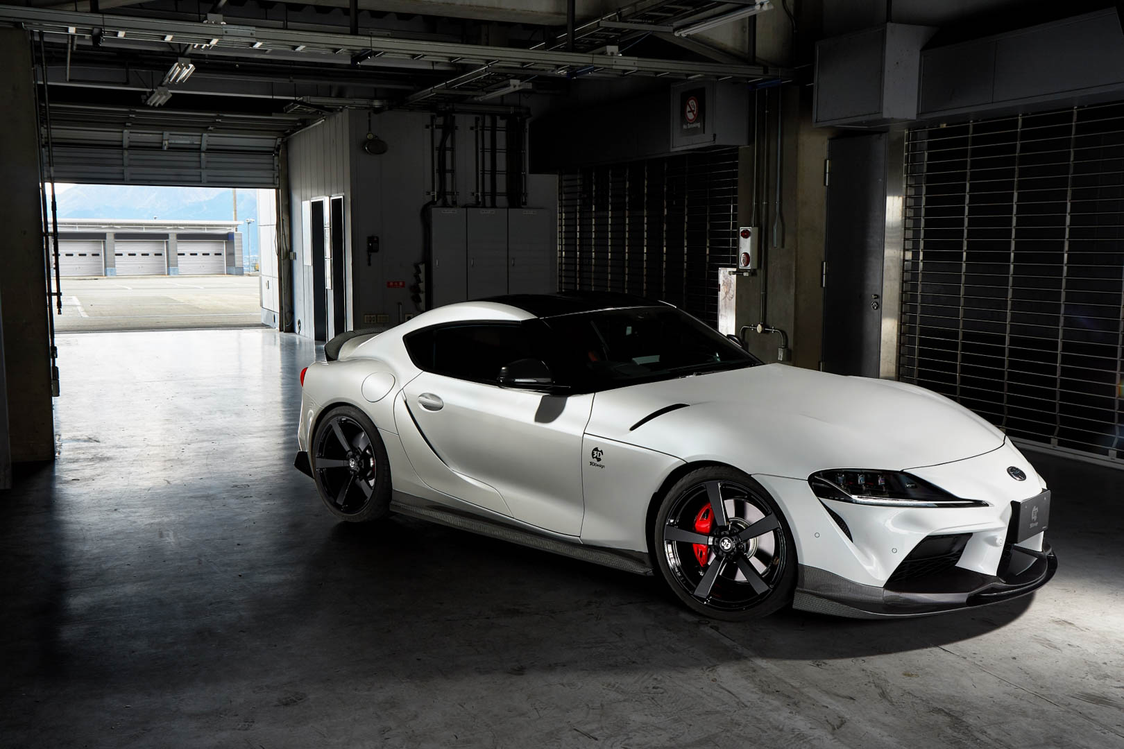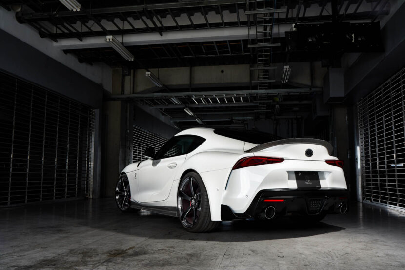 The beauty of this 3D Design kit is that it looks a bit crazy but that works well on the Supra. It’s such a radically designed car that crazy look good on it. The carbon fiber front splitter is large and makes the front end look lower and angrier than before. The side skirts are thick and visually slam the car to the ground. Its ducktail spoiler gets even longer thanks to an additional carbon fiber one and its massive exhausts look excellent.