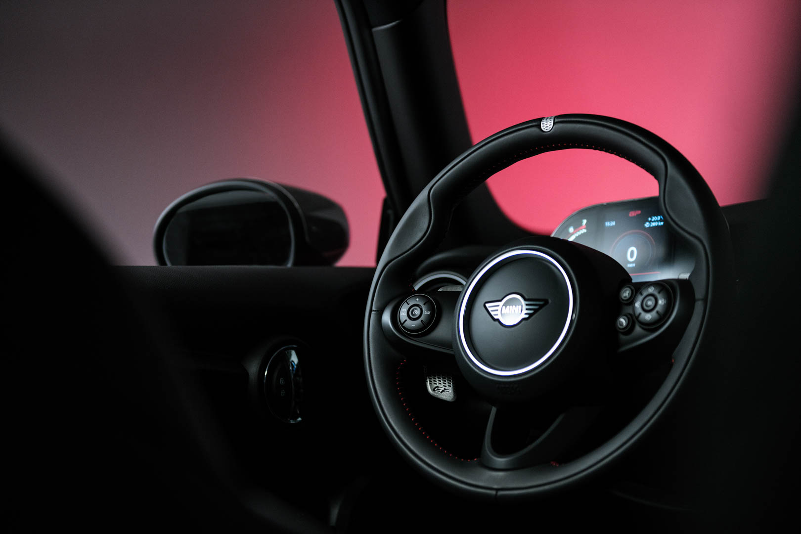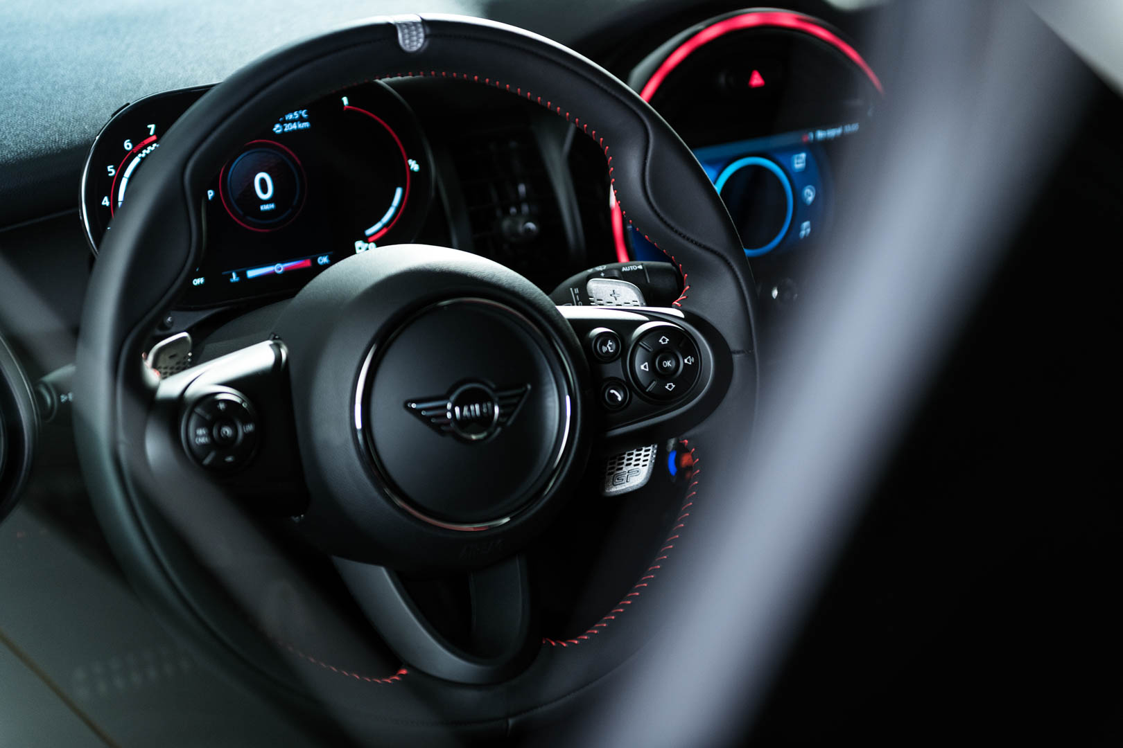 Inside the MINI John Cooper Works GP, it’s a bit less manic than it is on the outside. However, there are some interesting bits. For instance, the aluminum paddle shifters look fantastic and actually look better than those from any other BMW Group product. Interestingly, they’re also 3D printed, which is techy and cool. More importantly, though, they increase the actual enjoyment of shifting gears. Having driven several new Alfa Romeos and a Ferrari or two, I’m completely sold on the idea of aluminum paddles and genuinely feel as if they make clicking gears away more enjoyable.