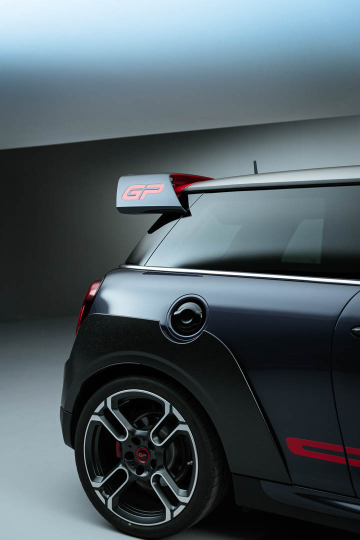 Penned by Oliver Heilmer, the JCW GP is exciting, exotic and a little bit absurd, in the best ways possible. Just look at the fender blades that stick off both the front and rear wheel wells. They look like nothing else and no other car has them. They’re likely not even very functional but who the hell really cares? Up front, massive air intakes are accentuated by flanking front spoilers, which then continue upward to create the front fender blades, making the design look cohesive and beautiful, as well as angry and aggressive.