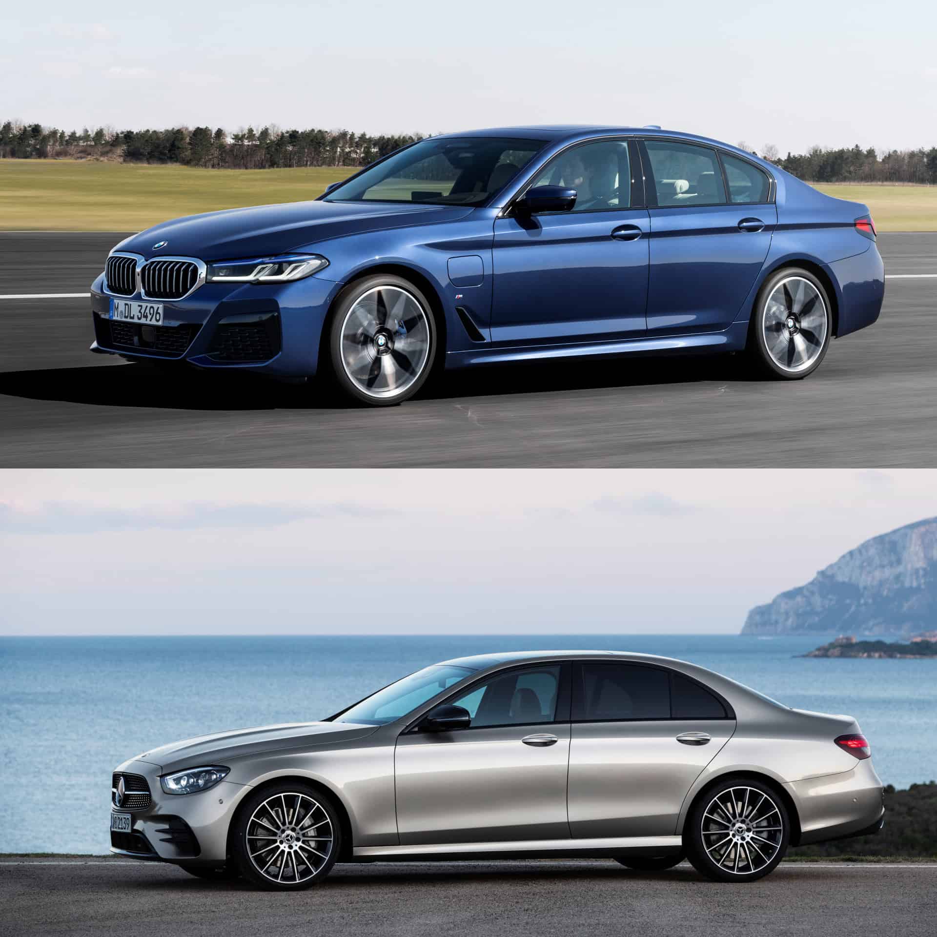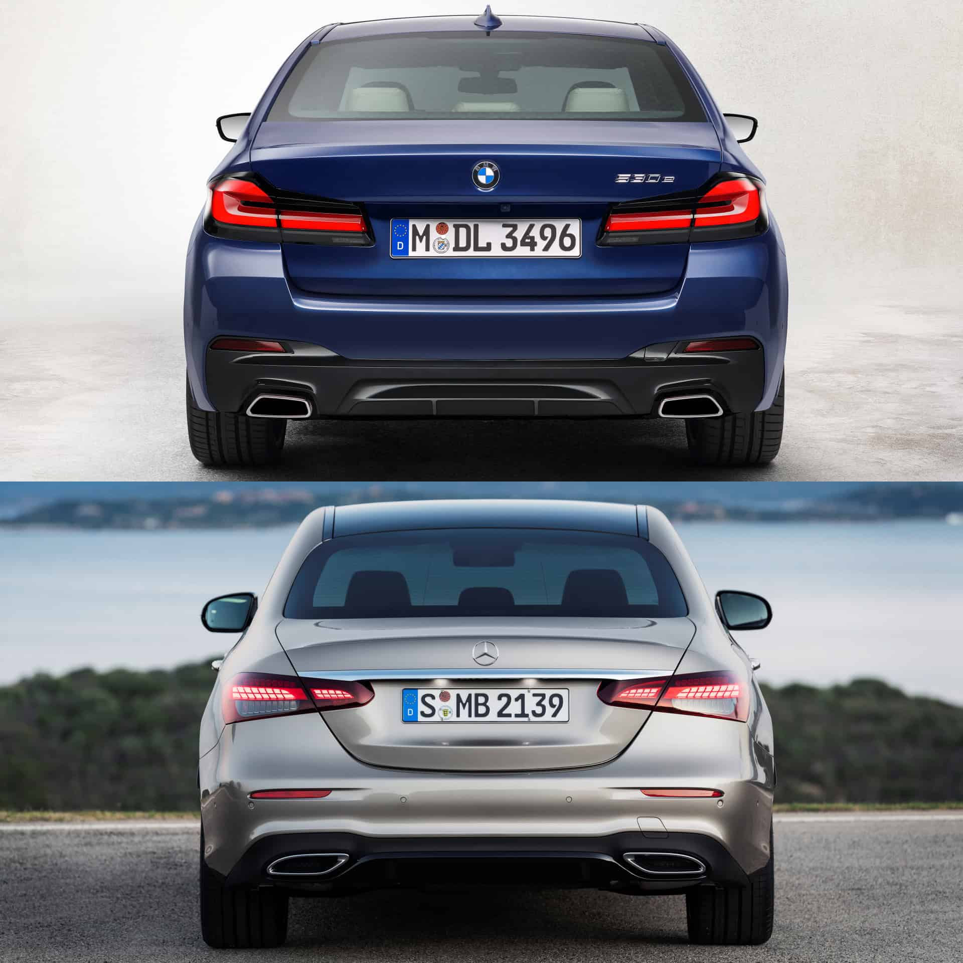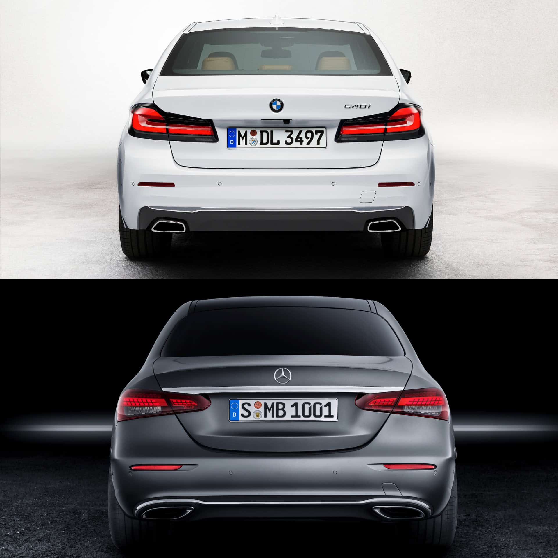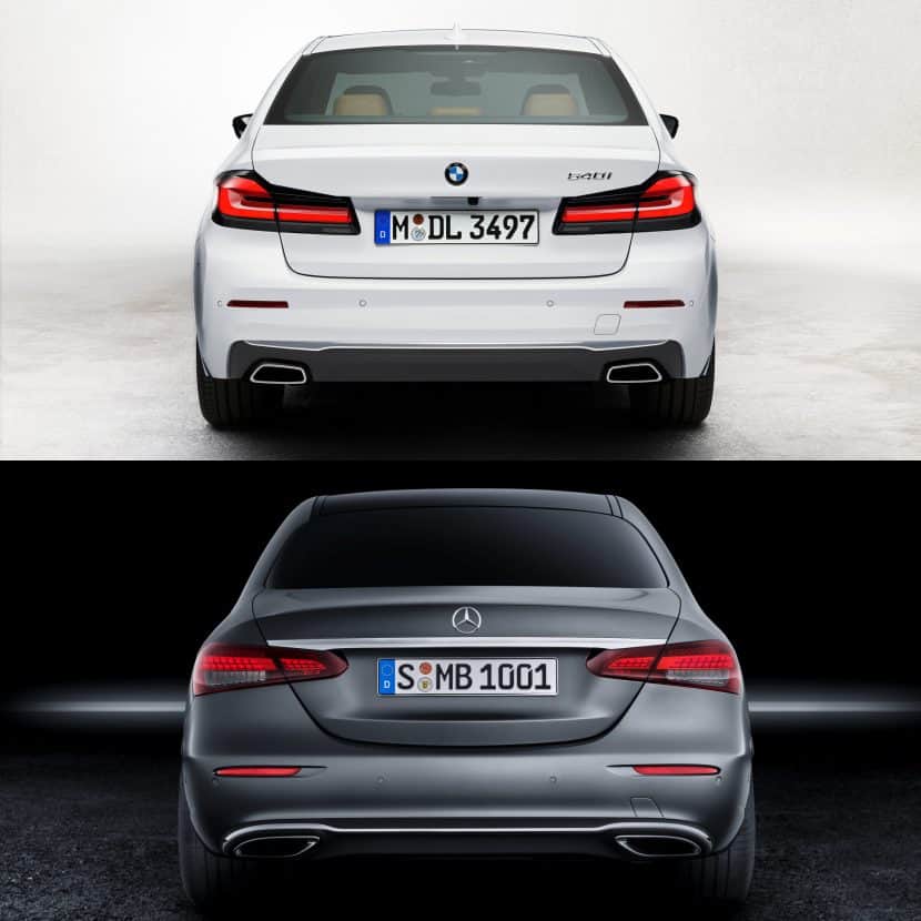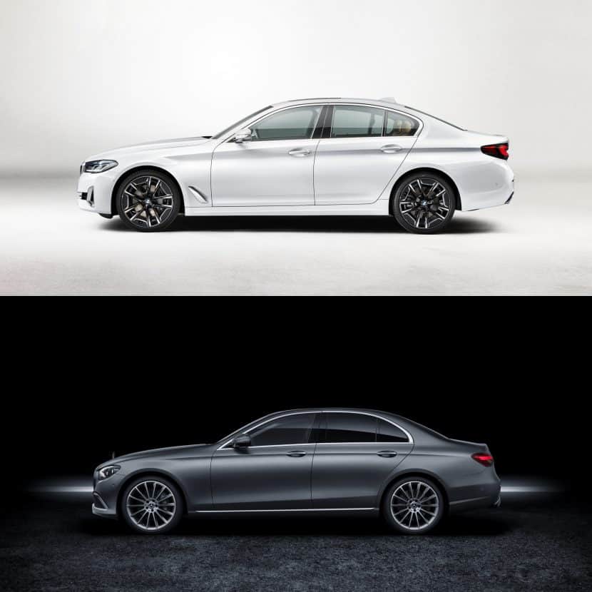 The side profiles of the two contenders are also exhibiting a brand-specific identity. Both the BMW 5 Series and the Mercedes-Benz E-Class are looking particularly classy and elegant.