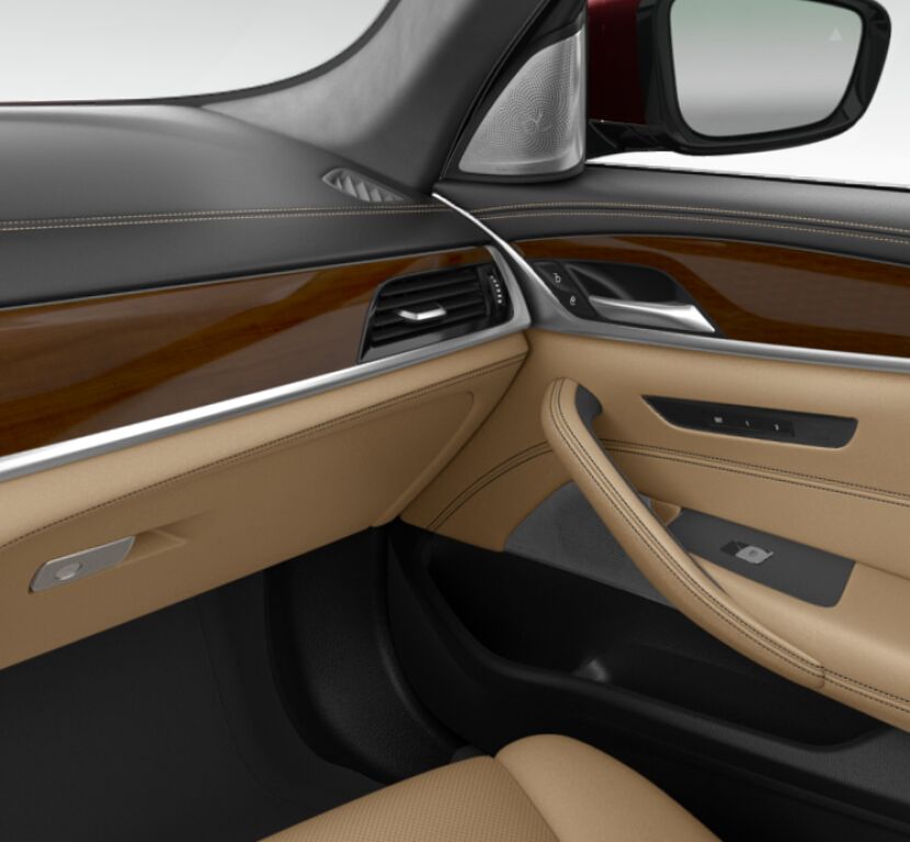My top pick for the car’s paintwork is the elegant BMW Individual Aventurine Red II metallic, which is now offered for the first time in the new 5 Series generation.