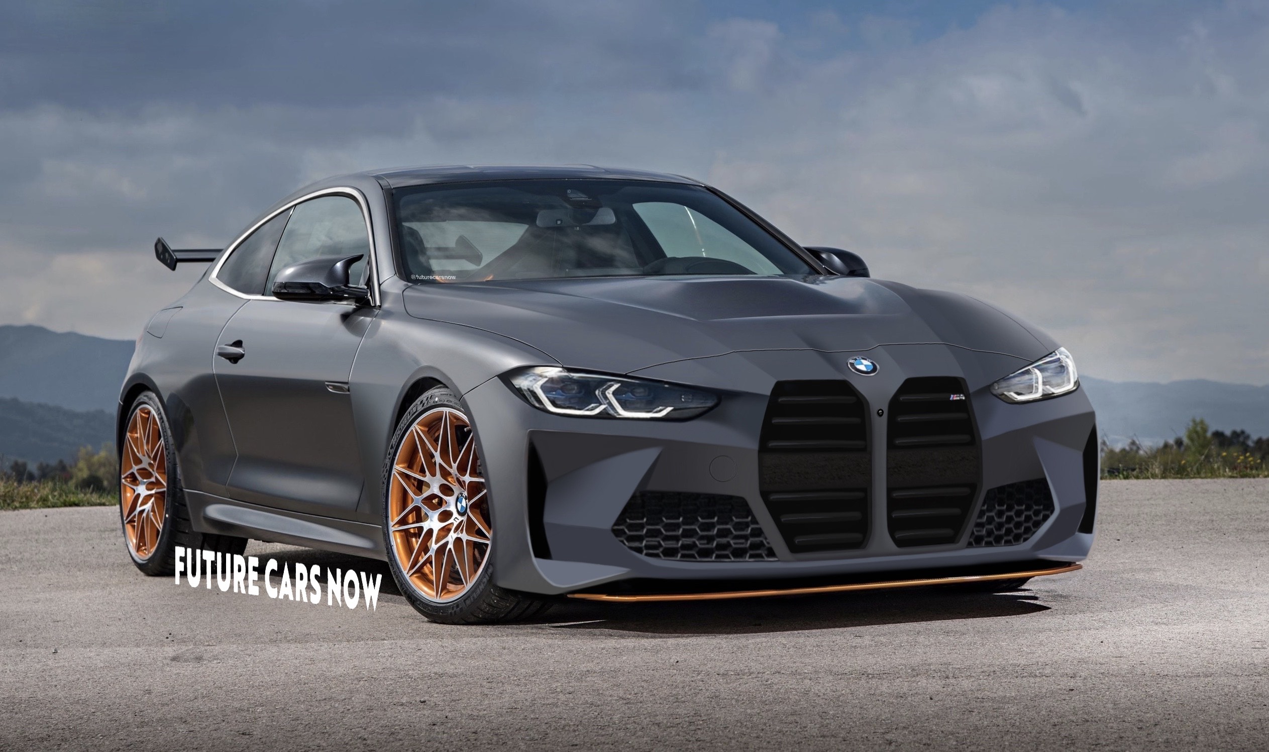 A massive racing spoiler peaks from the back, a statement to the true DNA of the future M4 CSL.