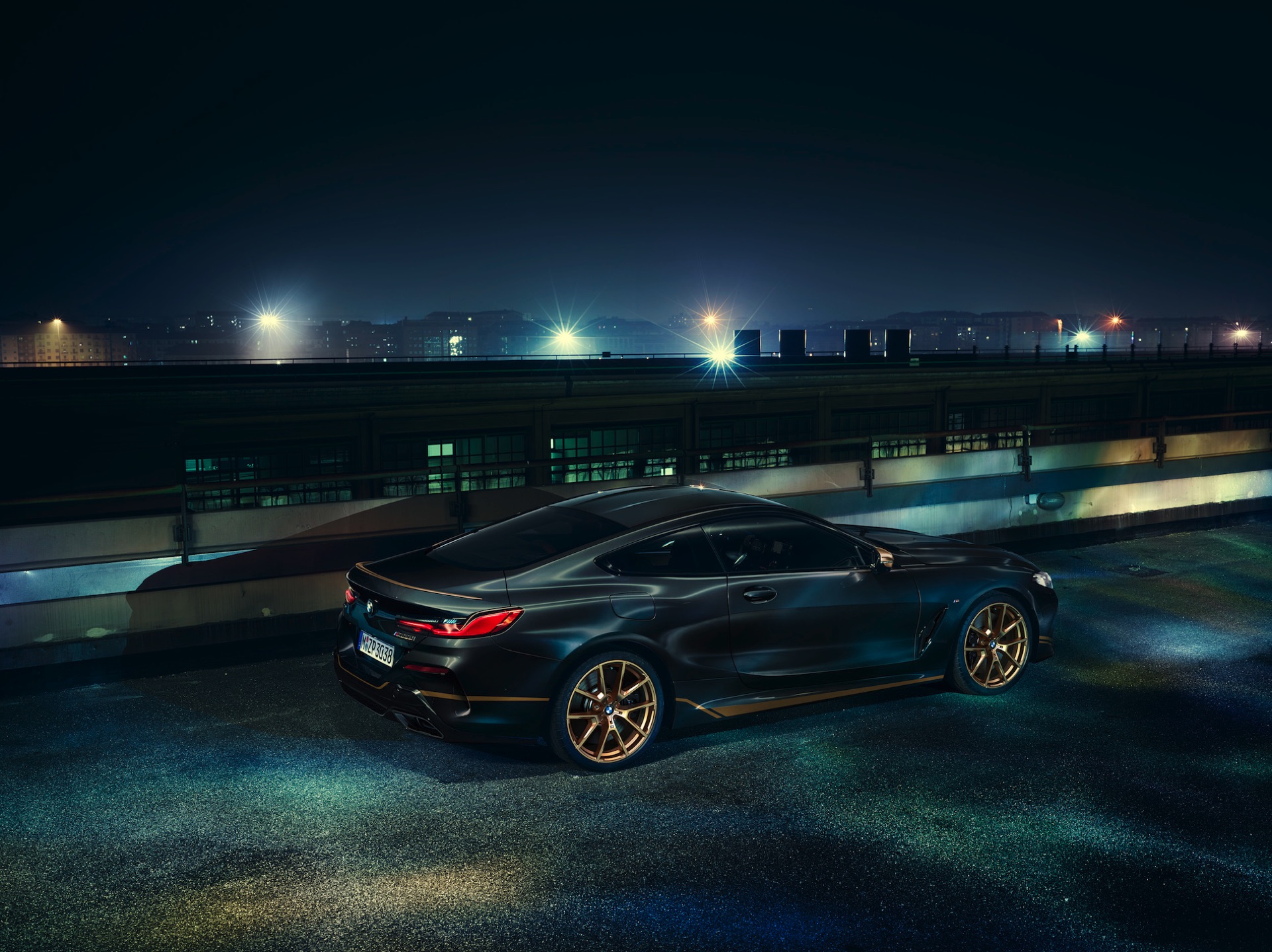There is also a golden accentuation lines running from the front apron to the side skirts and on into the rear apron. Other features finished in gold are the exterior mirror caps, the M rear spoiler (exclusively available for the BMW 8 Series Coupé) and the 20-inch M light alloy wheels in double-spoke design.