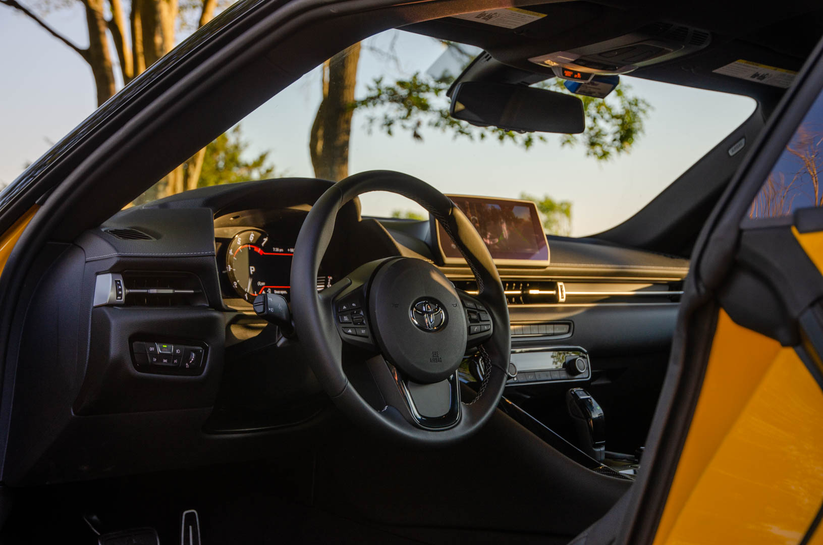 However, there are two aspects of the Supra’s cabin that I actually appreciate quite a bit. One is the gauge cluster. It’s mostly digital but there’s a physical tach-surround in the center of it and it looks very cool. It’s a nice combination of old-school and new-school and also looks very sporty. It’s far better than the extra-small version of BMW’s Live Cockpit Professional seen in the Z4.