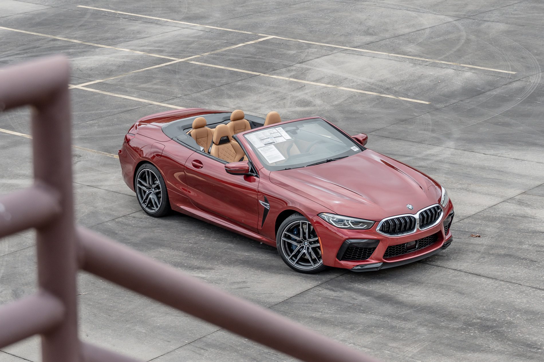 A high-performance open-top BMW M8 Convertible is displayed at the Hendrick BMW’s showroom. The powerful and stylish M8 is also painted in a special Motegi Red shade. This is another interesting and appealing color, which can be suitably included in the vast list of BMW’s red shades.