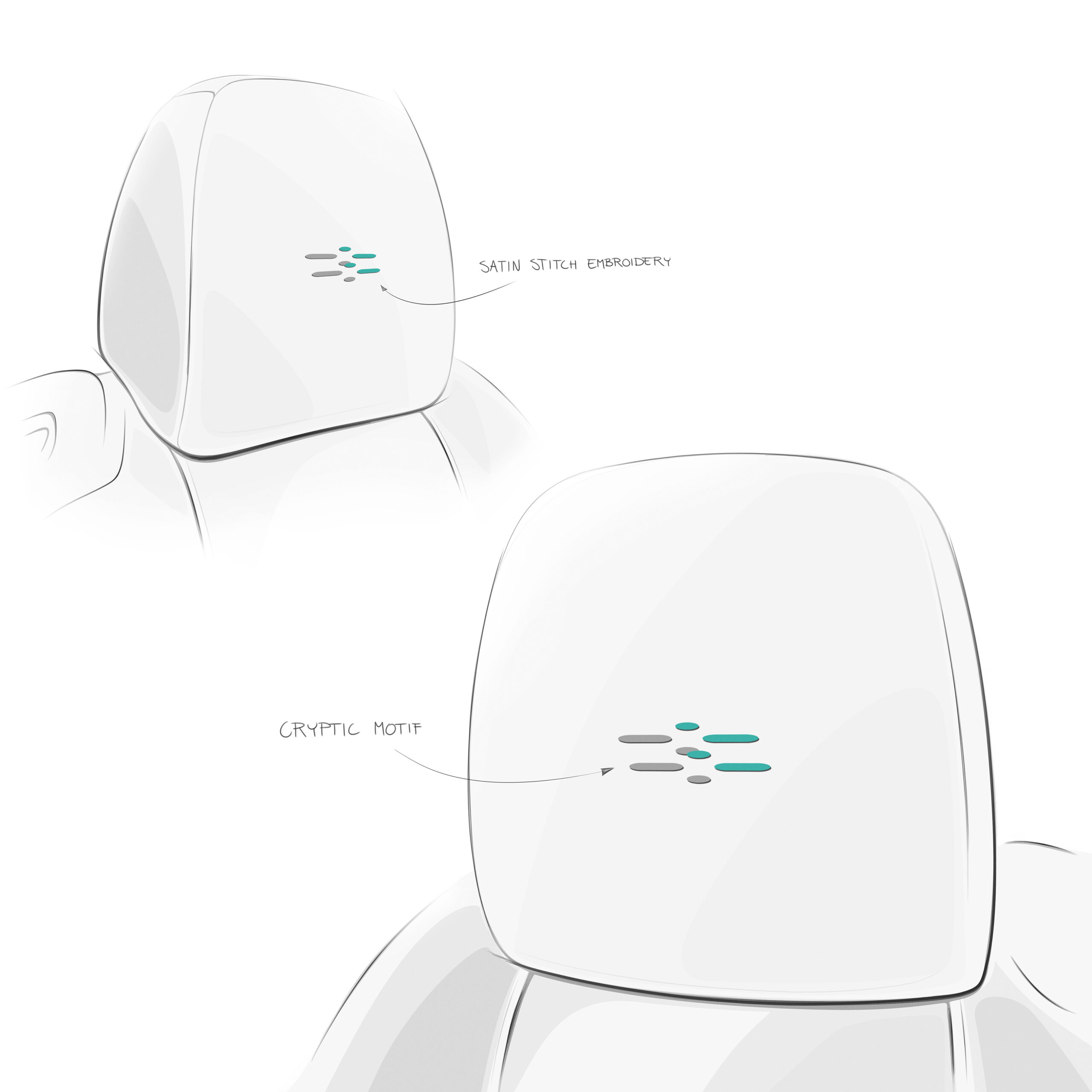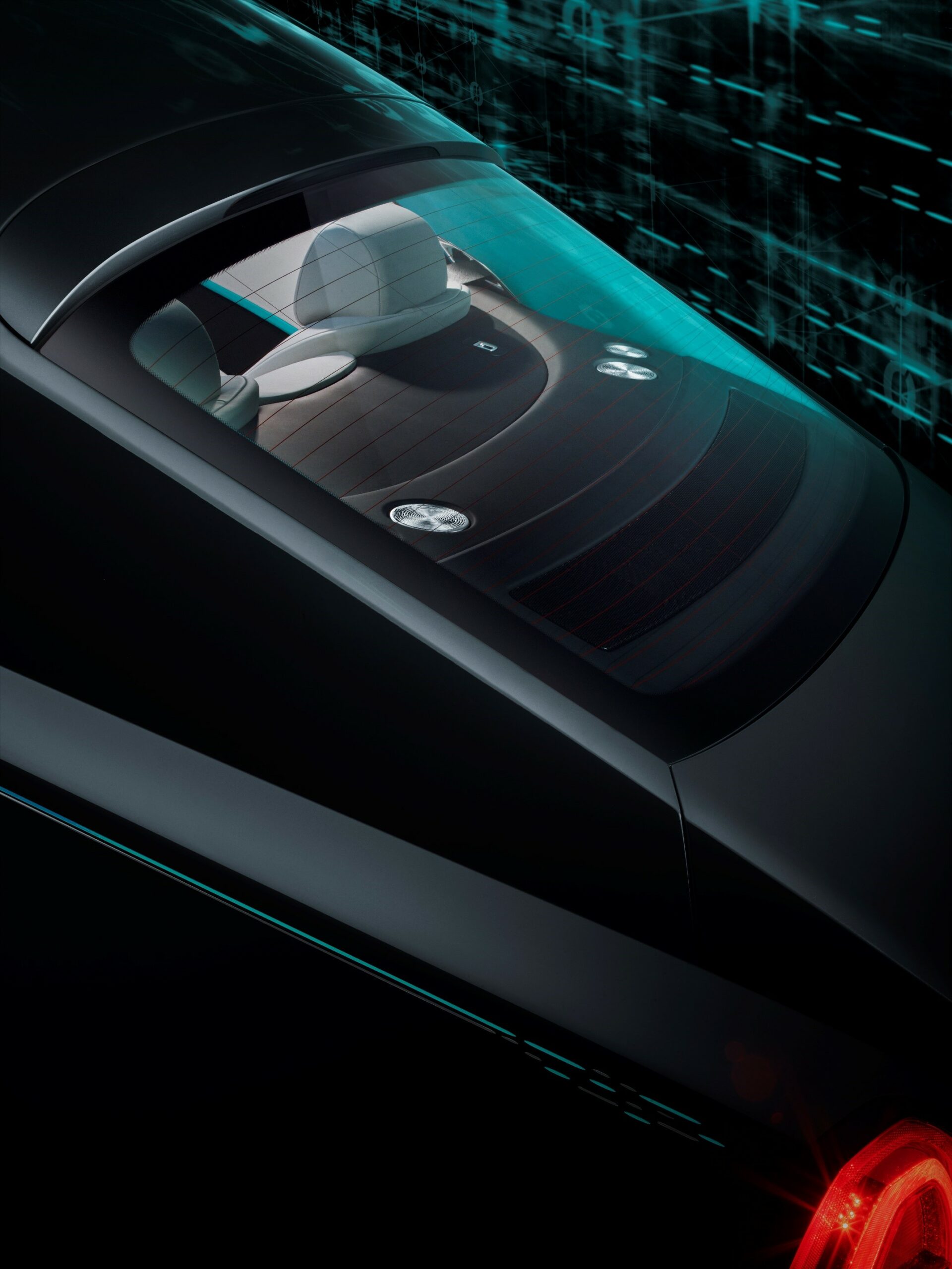 The clues are scattered throughout the design of the car and the most obvious place to look is the headliner, which features a Matrix-esque data stream. The entire interior is given a green-ish color scheme and there are little ciphers embroidered into the headrests, rather than the usual Doube-R logo.