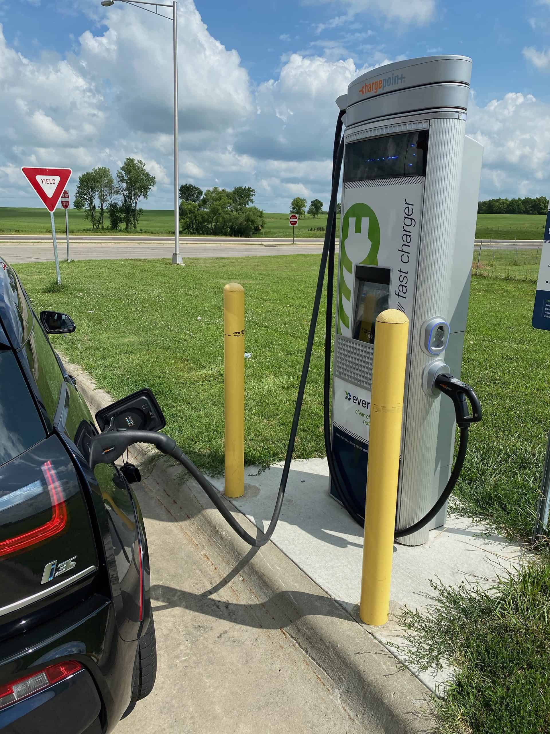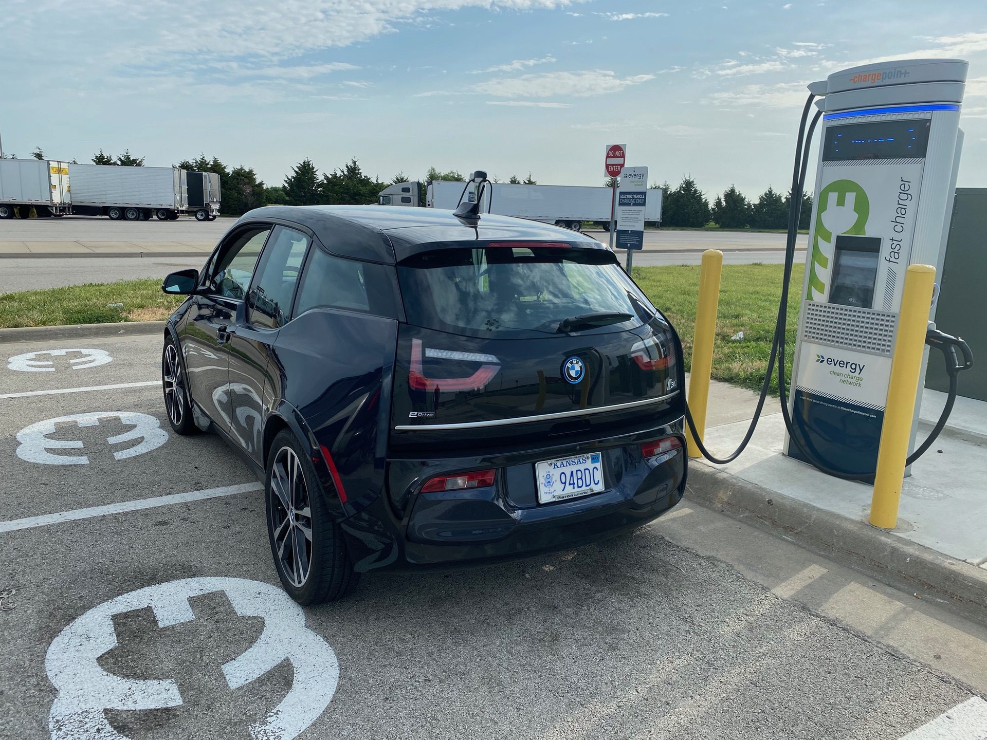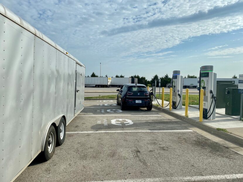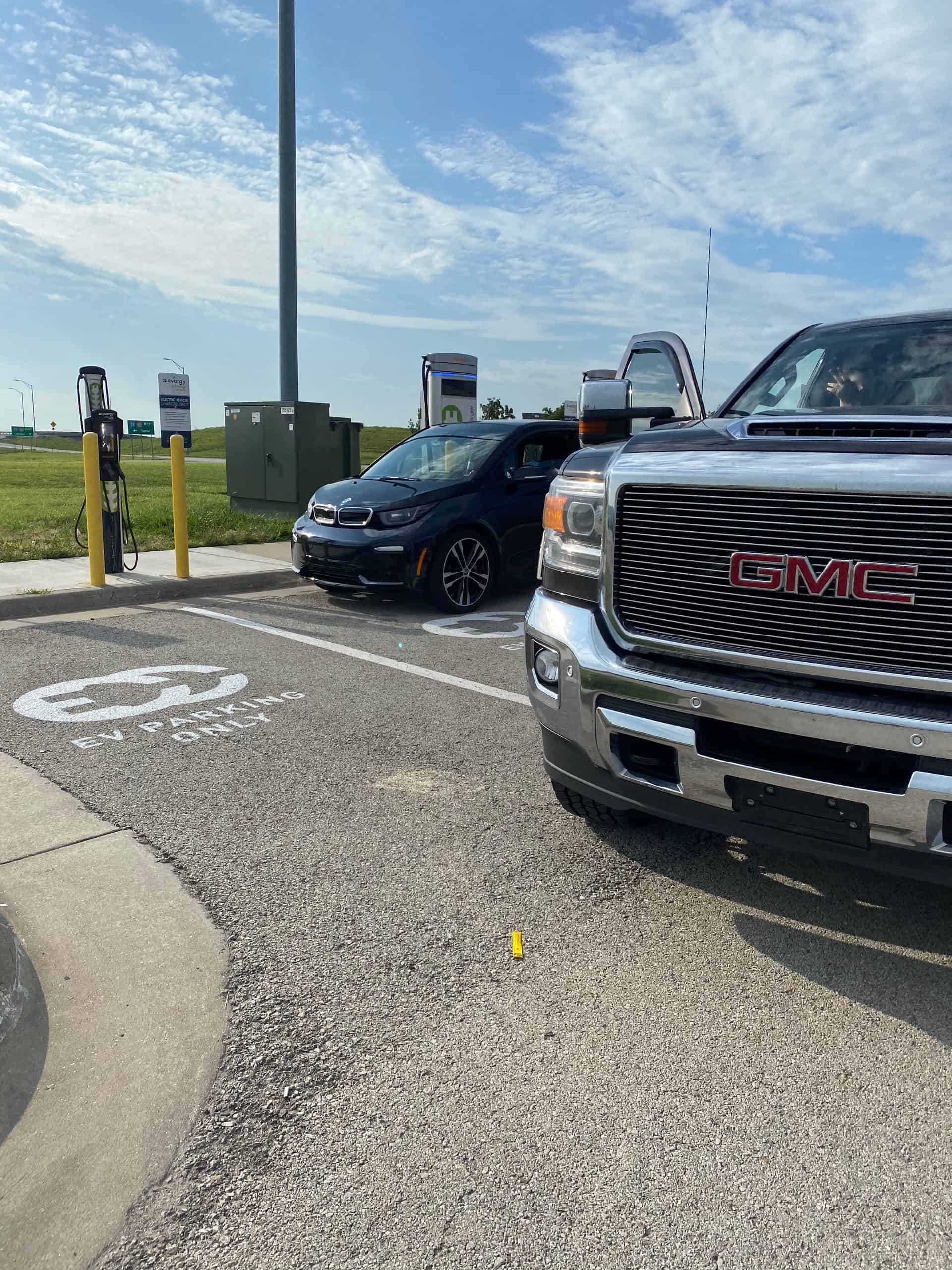 Today I was on a 145 mile road trip in a 2018 BMW i3S, an electric vehicle with a range of 110 miles. This meant I absolutely had to charge the car during my trip. As I pulled off of I-70 for or our first DC Fast Charge, my heart sunk. There was a massive diesel-powered pick-up truck with huge trailer. Behind that trailer, there were two jet skis in tow! It must of been over 50 feet of truck and trailers “ICEing” the spots.