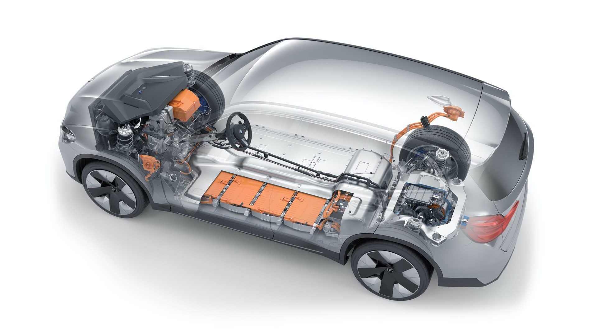 Compared to conventional X3 models, the new iX3 boasts a center of gravity that is reduced by around 7.5 centimeters. The rear axle also features a subframe that houses the components of the electric powertrain.