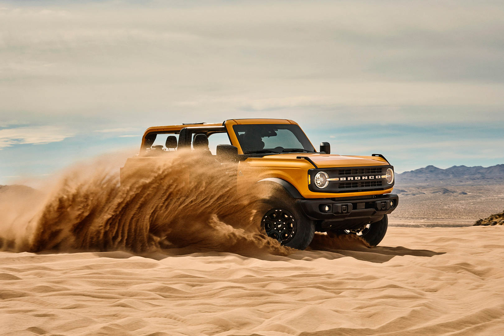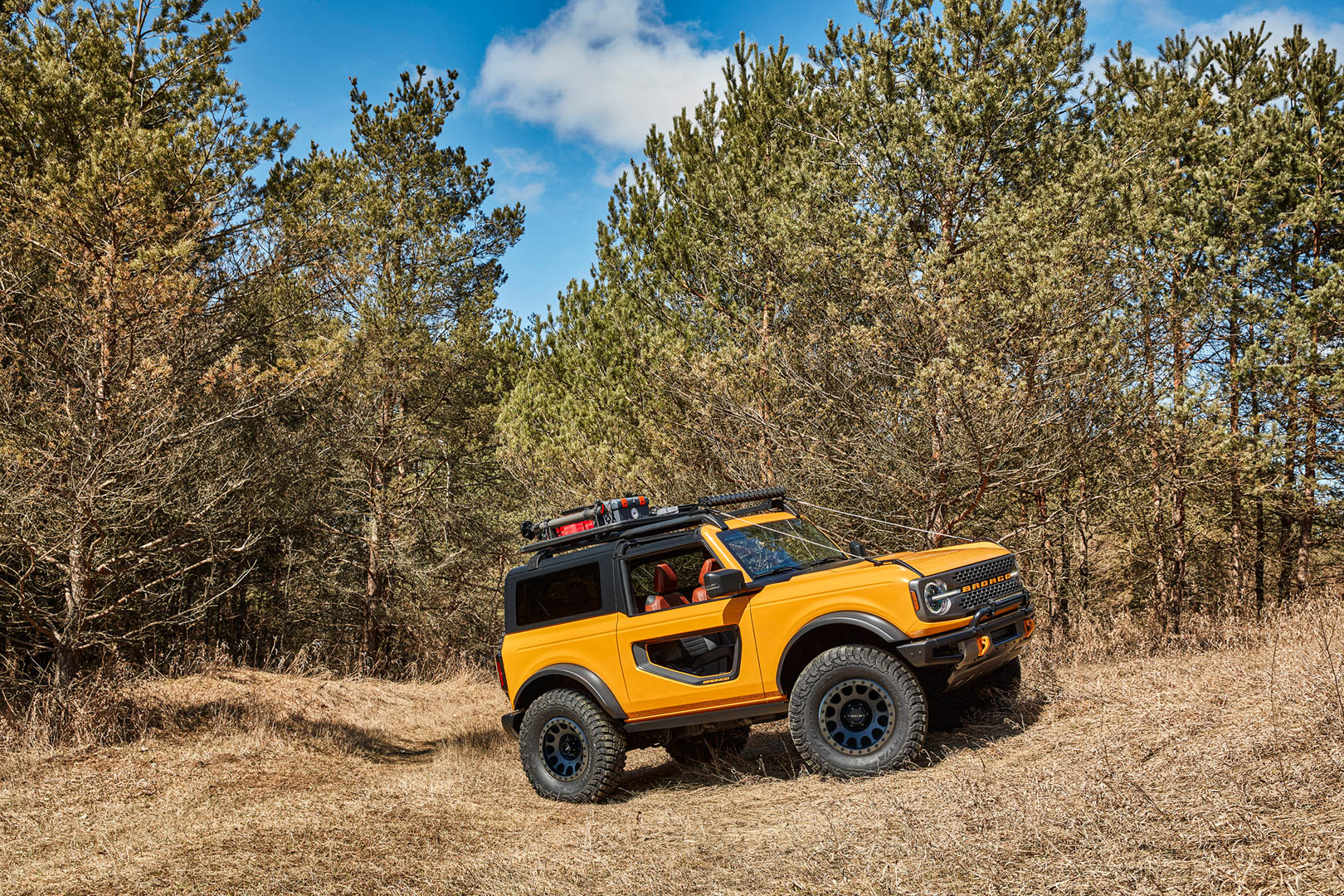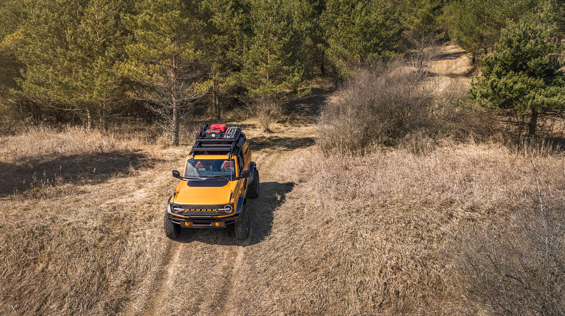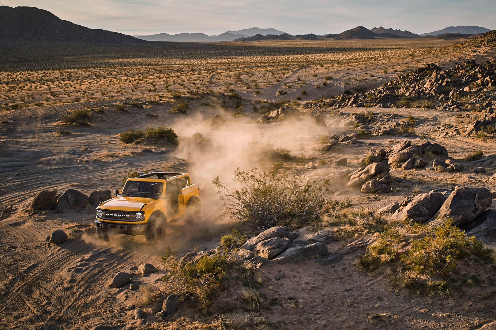 Like the Land Rover Defender, the entire interior is trimmed in a durable, waterproof rubberized coating, which not only allows it handle some rain or splashing while driving with the roof down but also allows it to be hosed off after a spirited day of off-roading. Also like the Defender, the cabin isn’t some spartan prison cell, as it’s packed with advanced technology, such as Ford’s latest SYNC 4 system and advanced trail mapping, with over 1,000 off-road trails pre-programmed into it.
