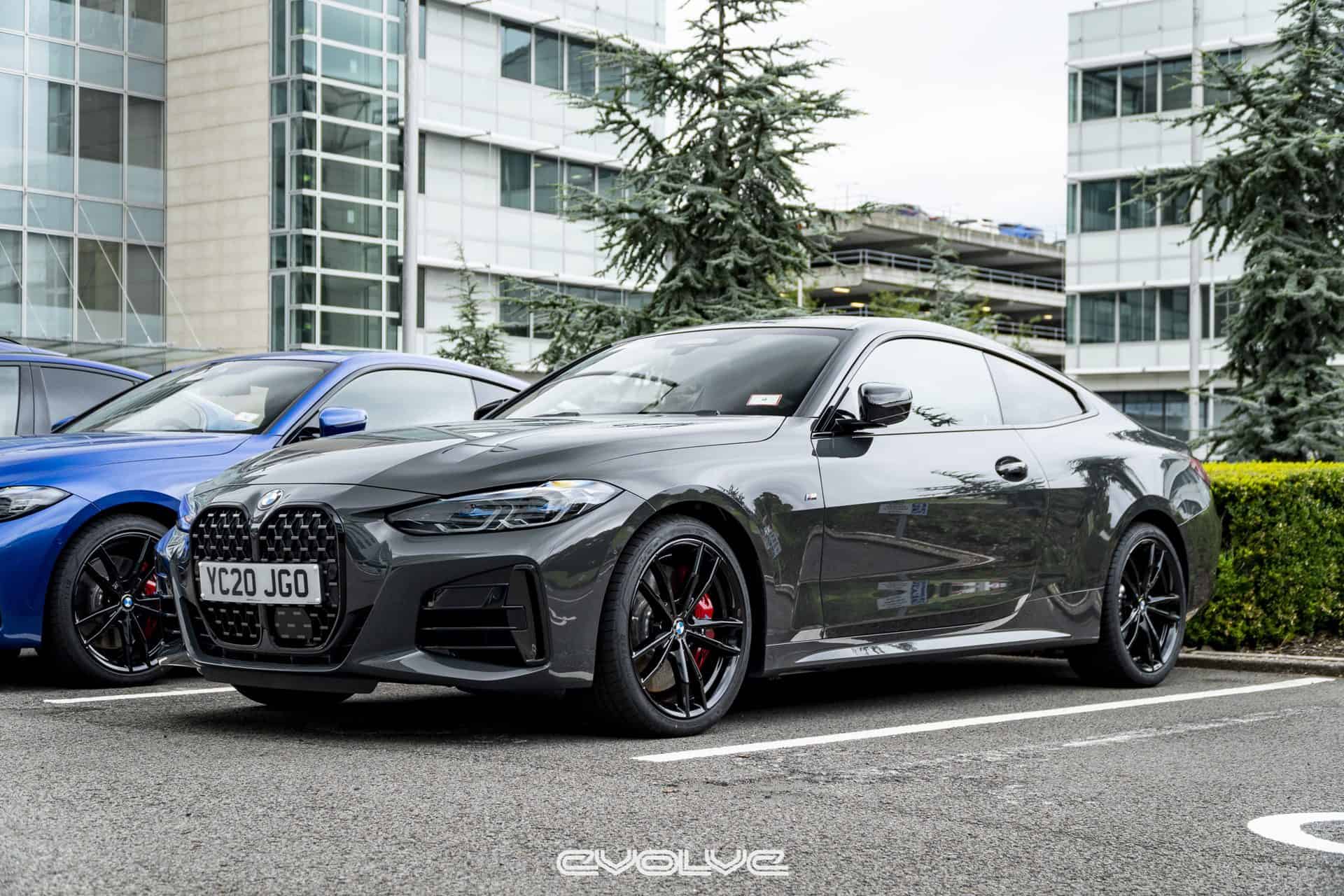 Courtesy of our friends at Evolve, we bring you a new set of photos featuring the 2021 BMW M440i. The model was spotted at the BMW UK Headquarters and it’s painted in the Individual Dravit Grey Metallic. As seen before, the new BMW 4 Series gets a version of the Concept 4’s grille, along with squinty headlights, a heavily sculpted hood and a new front bumper design. The new grille dominates the design, though, and is all anyone’s going to notice.