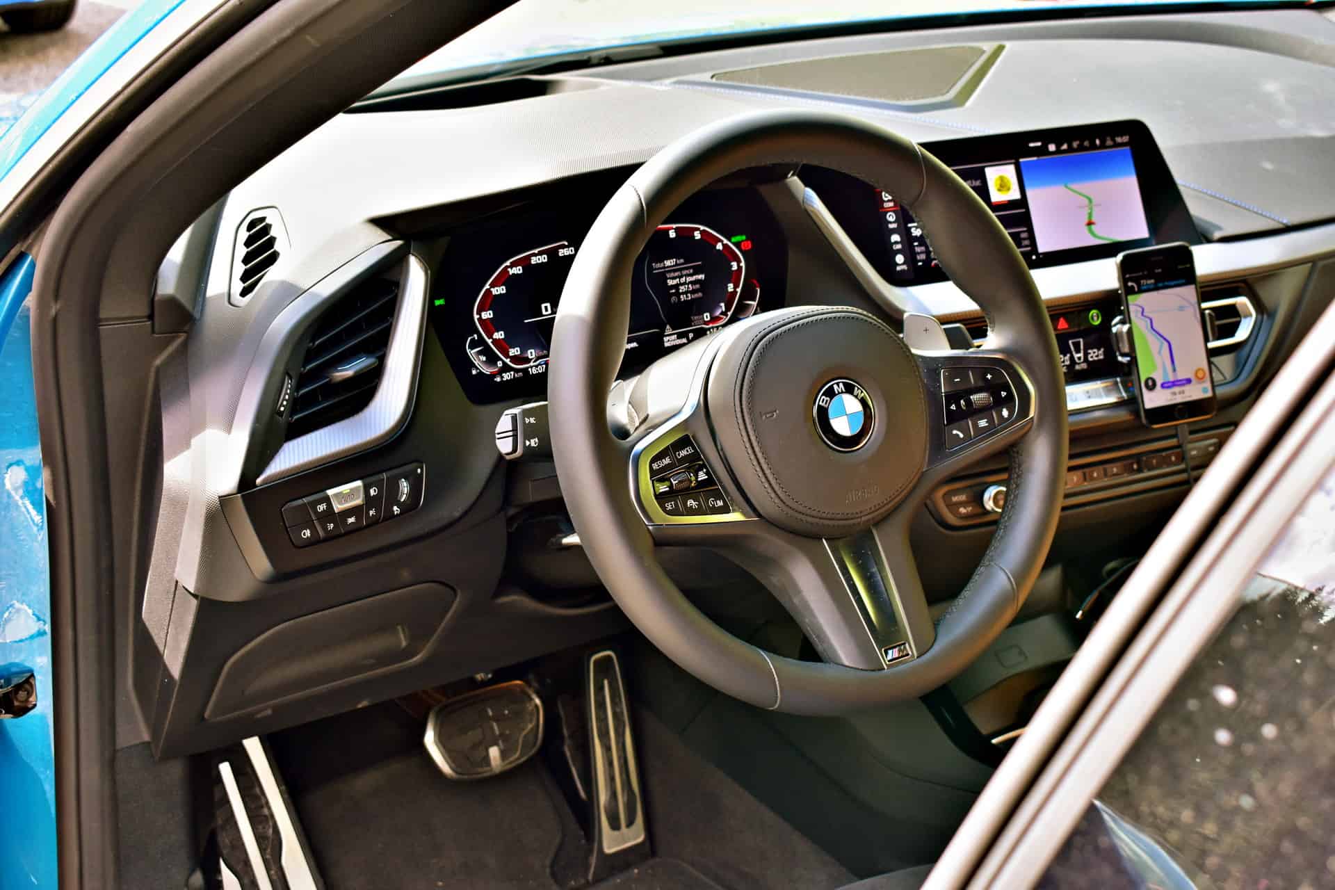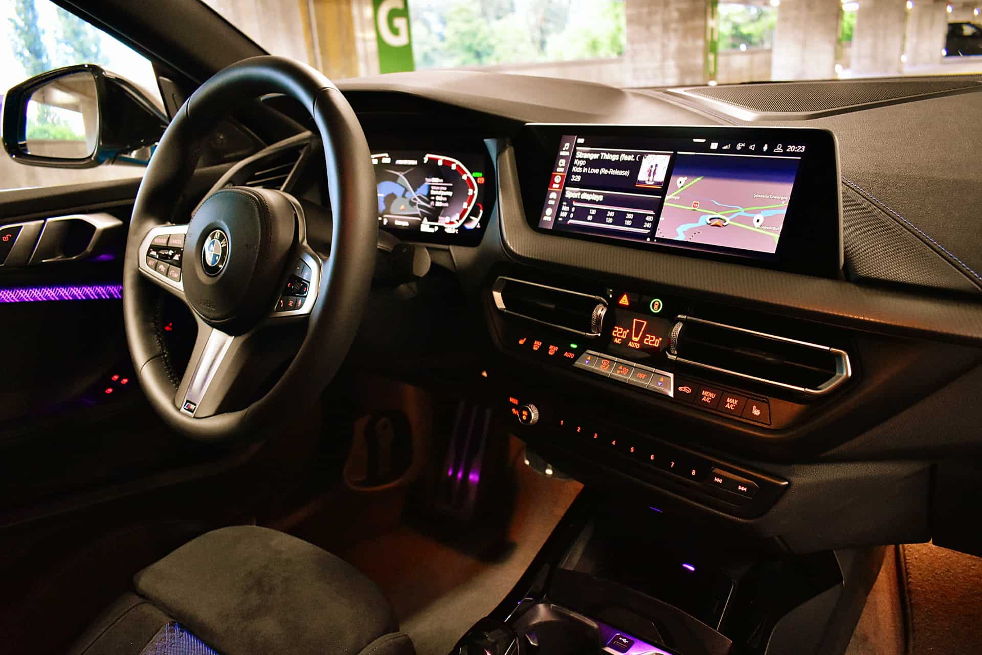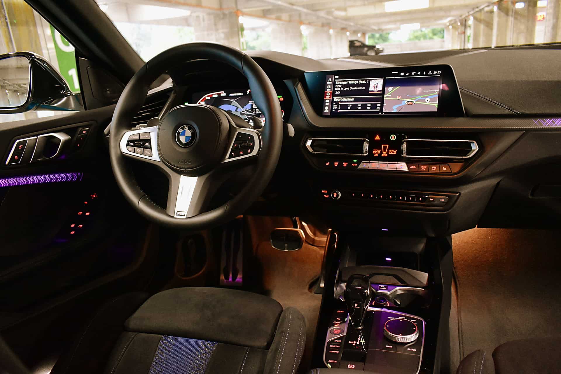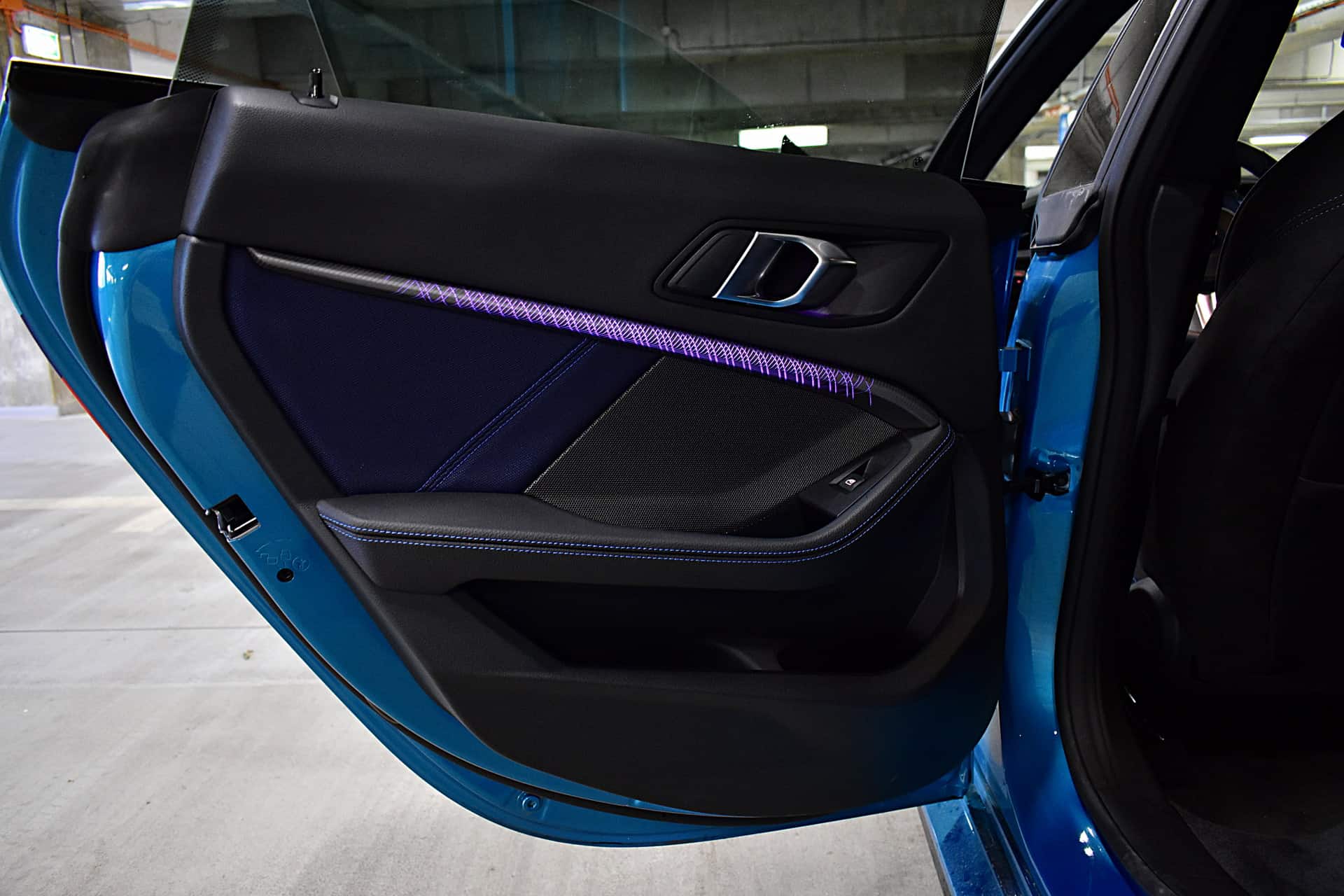 In terms of dashboard adornments, the car was specced with the Illuminated Boston trims. The M235i logo stands proudly in the digital instrument cluster and can also be found on the door sills.