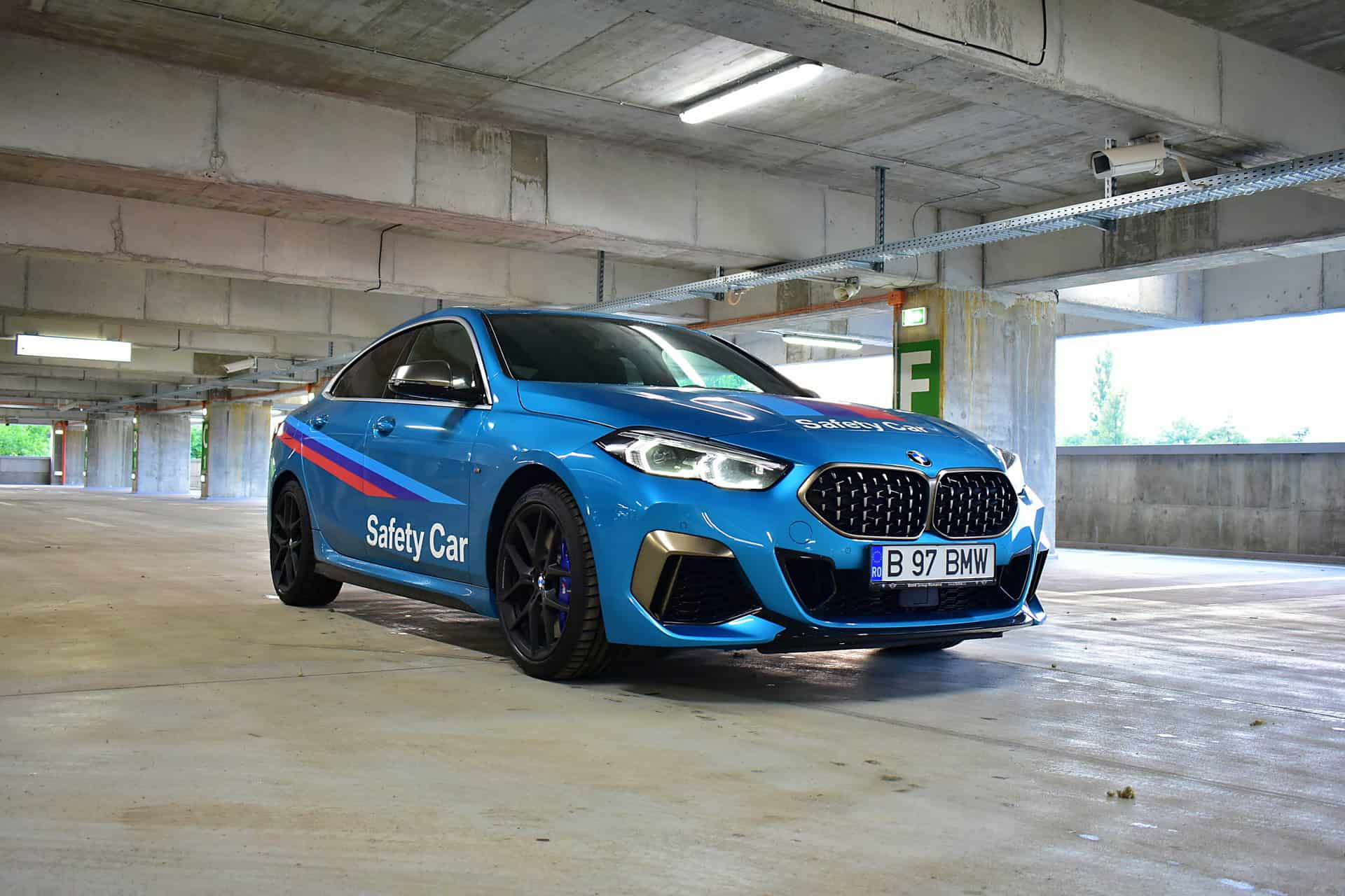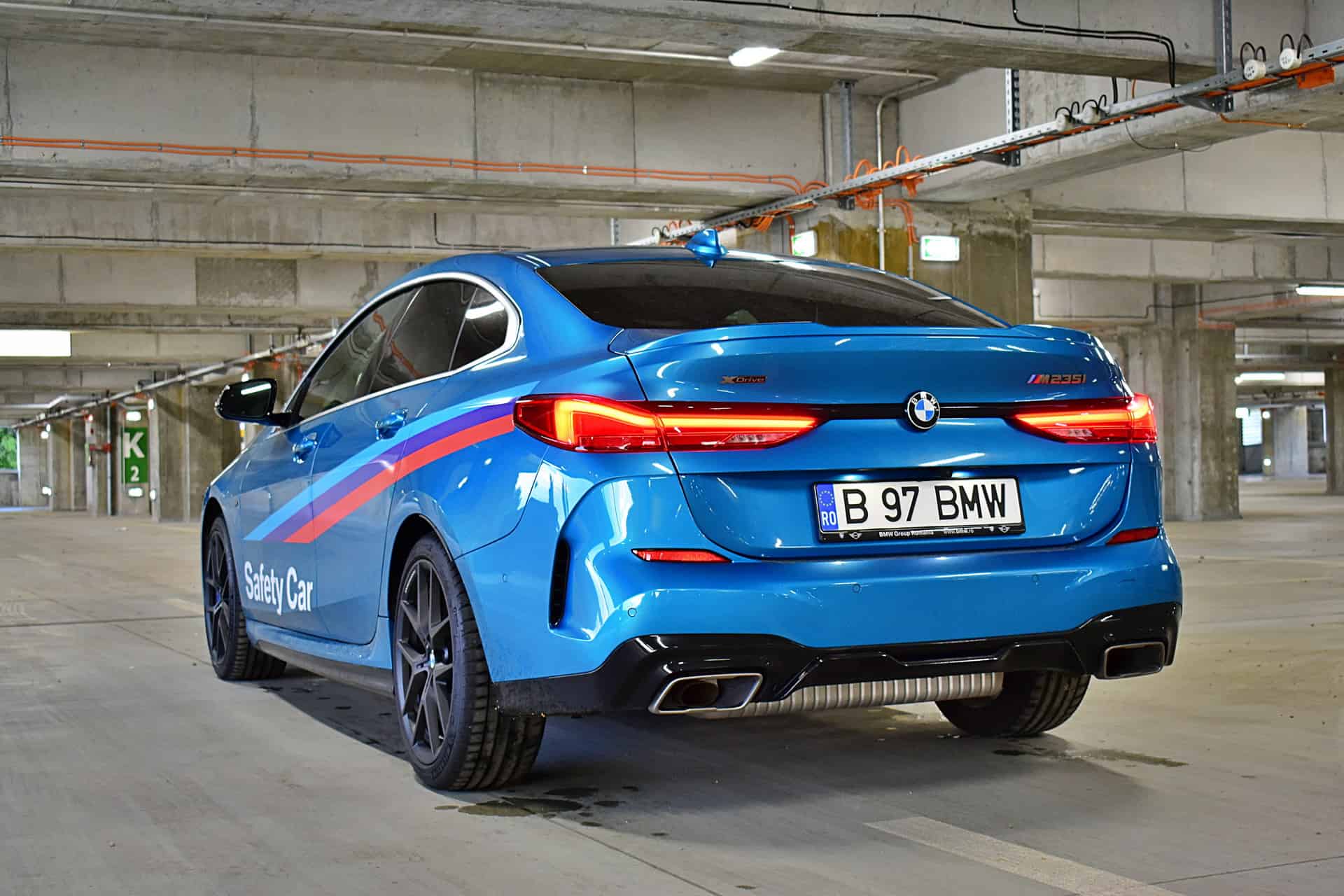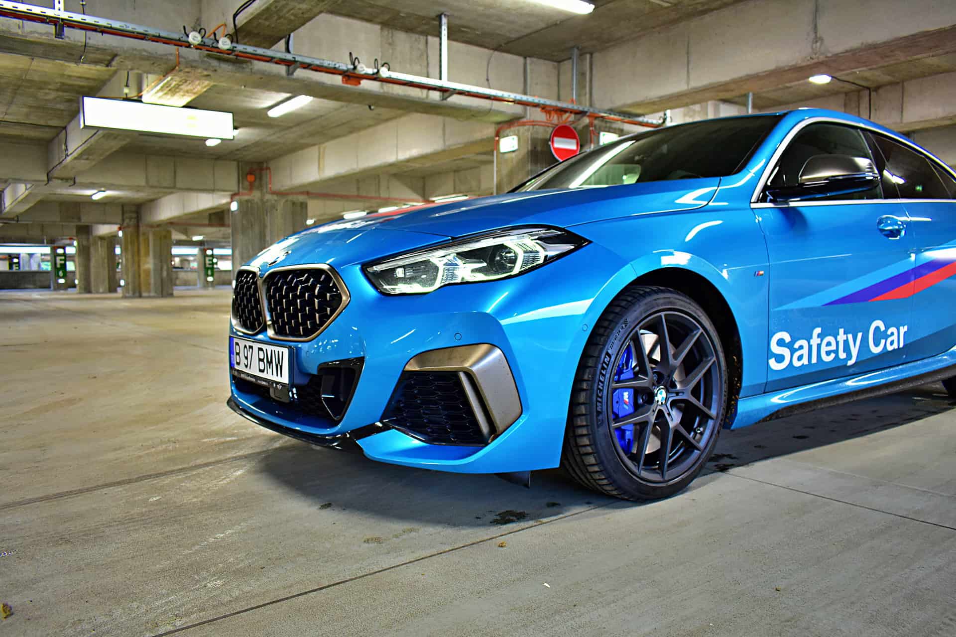 The BMW M235i xDrive test car was finished in a stunning Snapper Rocks Blue metallic color. Together with the usual Cerium Grey exterior accents for the low-end M models, it really gives the M235i a powerful and sporty appearance. Furthermore, as this specific model was due to serve as Safety Car during an internal racing competition, the M235i was also specced with a series of M stripes and Safety Car decals.
