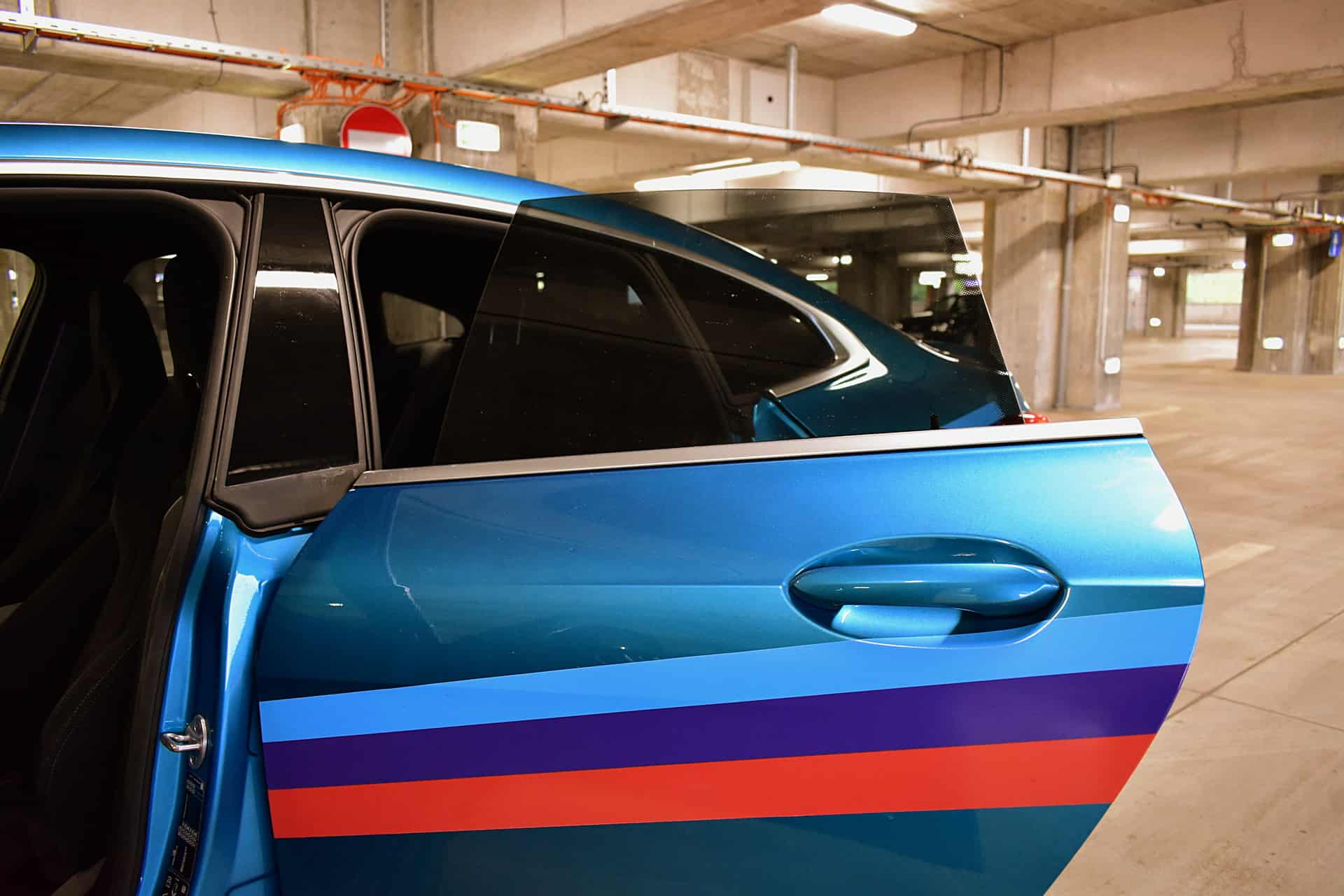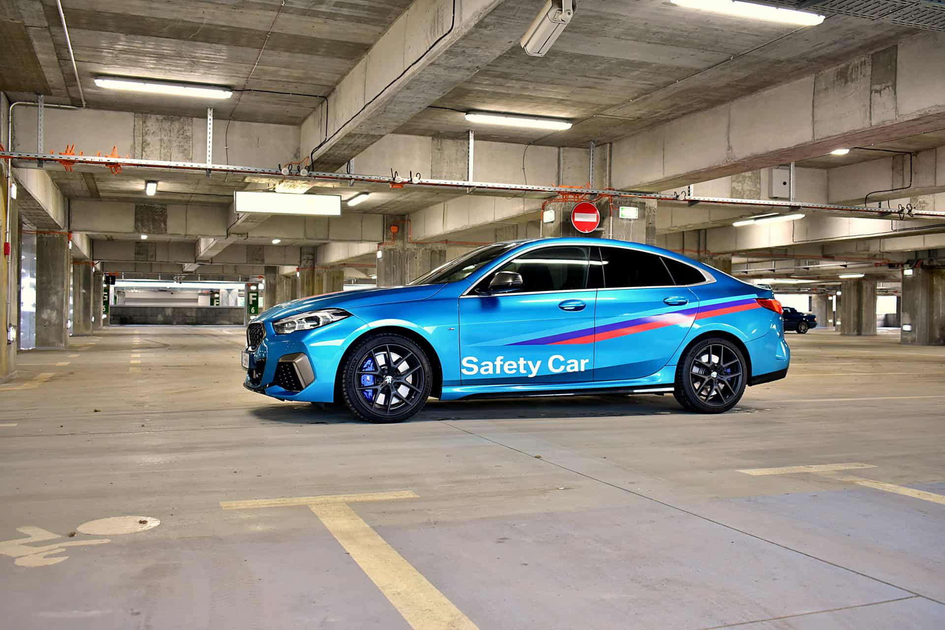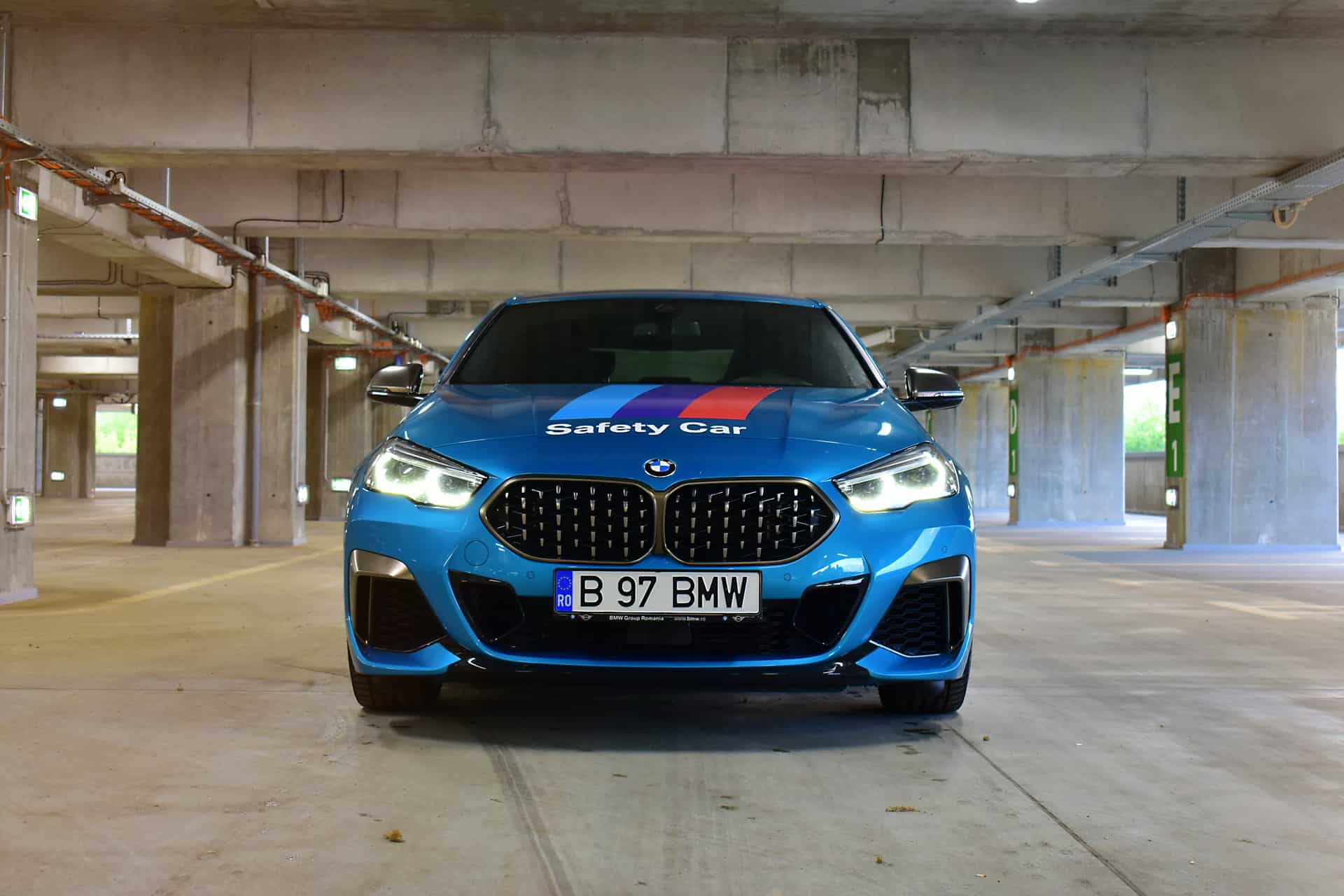 The BMW M235i xDrive test car was finished in a stunning Snapper Rocks Blue metallic color. Together with the usual Cerium Grey exterior accents for the low-end M models, it really gives the M235i a powerful and sporty appearance. Furthermore, as this specific model was due to serve as Safety Car during an internal racing competition, the M235i was also specced with a series of M stripes and Safety Car decals.