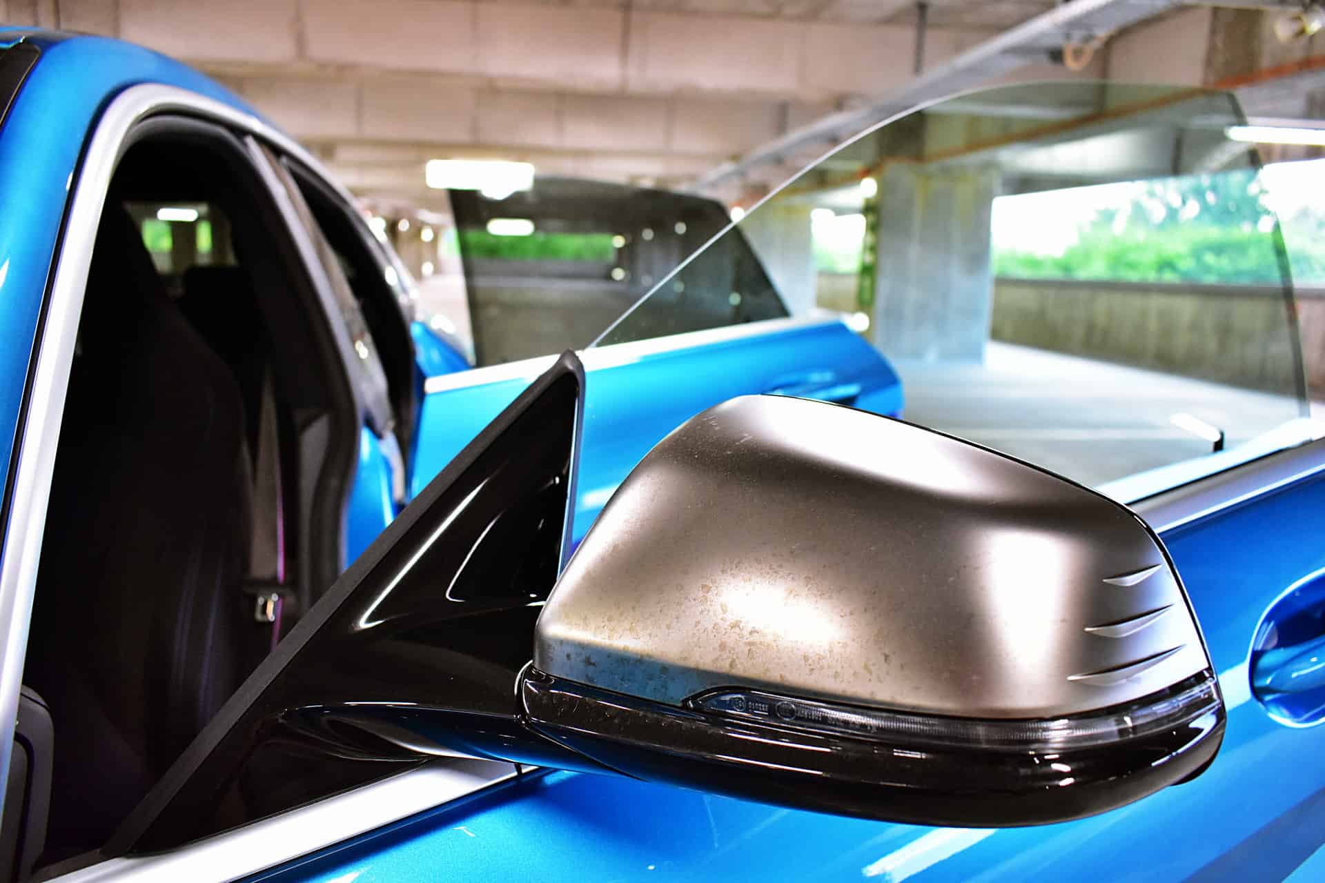 The burnished black 19″ alloys, equipped with race tires, further made a striking contrast with the Snapper Rocks Blue paint finish. But it all came with a compromise: such rubber provides less comfort than conventional ones.