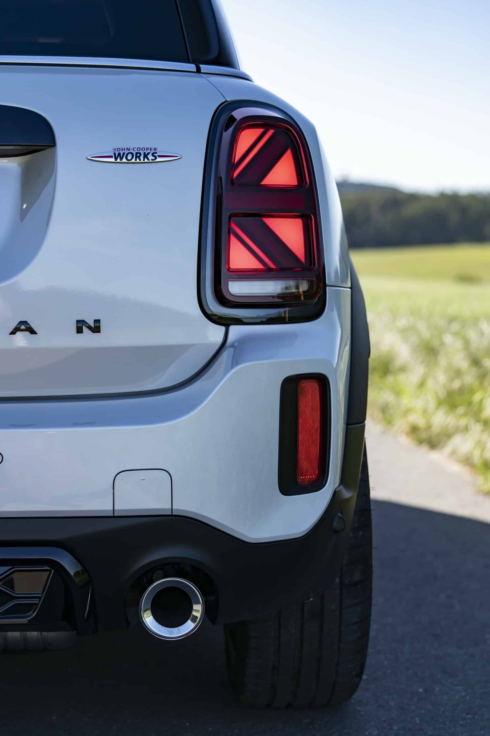 The powerful new MINI John Cooper Works Countryman features a redesign radiator grille. The standard LED headlights and the rear lights have also been redesigned. At the front, the lighting technology is now even more recognizable, while at the back the Union Jack light design stands out day and night.