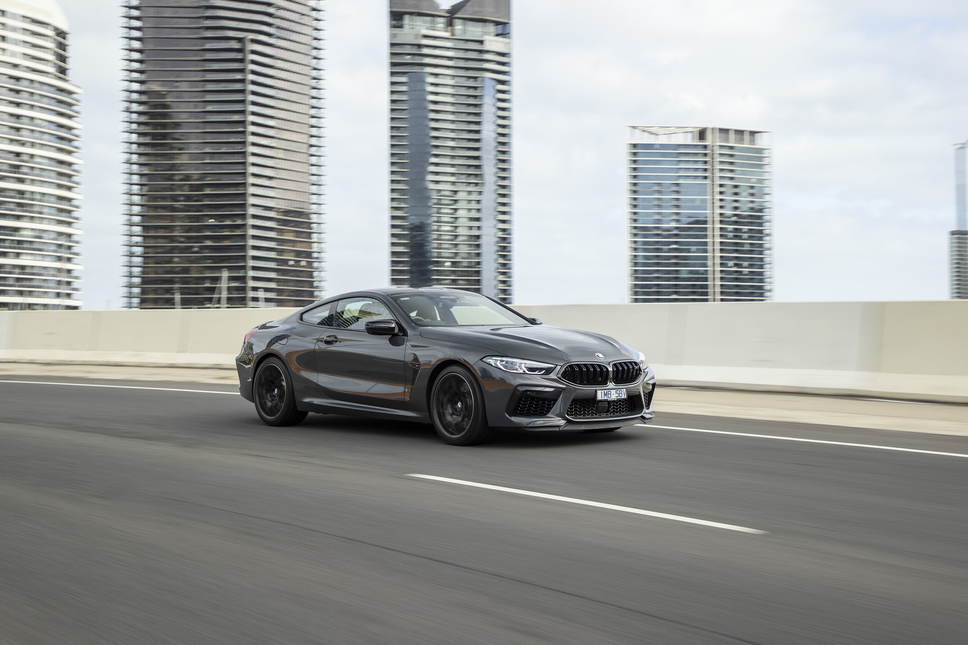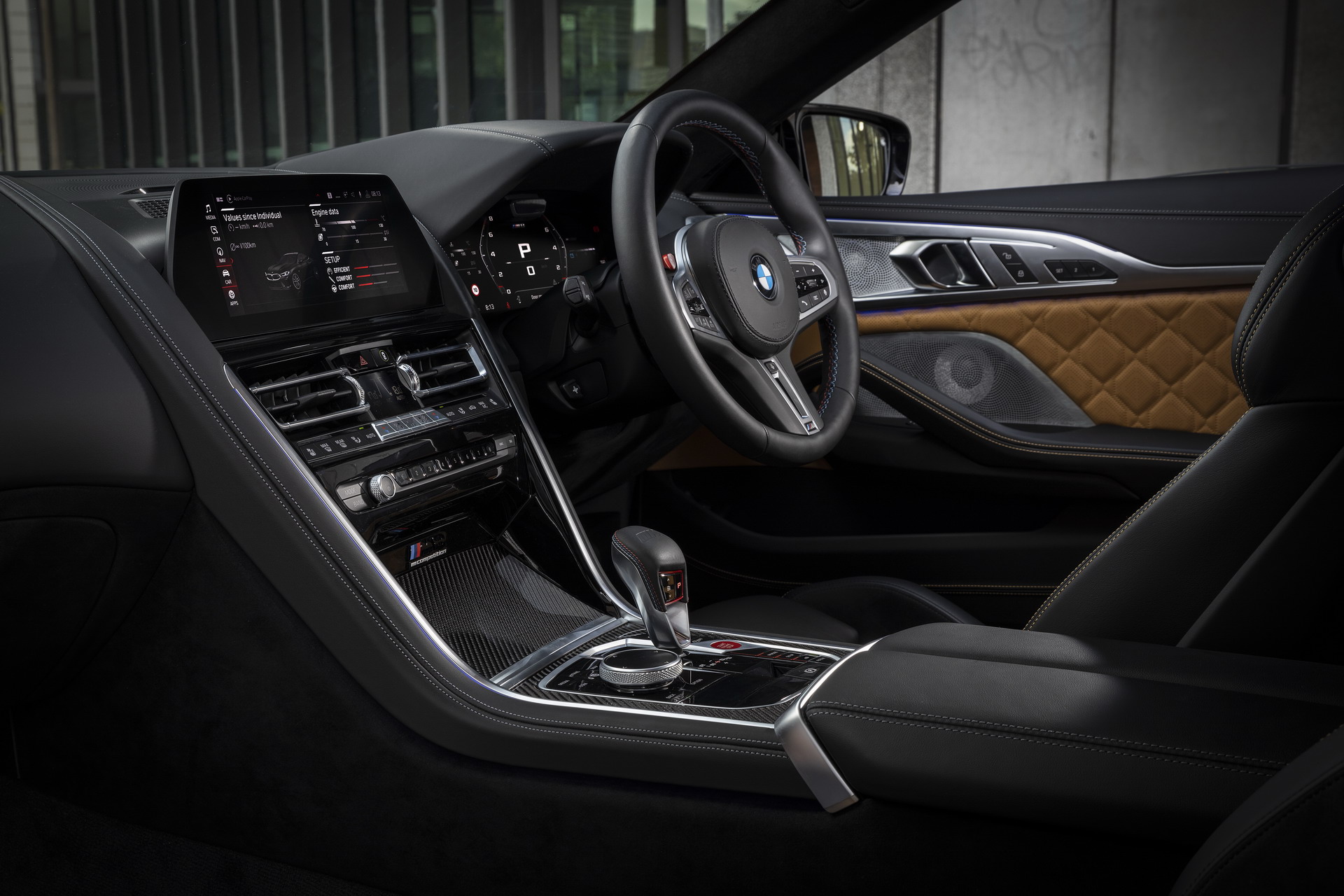 The 4.4-liter V8 engine releases a peak torque of 750 Nm (553 lb-ft), available between 1,800 and 5,800 rpm. The M8 Competition Coupe achieves a top speed of 250 km/h (155 mph), electronically limited.
