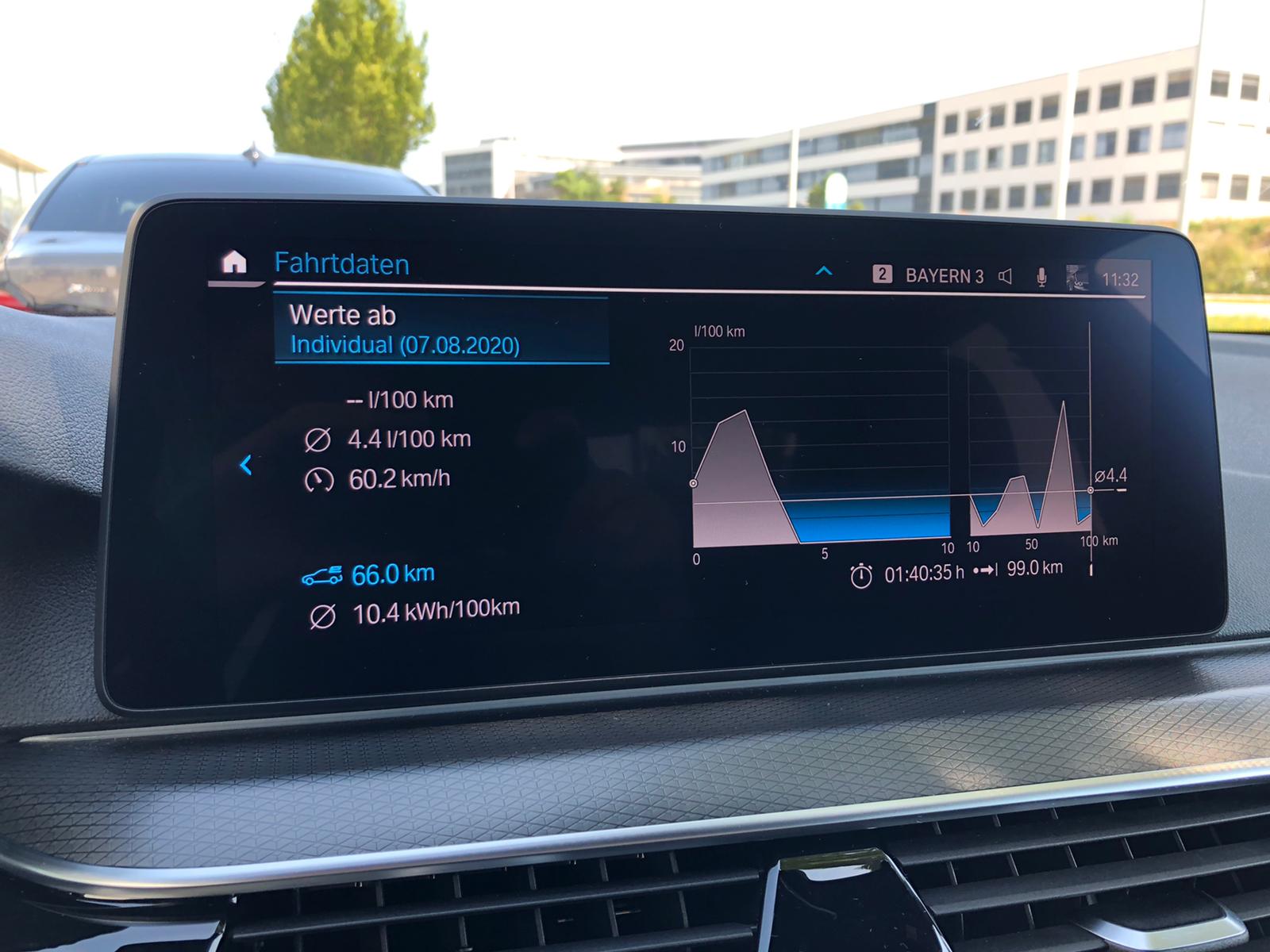 The energy usage for this part of the trip was 10.4 kWh/100 km (which is even below the official WLTP rating). For the rest of the distance I used 4.4 l/100 km (53.4 mpg).