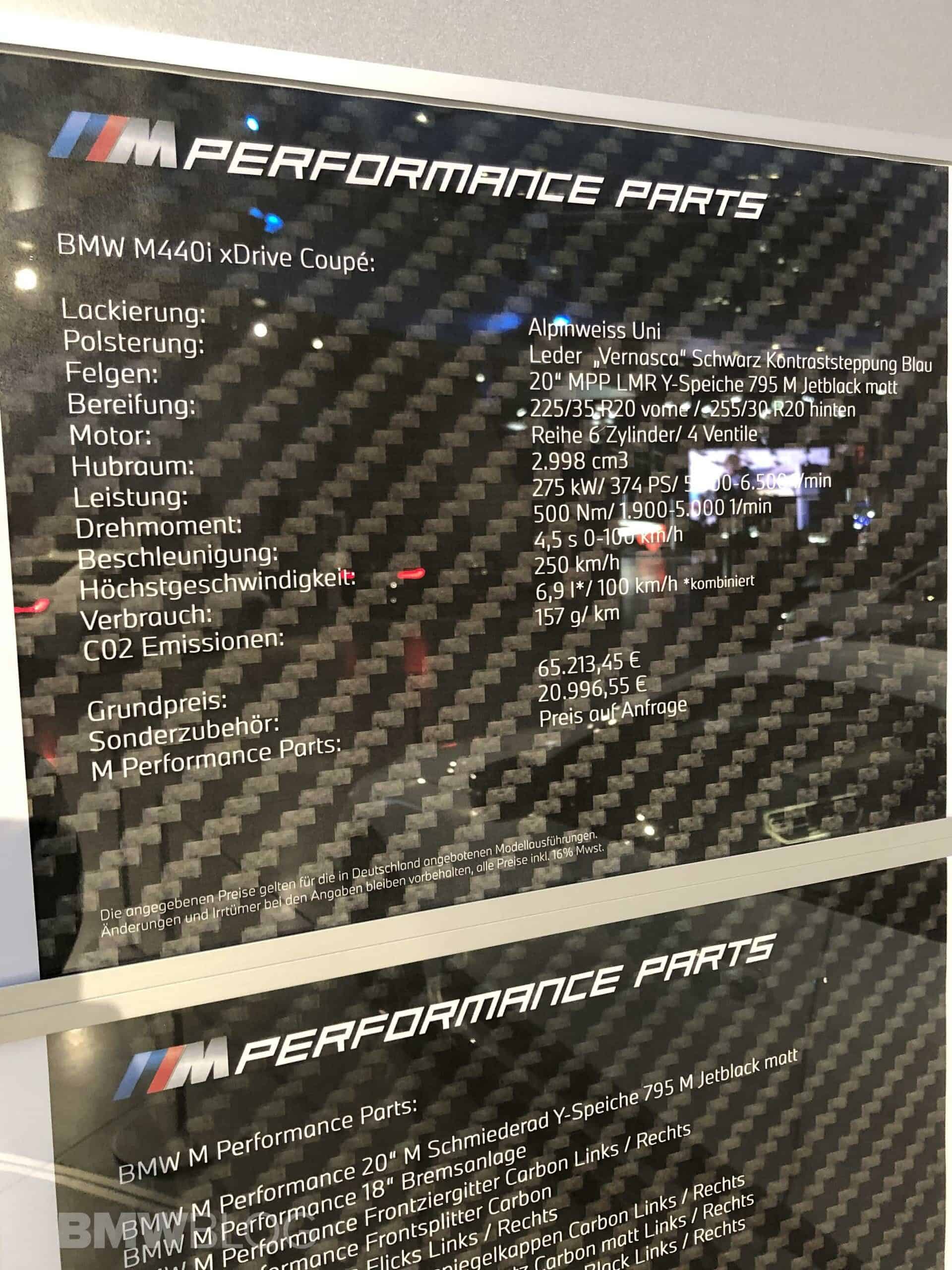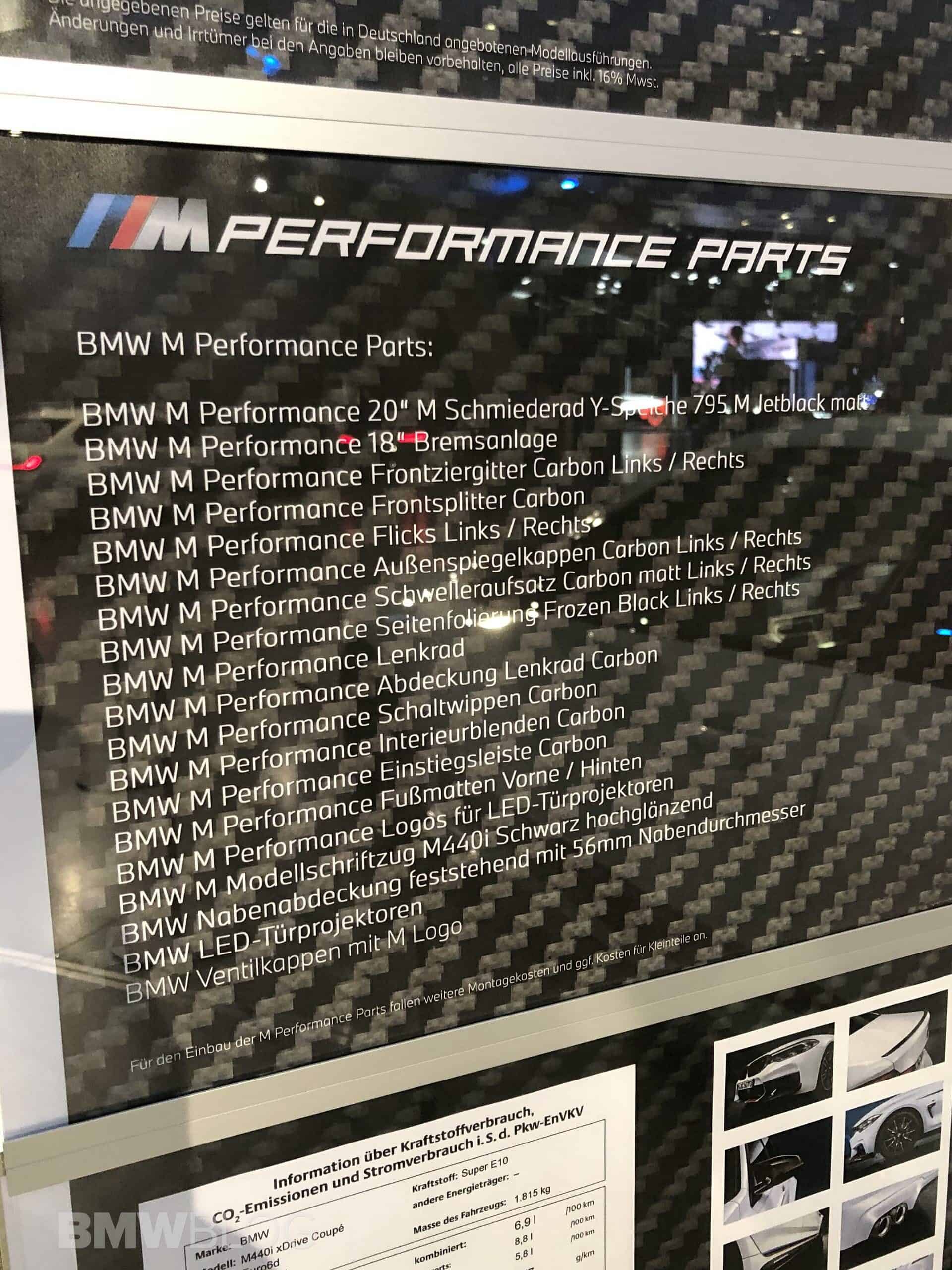 Ahead of its official market launch, we now bring you an exclusive video of the BMW M440i decked out with M Performance Parts. We spotted the car at the BMW Welt and decided to give you a quick overview. As always, the M Performance Parts package focuses mostly on visual upgrades. The carbon fiber is an integral part of the M Performance Parts and it starts at the front.