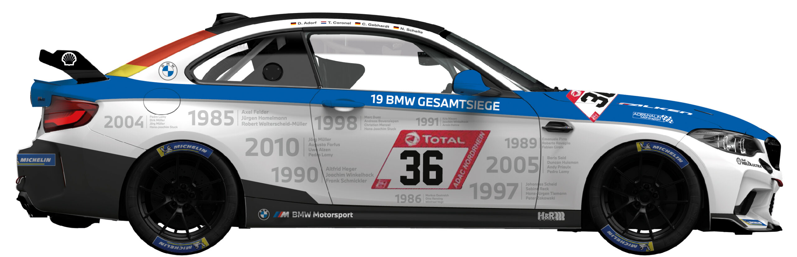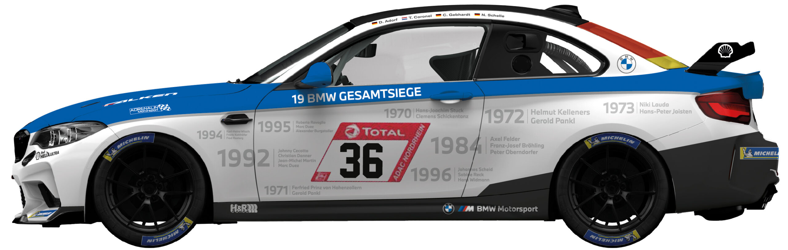 The car will be driven by BMW works driver Dirk Adorf and fellow racing driver Tom Coronel. They will share the cockpit with journalists Christian Gebhardt and Niki Schelle.