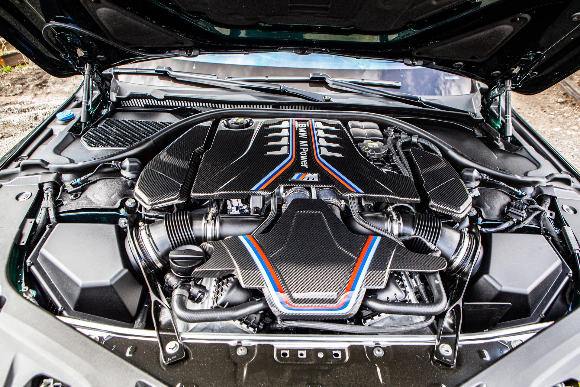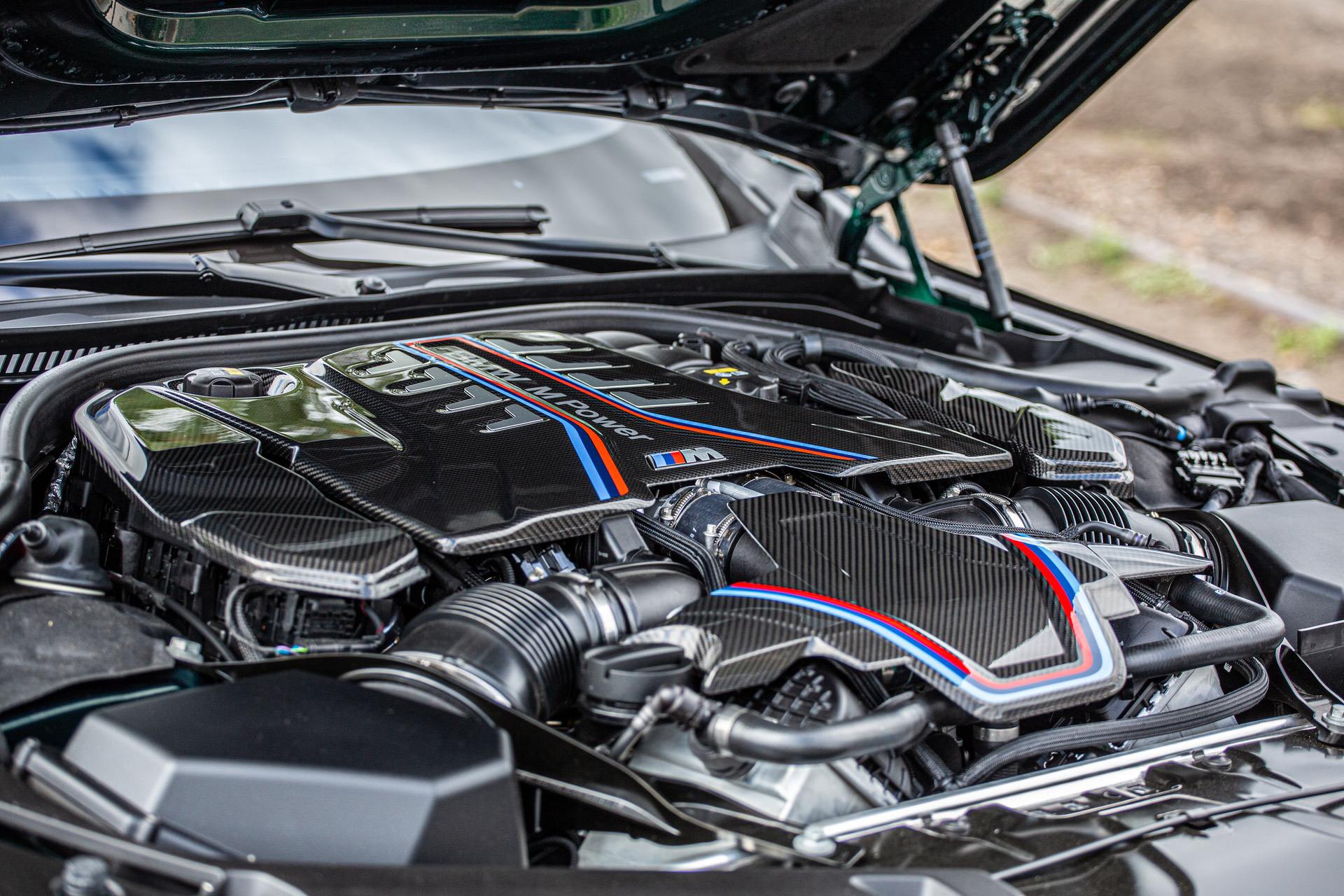 The running-in service allowed us to bring the car for its 2K km service and fit some additional M Performance parts, which are available via local BMW dealers and for customers of the M8-series. Additional carbon covers were fitted under the bonnet, new carbon air intake covers were placed on the front bumper alongside a new carbon front grille, and the look of the sides was improved with carbon side skirt attachments.