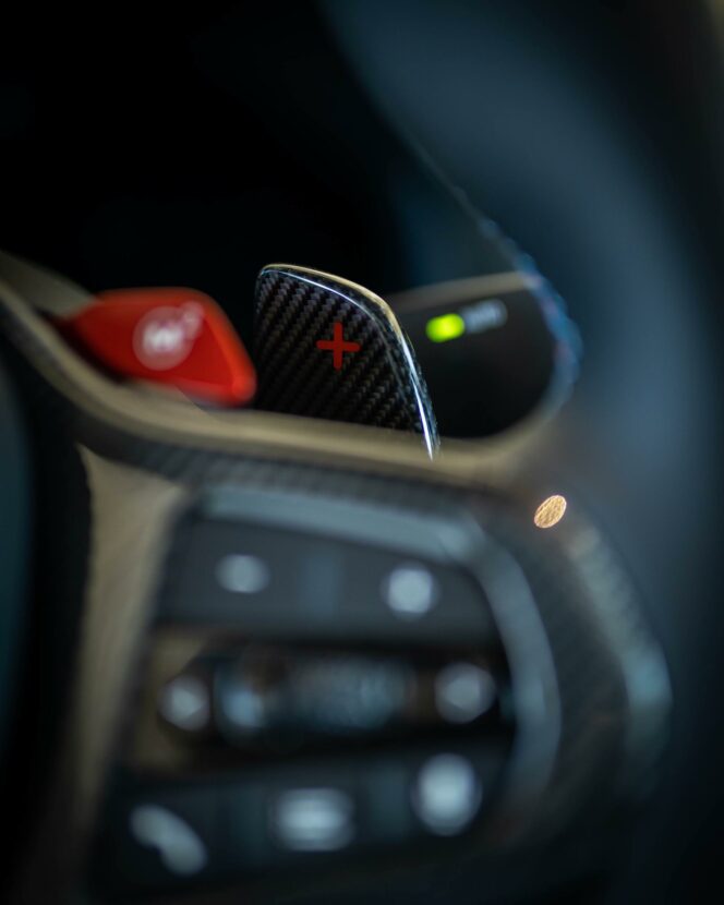 On the inside, new M Performance floor mats were complimented by carbon paddle shifters and new carbon trim on the steering wheel. A M Performance car cover finished off the whole range of parts. All together, we created an unique look to the car in collaboration with the people at BMW M Performance.