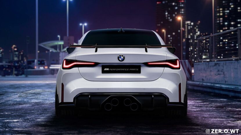 So this brings us to the topic today. Our friend @zer.0.wt has decided to render the rear-end of the new M4 with these M Performance Parts. And the result, in our humble opinion, is stunning. The slim taillights and darkened accents play well with the aggressiveness of the spoiler, and especially with the diffuser and new exhaust.
