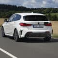 The specially tuned M Sport springs come with a 10 mm lowering. Furthermore, there are revised elastokinematics on the front axle and a new axle carrier at the rear. The steering has also been adjusted compared to the M135i xDrive. BMW says that the steering set-up is deliberately not overly direct.