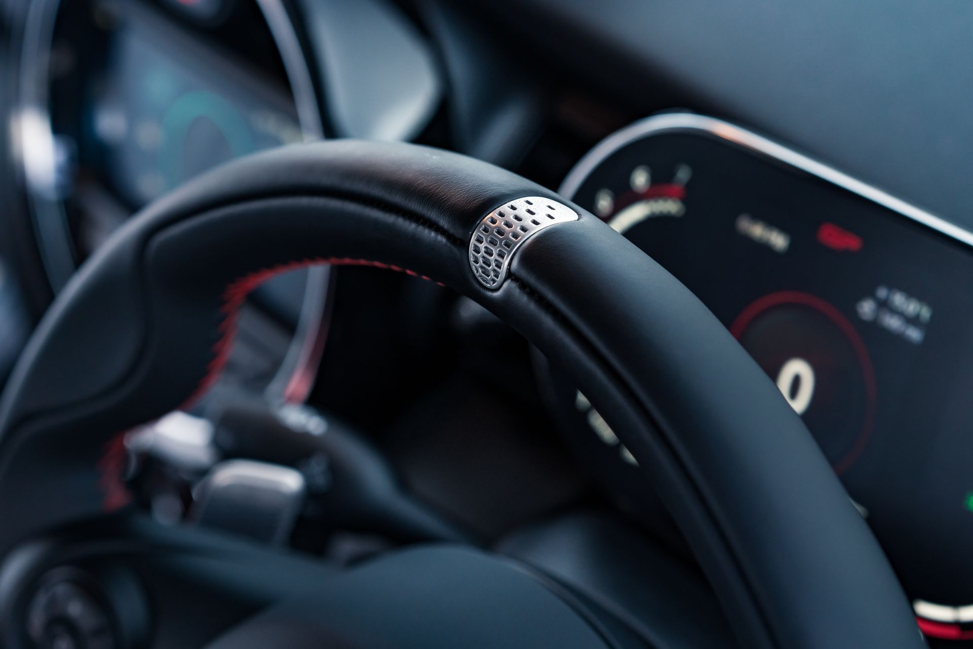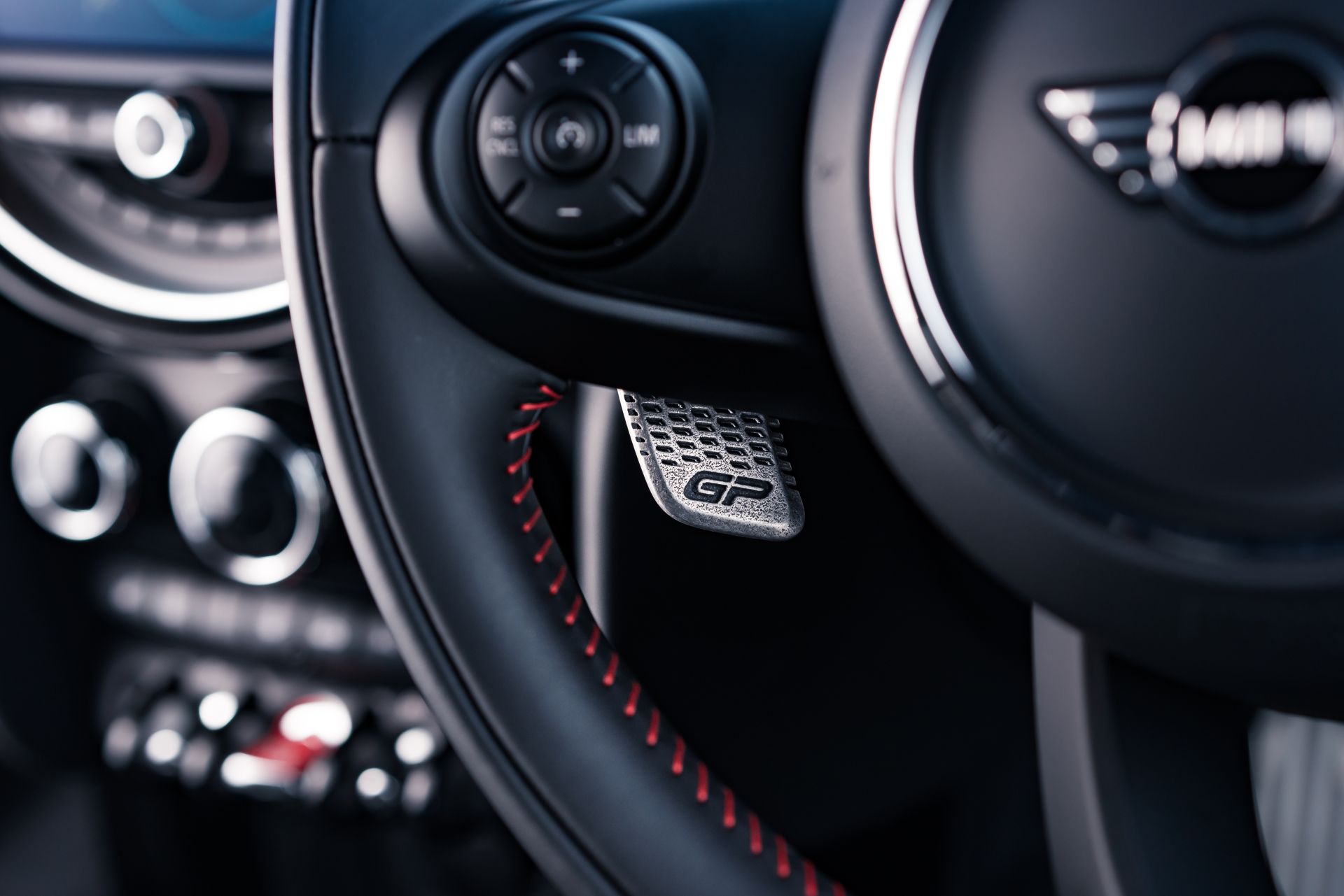 The details are what sets the JCW GP apart from the rest of the range. You will, of course, notice the grey/red combo which is particularly striking. You’ll also have no issues seeing the flared wheel arches, an improvisation done by MINI to make sure the car copes with the legislation for road-going vehicles.