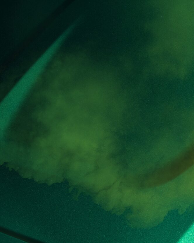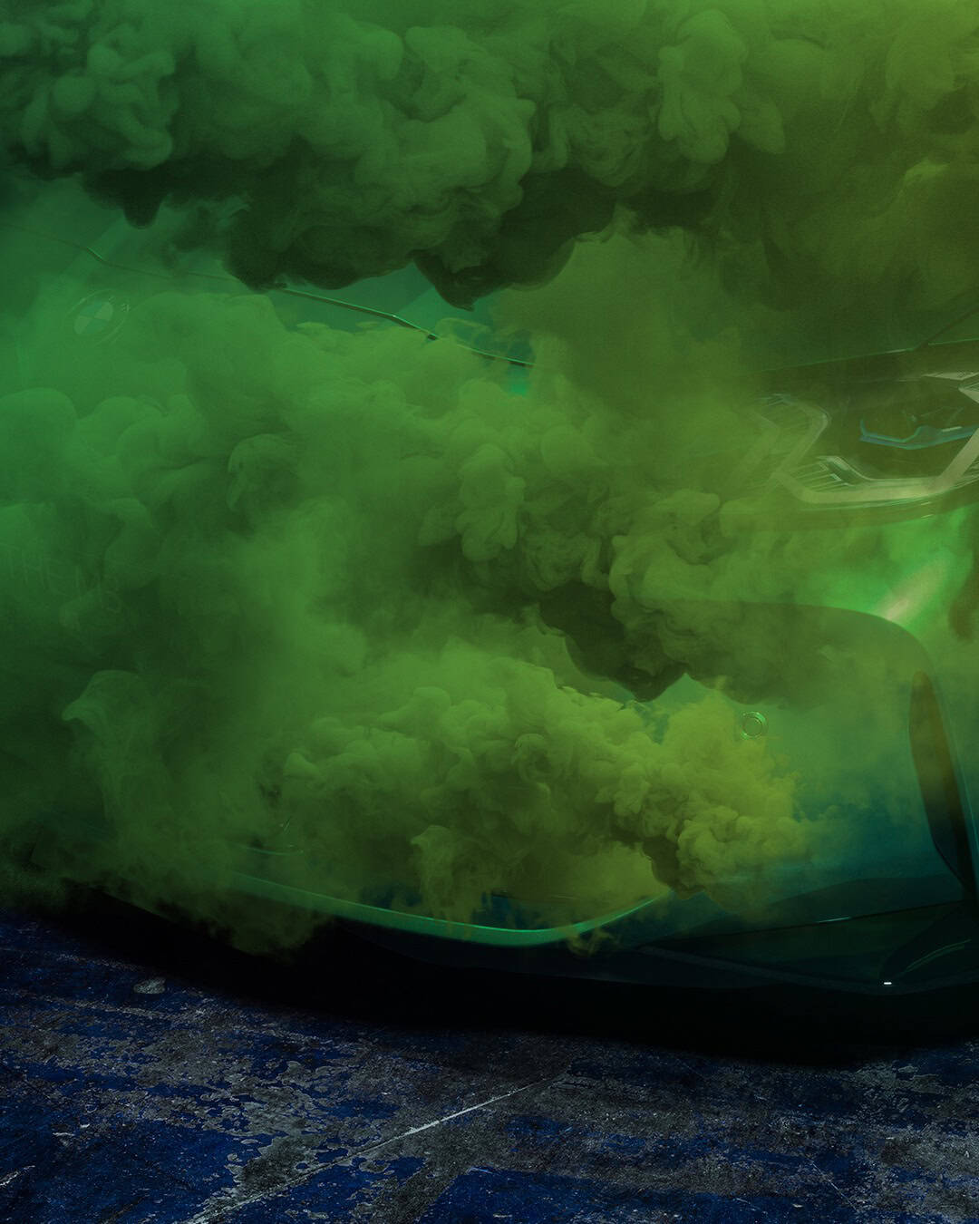 In these photos, we see the front end of the BMW M3 — its most controversial point of design — obscured by green smoke. Through the smoke, we can see glimpses of the M3’s new face and it’s wearing a green exterior color similar to that of the smoke.