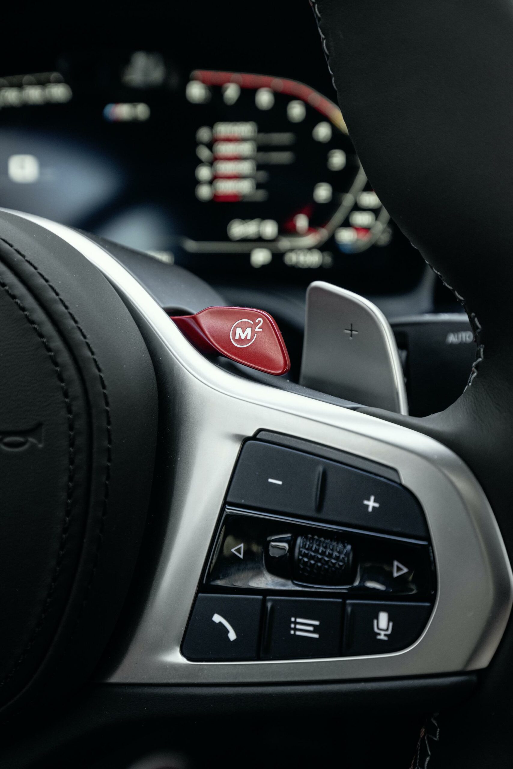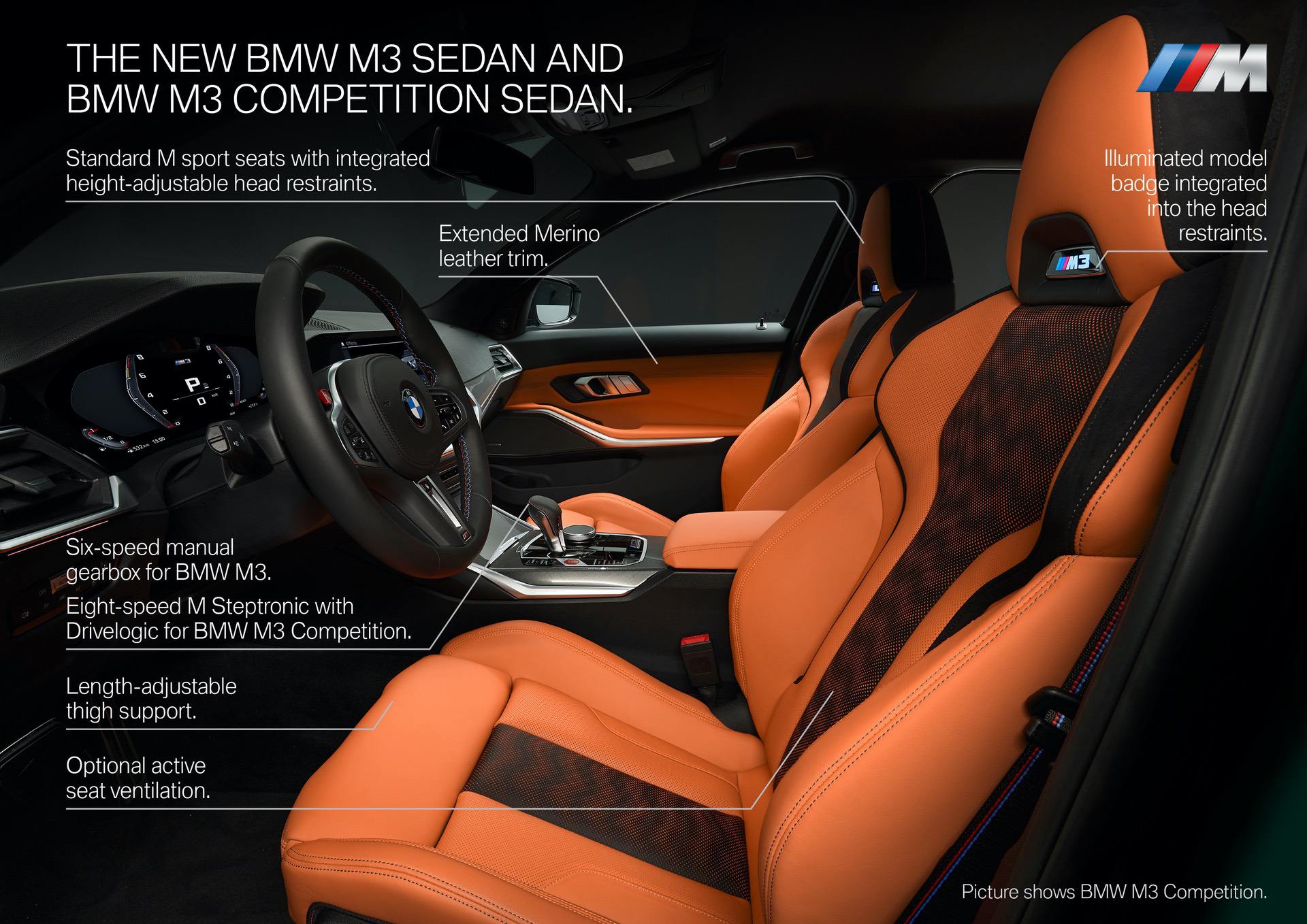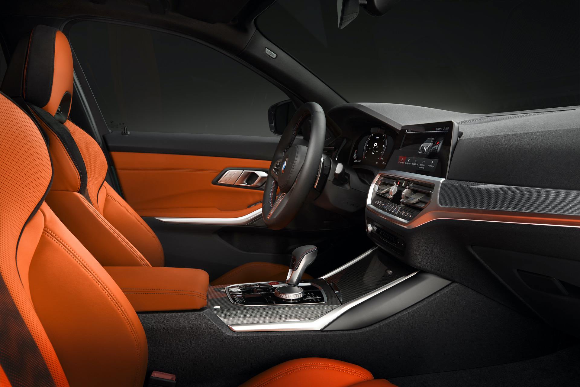 The color combo seen here is called Kyalami Orange/Black and it looks great, especially in combination with the green exterior color. There’s also a very cool Yas Marina Blue/Black interior option with yellow accents that’s very interesting and the Competition-spec, seen on the BMW M4, has even crazier looking seats with cool carbon fiber paddle shifters.