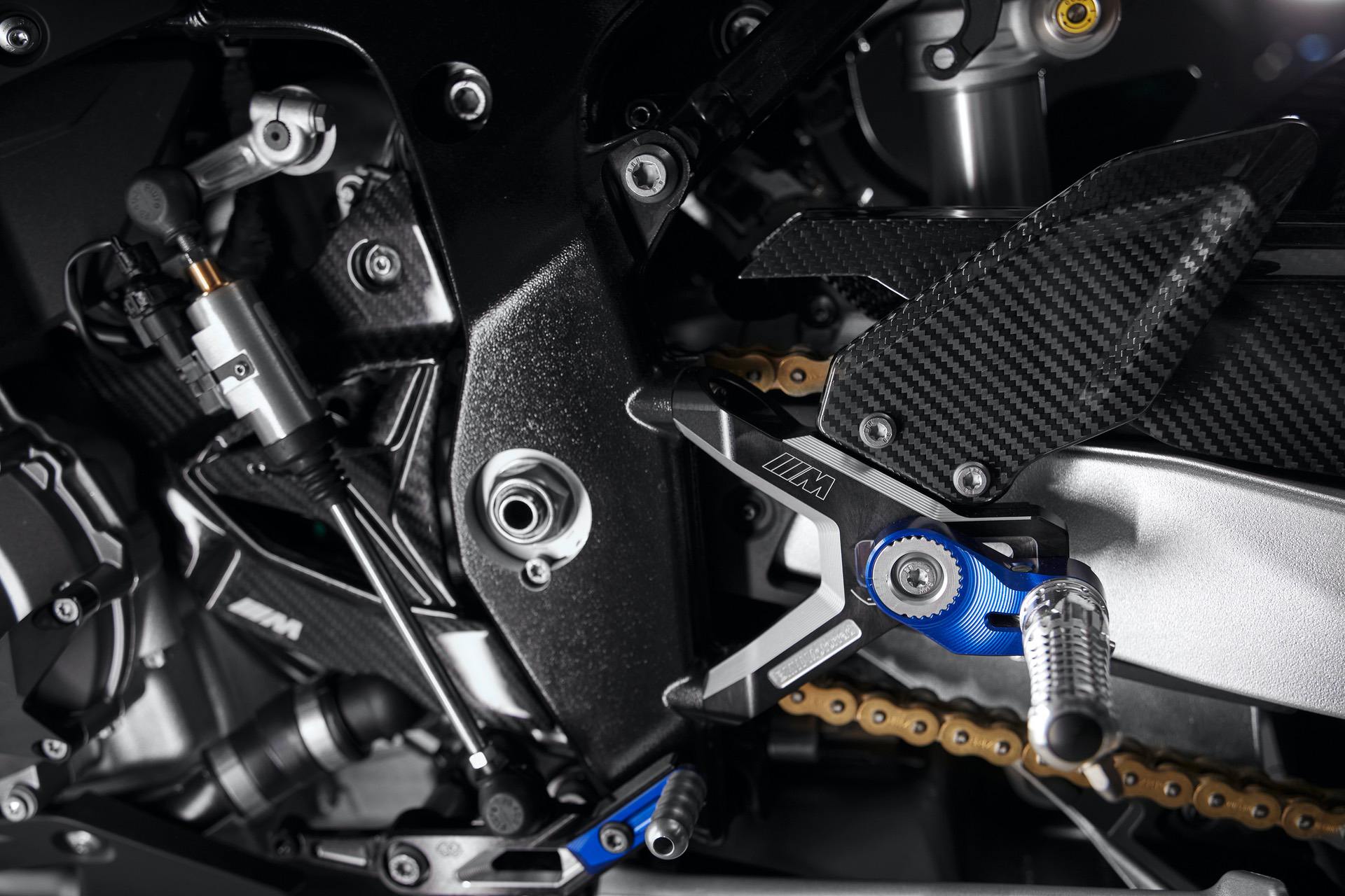 The new M RR gets M brakes for the first time. Externally, the M brake calipers have a blue anodized coating in combination with the M logo. With the M carbon wheels, the new M RR has more high-tech components for maximum performance on the race track and road.