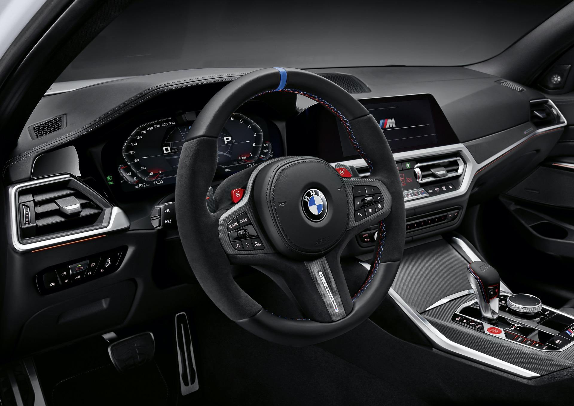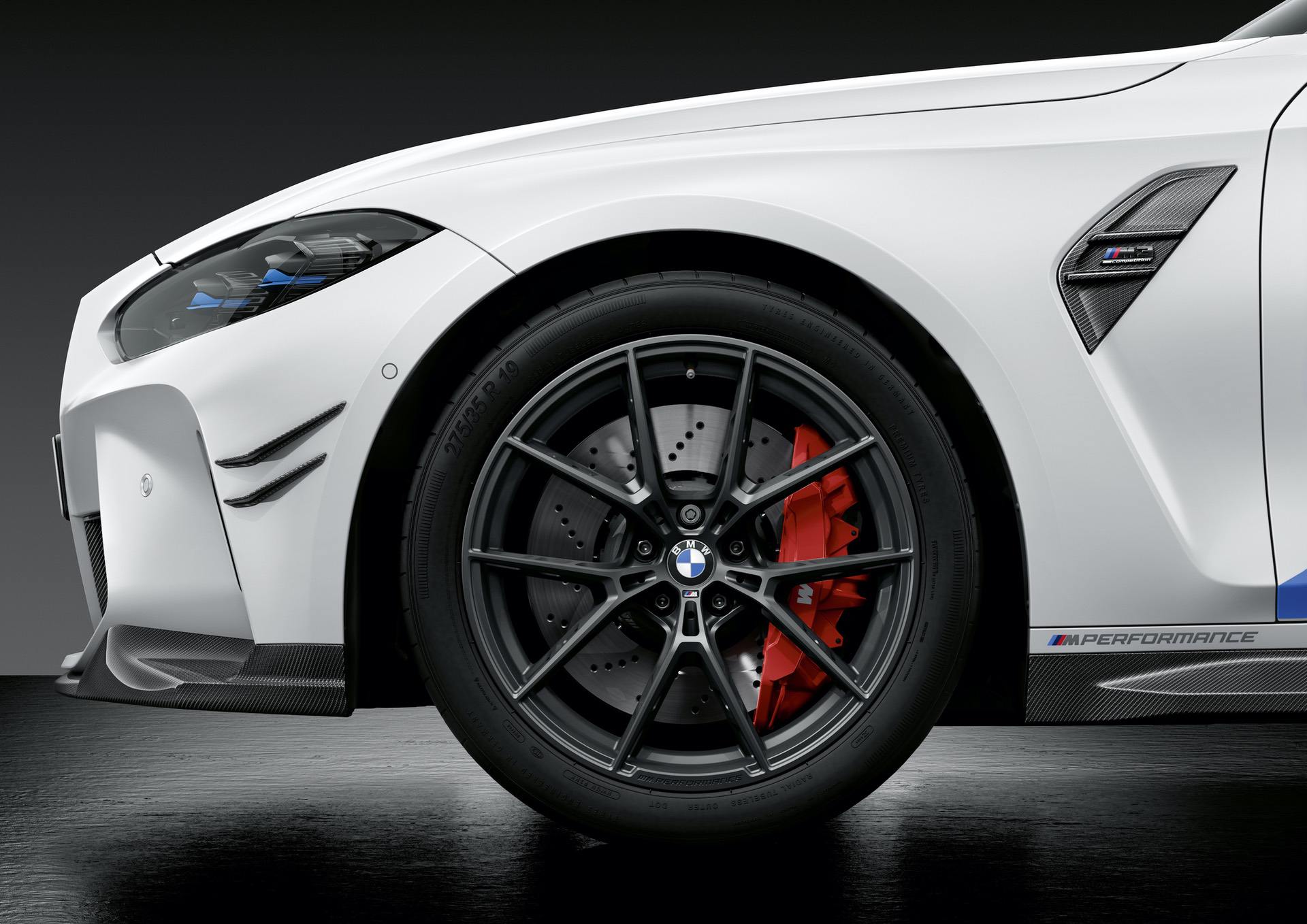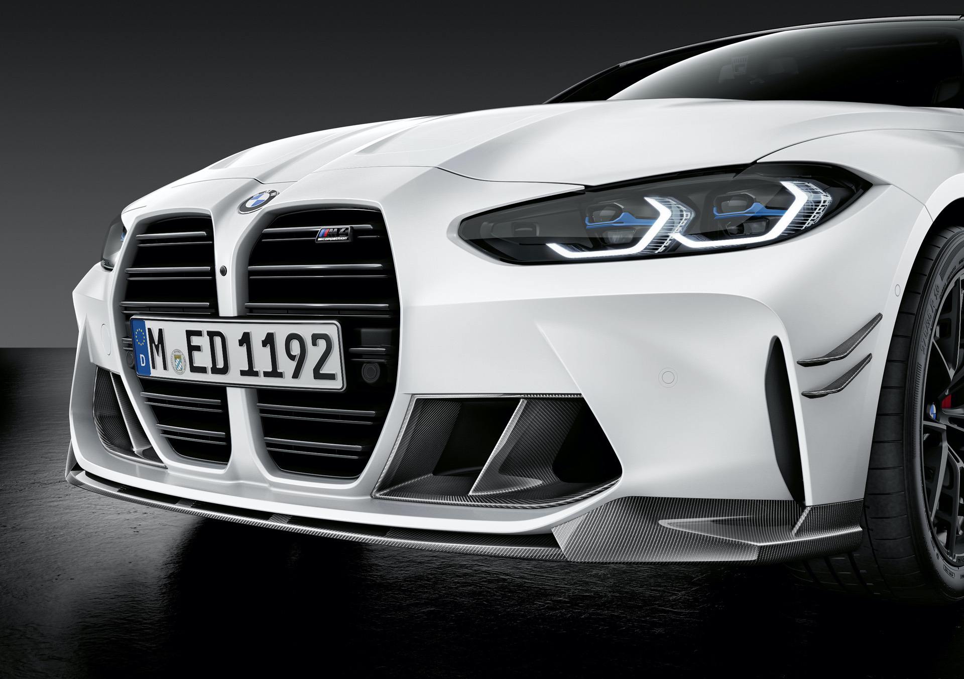 If somehow the new G80 BMW M3 and G82 BMW M4 aren’t in-your-face enough, there’s an extensive selection of M Performance parts to really up the aggressiveness. Aside from the M Division livery, both cars get a suite of exterior and aerodynamic add-ons. Interestingly, both cars get the same sort of add-ons. For instance, they both get a fixed rear wing, side skirts, a rear diffuser, a lower front lip and ever some canards, all made from carbon fiber of course.