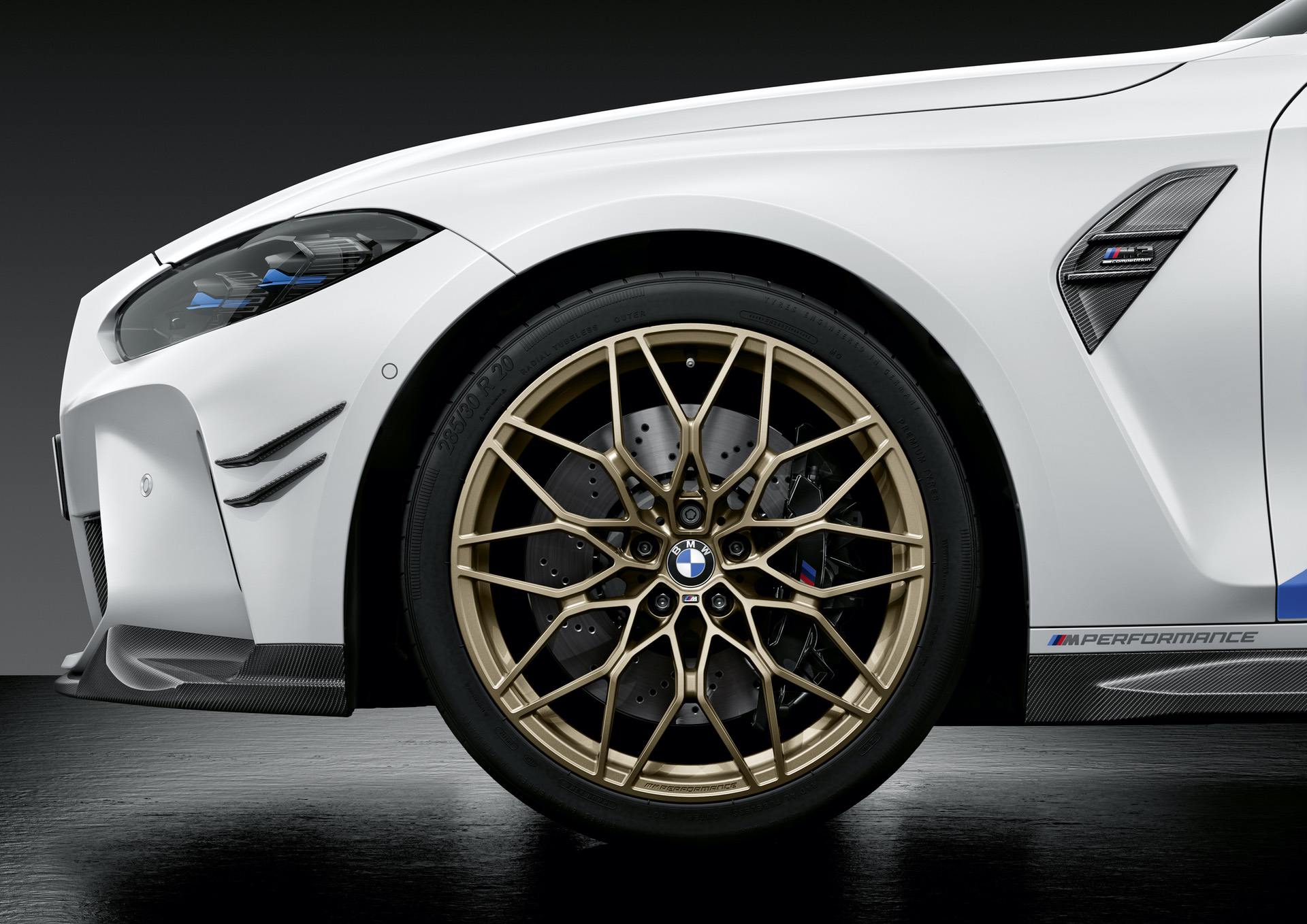 In these photos, the BMW M3 gets gold wheels, while the BMW M4 gets black wheels and there seems to be a few different wheel options.