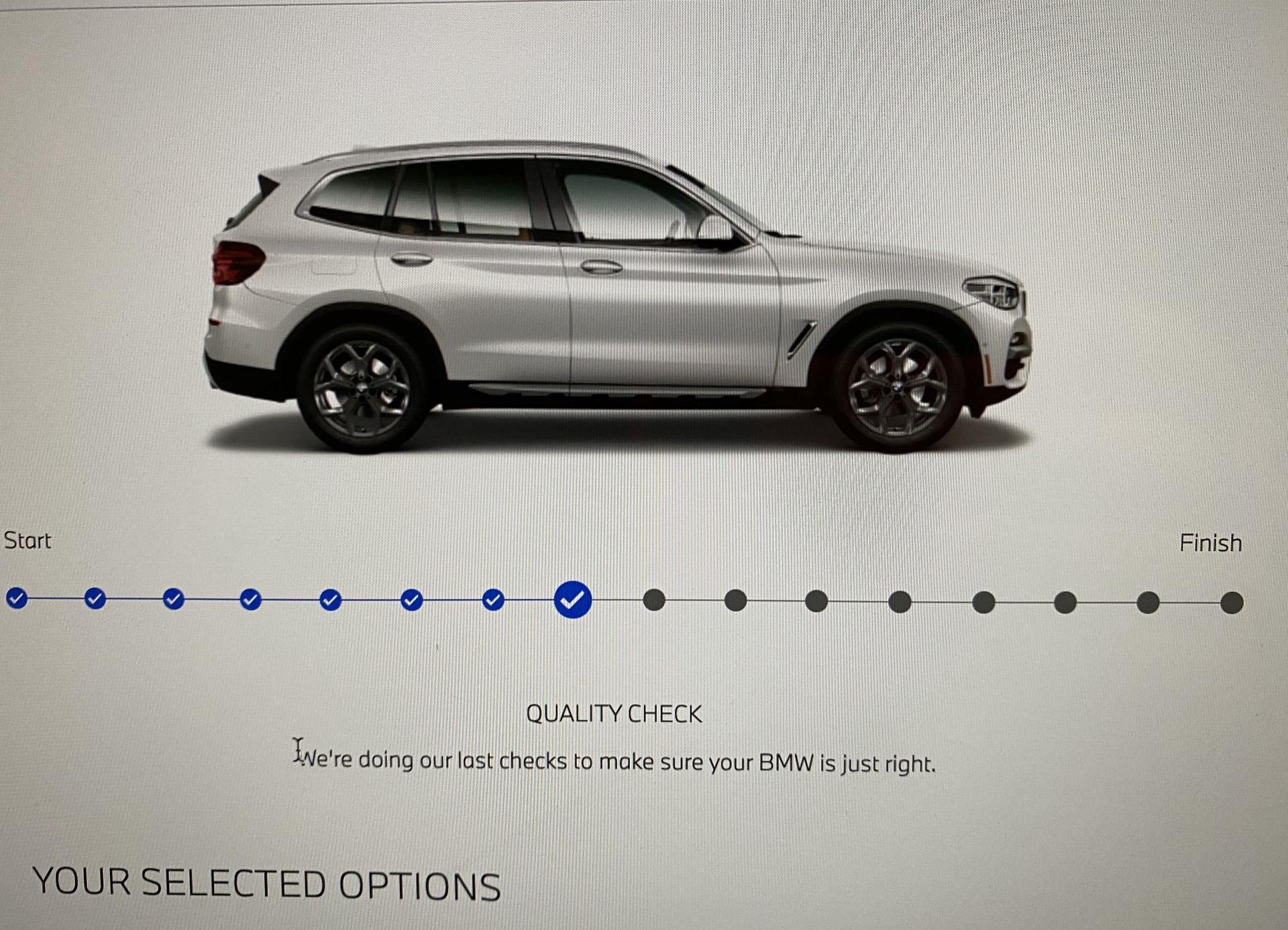 We worked out the details over the phone and decided to go ahead and order a 2021 BMW X3 plug-in hybrid. This was August 18th mid-day. Our order was entered into BMW’s system and the car was put into production the week of August 31st and finished up on September 3rd. So just over 2 weeks to get built and quality checked.