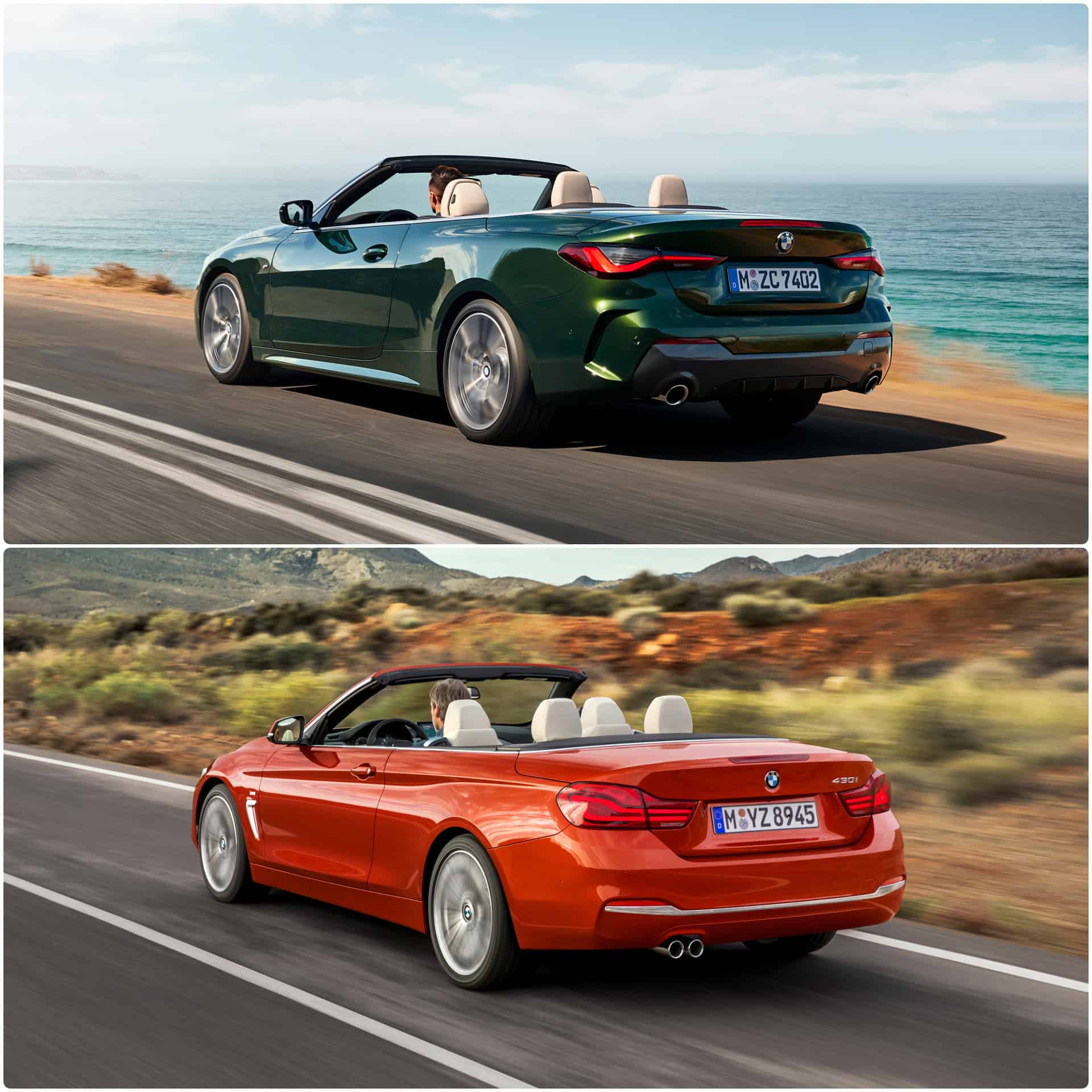 In this comparison, we brought together the new G23 generation finished in the elegant San Remo Green metallic paintwork and the previous F33 model featured in the striking Sunset Orange metallic color.