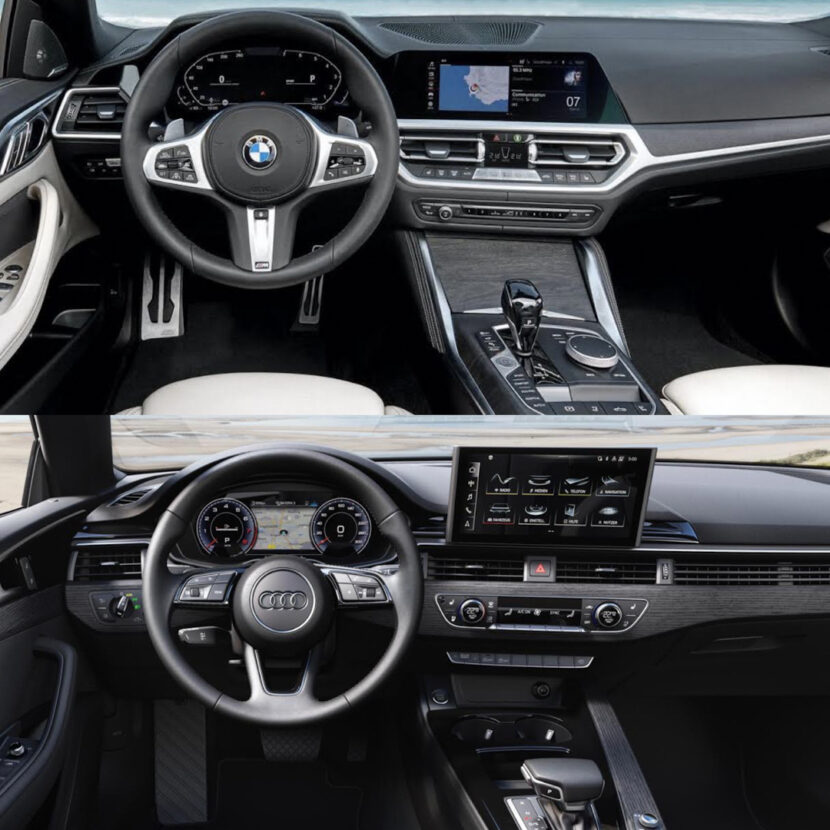Inside the cars, I still think the Audi A5 has the better looking cabin. It’s more modern, simpler and comes with a far superior digital driver’s display. The 4 Series is nice on the inside but it’s a bit staid and its digital dials are just too confusing and fussy looking.
