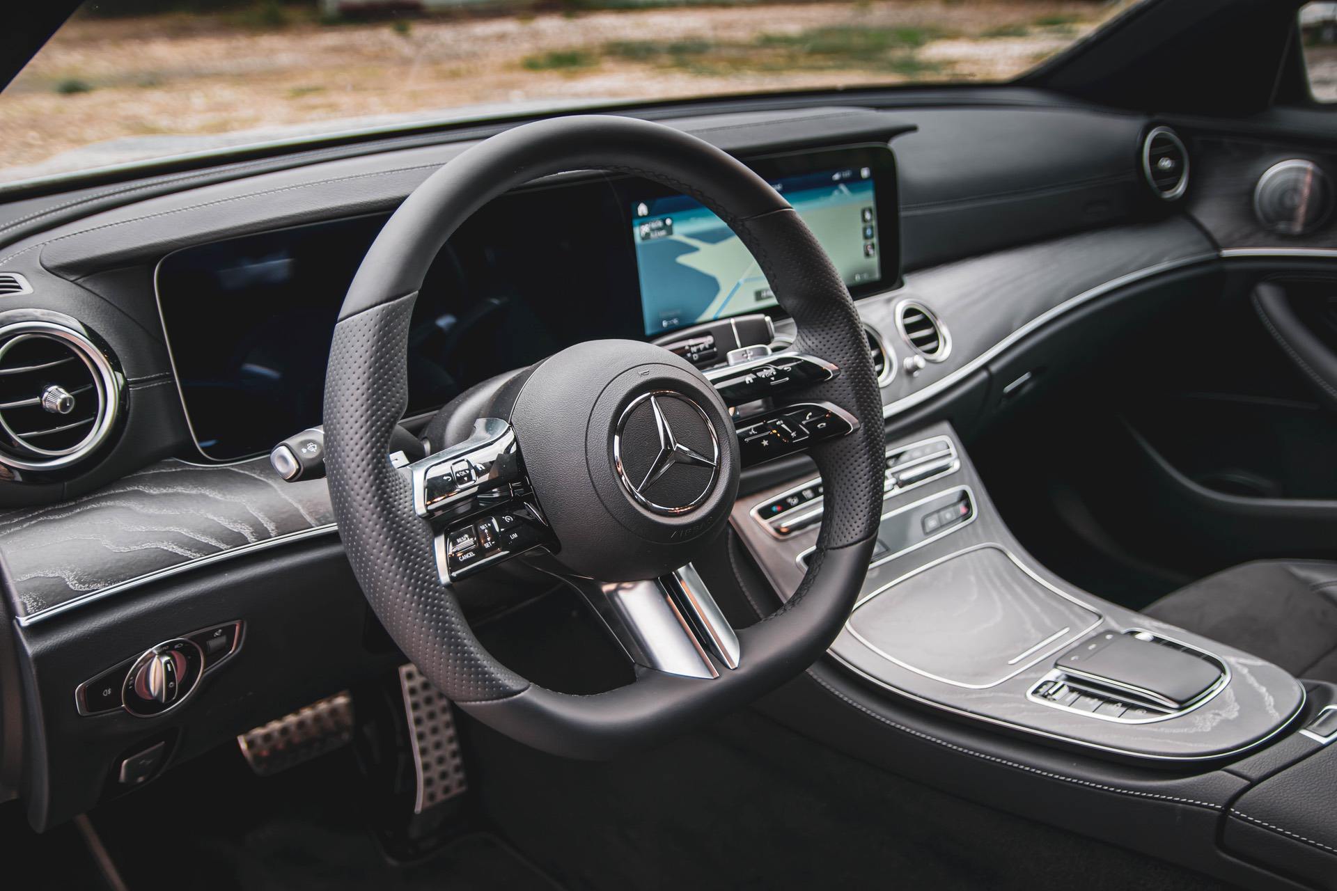 The standard setup we tested felt abnormally rough (for an E-Class) over uneven, sharp edges. The biggest surprise was the amount of noise that made its way into the cabin when going over rough surfaces. And that clunking noise came from both the front and the back axles, so it wasn’t an issue with the car (which would’ve been almost impossible as it had less than 2,000 miles on the clock).