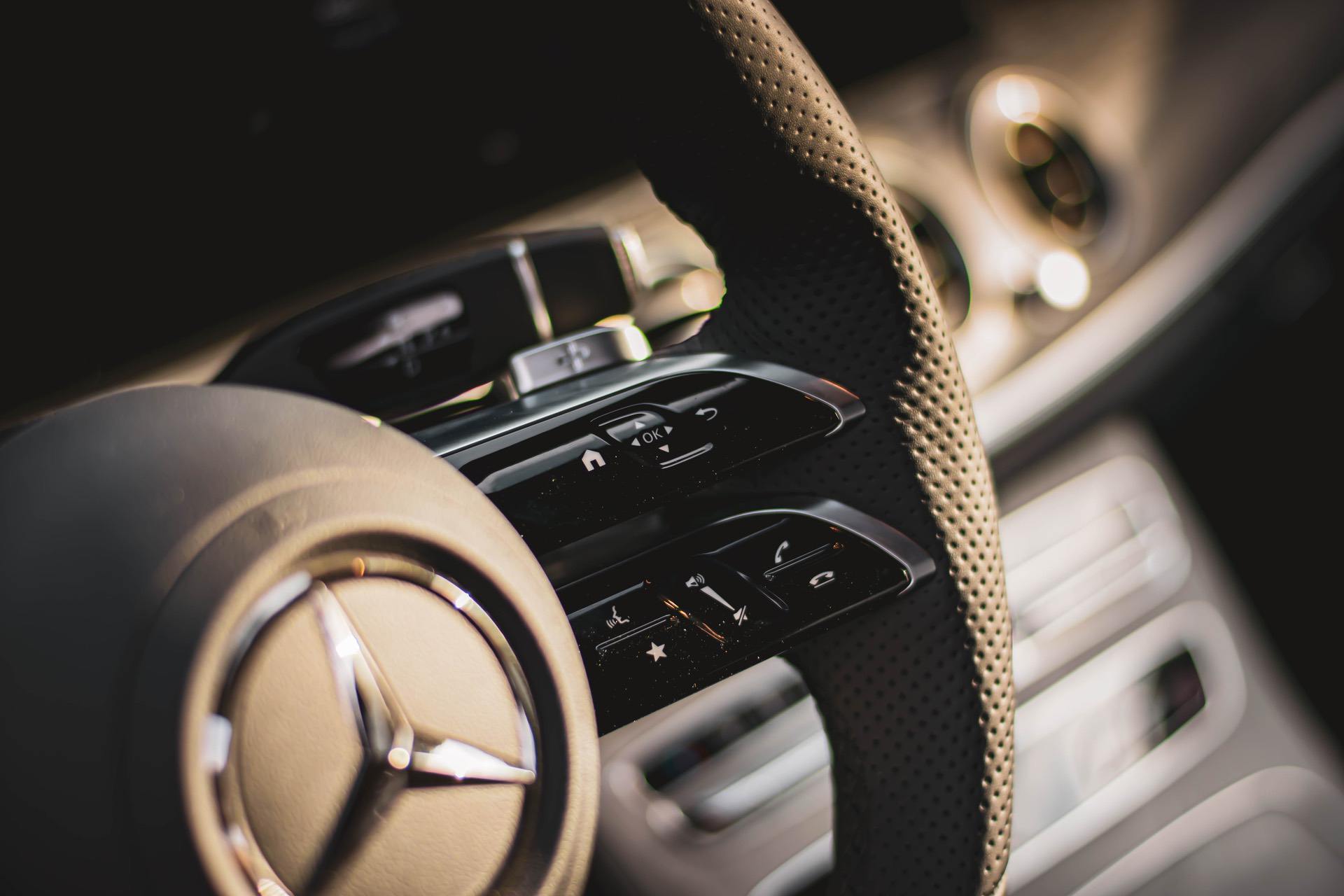 For the new generation E-Class, Mercedes-Benz decided to transform all the steering wheel buttons into touch-sensitive areas. Basically, you have two double spokes on the sides of the steering wheel which have various functions you can control simply by touching them and swiping in a direction.