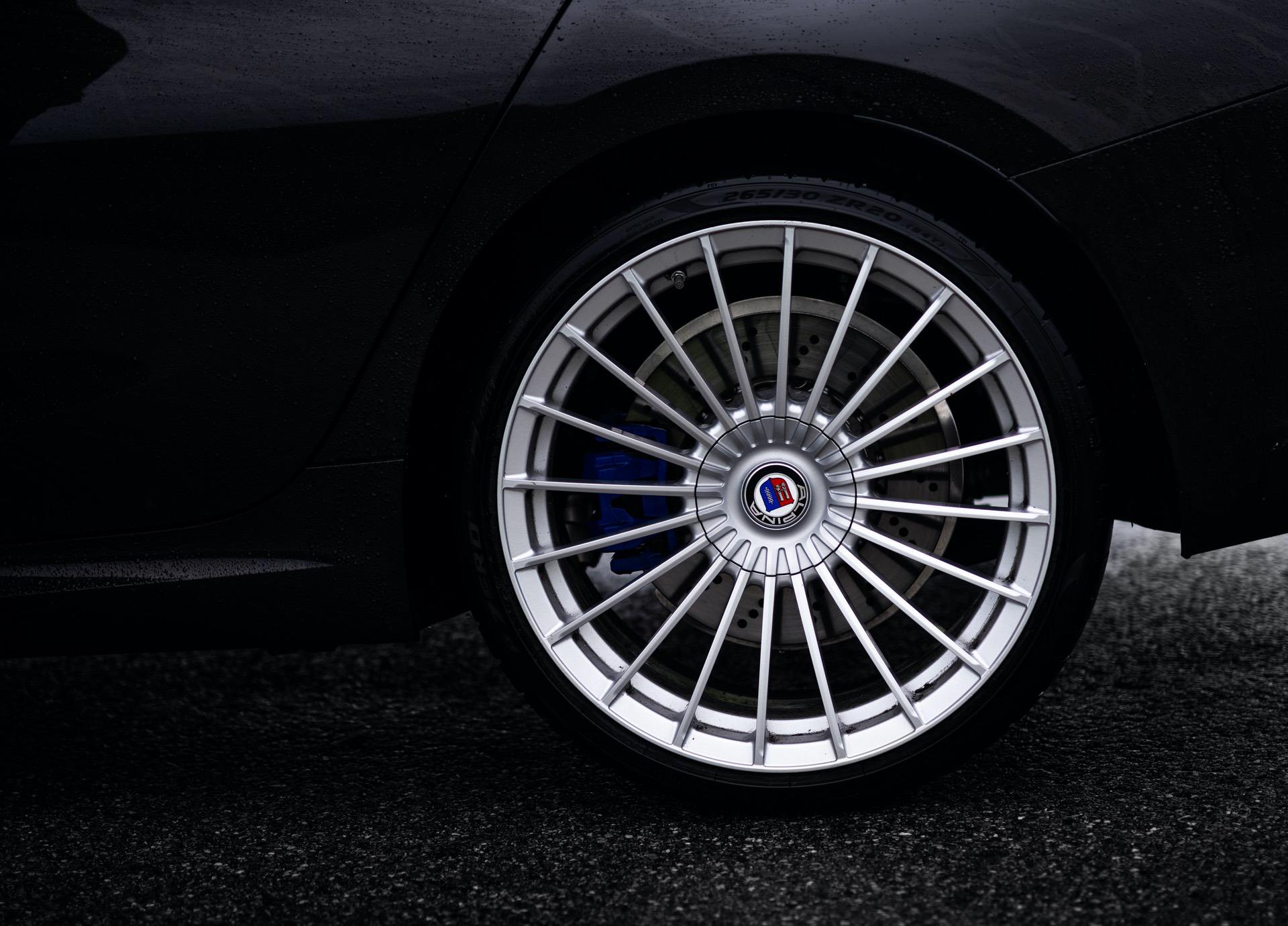 With regards to the stopping power we can only say that the 395mm discs up front gripped by four-pot calipers did their work excellently. The rears offer a combination of floating brake calipers with brake discs of 345 mm diameter and do what they need to do. There are four ALPINA blue-colored calipers, which feature a white ALPINA logo on the front calipers. If required, a high-performance brake system is available as an option, but we never felt the need for one.
