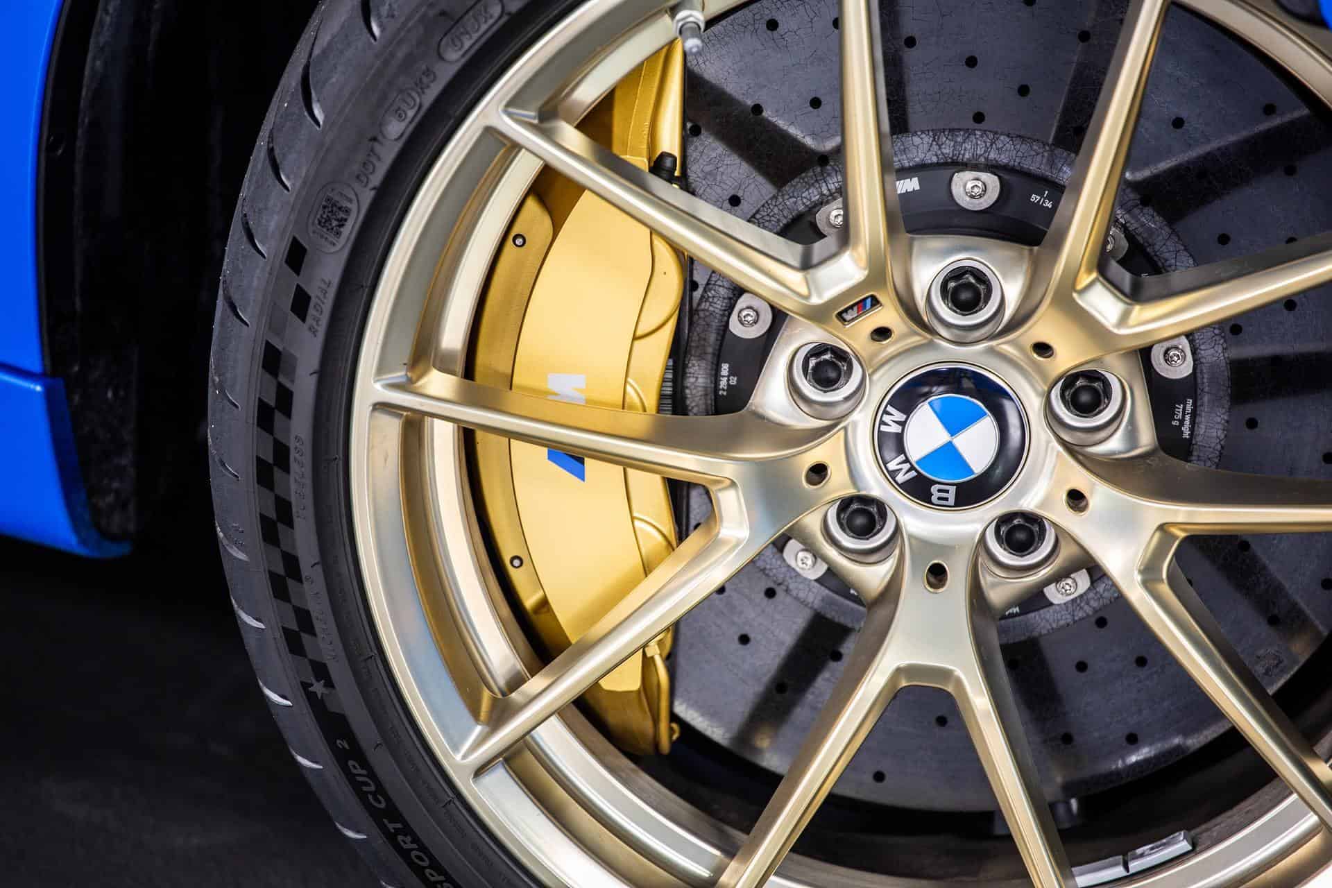 Looking past the color, you will notice a nice range of upgrades compared to the Competition. The signature 763M wheels shed weight on each corner of the car and offer you the option of gold and black colors.